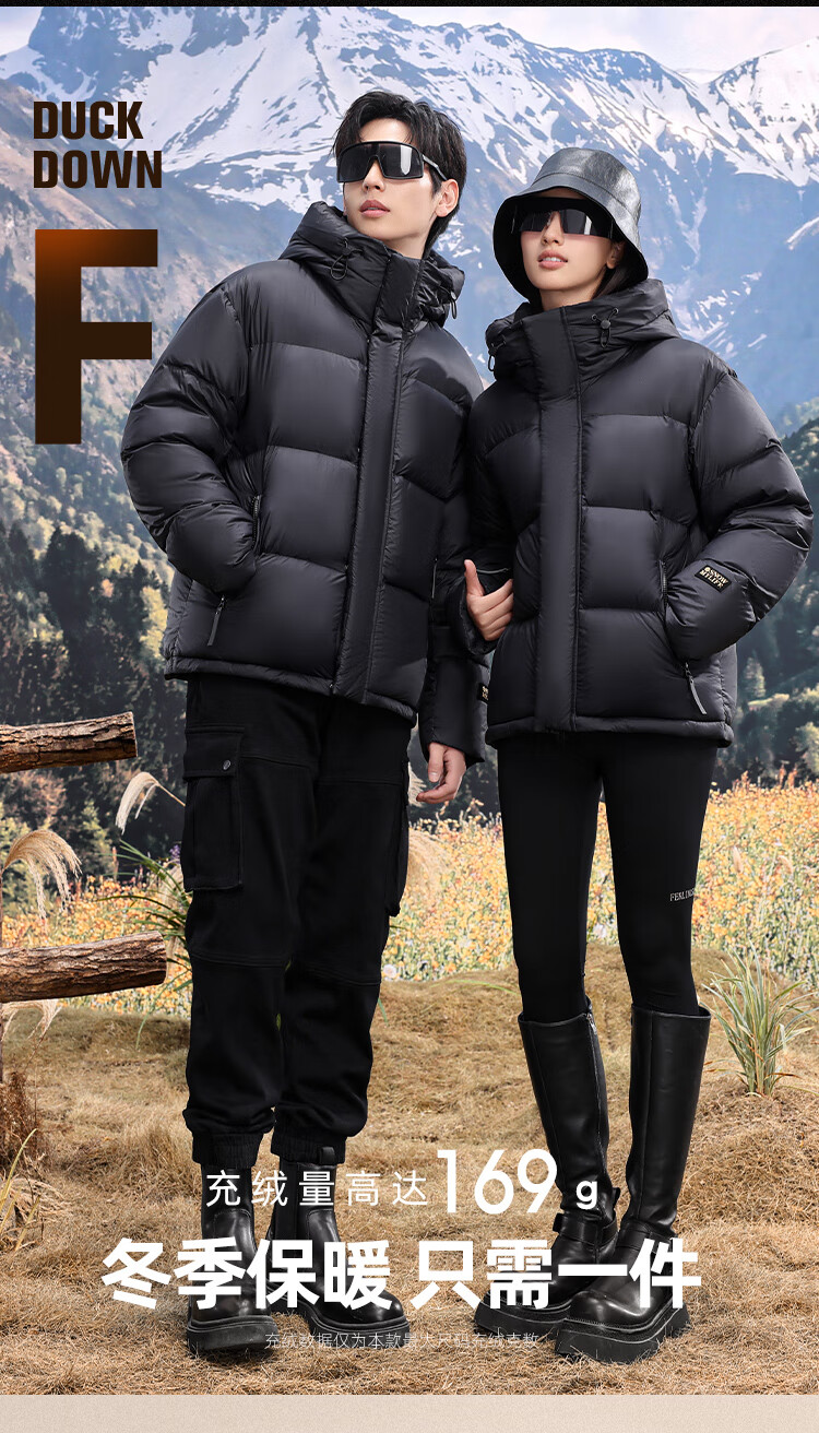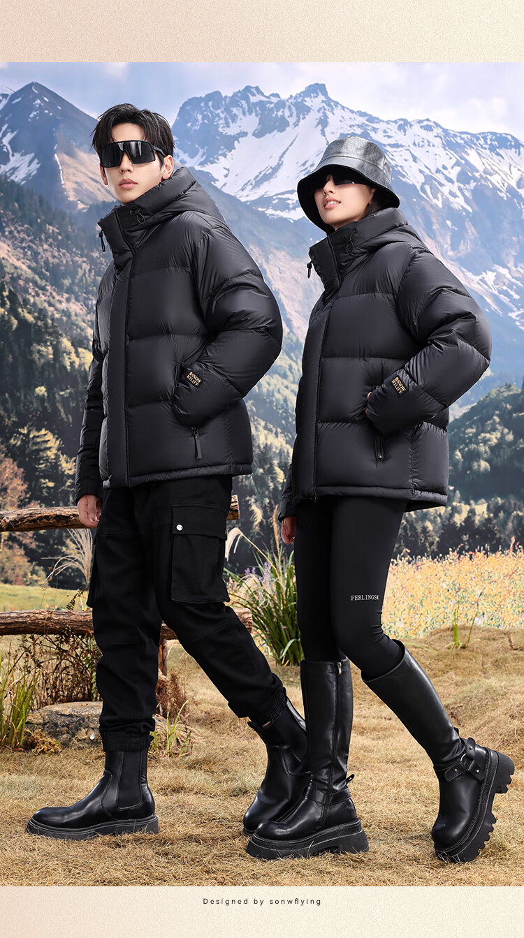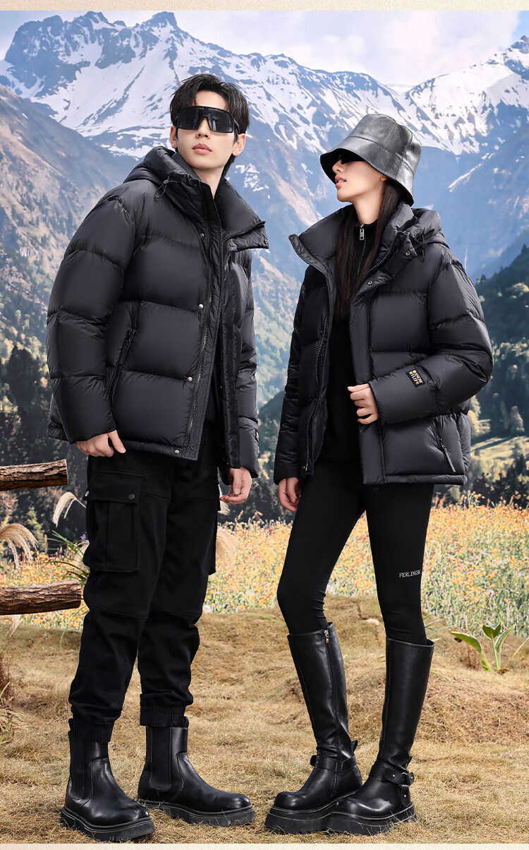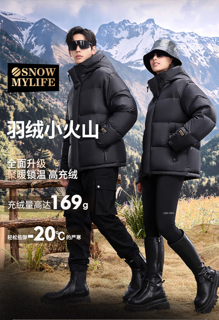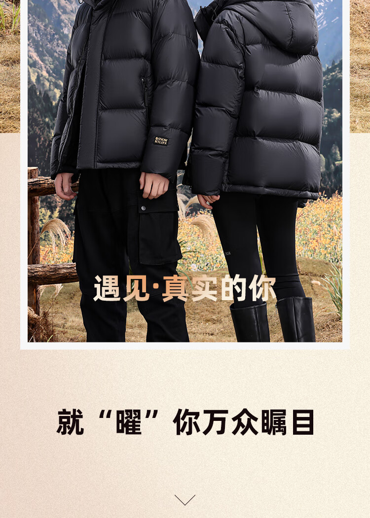 雪中飞男女同款羽绒服短款连帽高充绒蓬松舒适保暖防寒户外运动羽绒外套