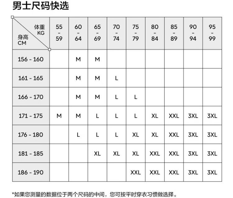 China (cm) 160-165/84-86 165-170 / 88-90 167-172 / 92-96 168-173 / 98-102 170-176 / 106-110