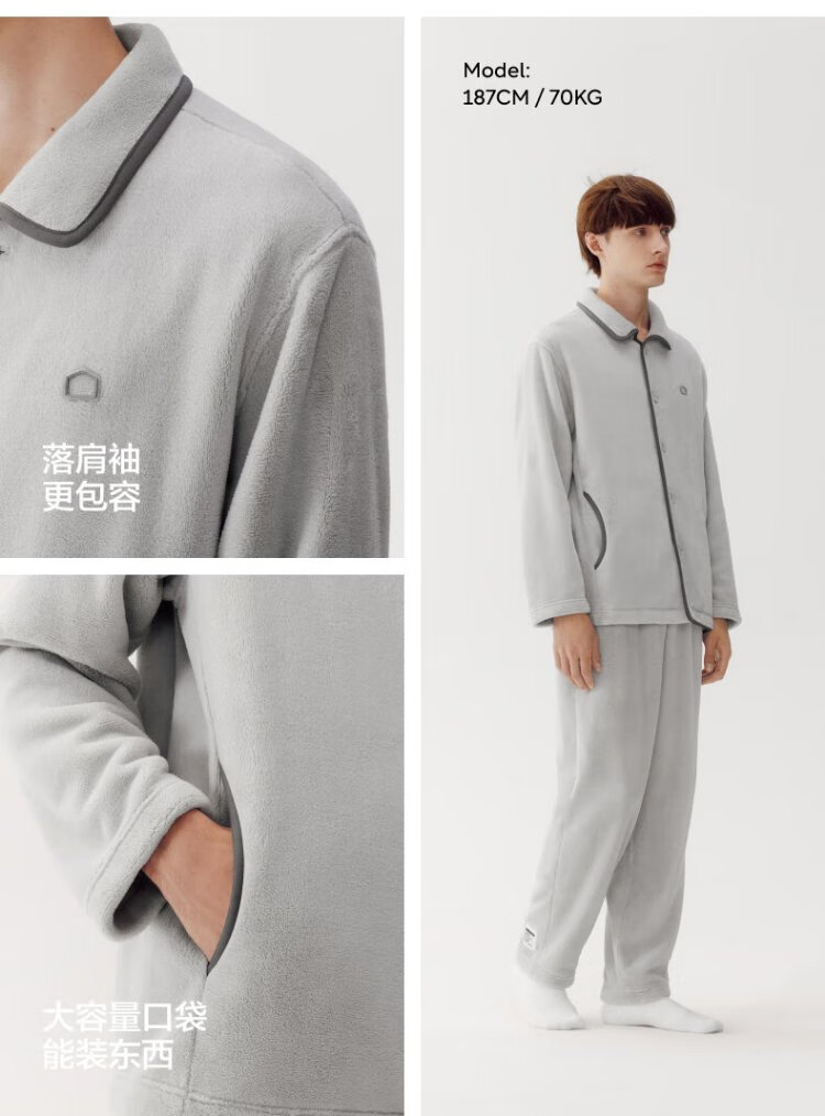 Jiao Nei Velvet 301H Pajamas Men's Flannel Lapel Home Clothes Couple Suit Autumn and Winter Warm Thickening and Velvet