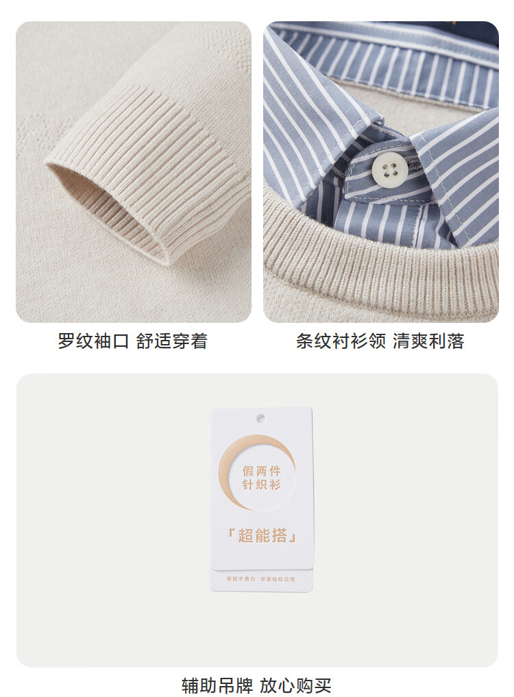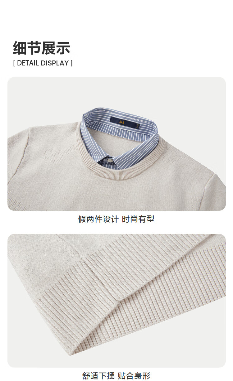 HLA Heilan Home Warm Knitted Sweater Men's Fake Two-piece Core Spun Yarn Jacquard Sweater Men