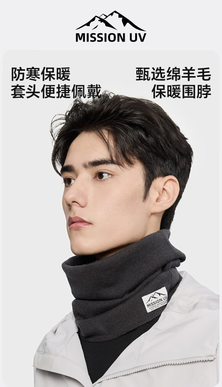 MISSION UV sheep wool scarf men's autumn and winter outdoor hiking and cycling mountaineering mask cold protection neck hood warm neck hood