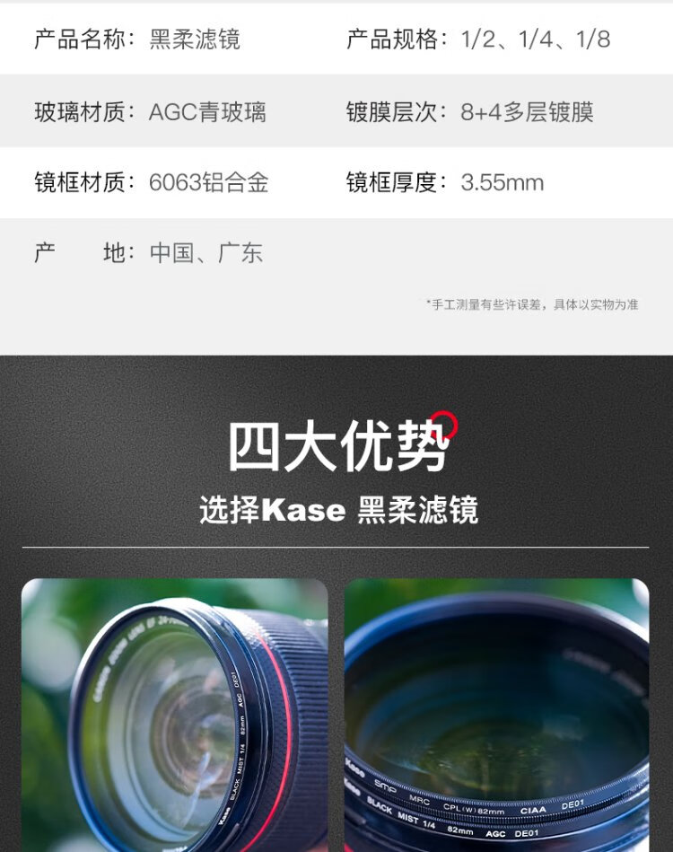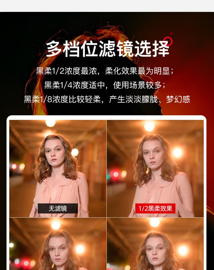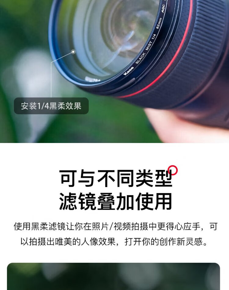 Kase black soft filter quarter 1/4 52mm beauty mirror soft focus mirror hazy mirror camera black soft filter portrait character light softening matte creative