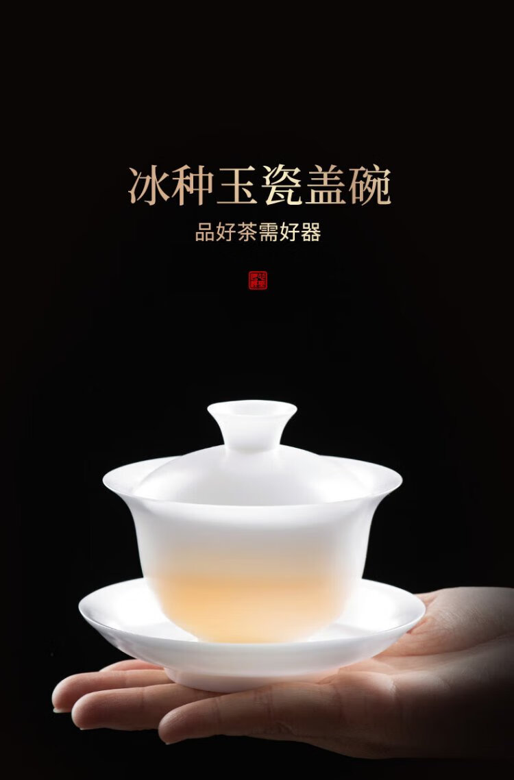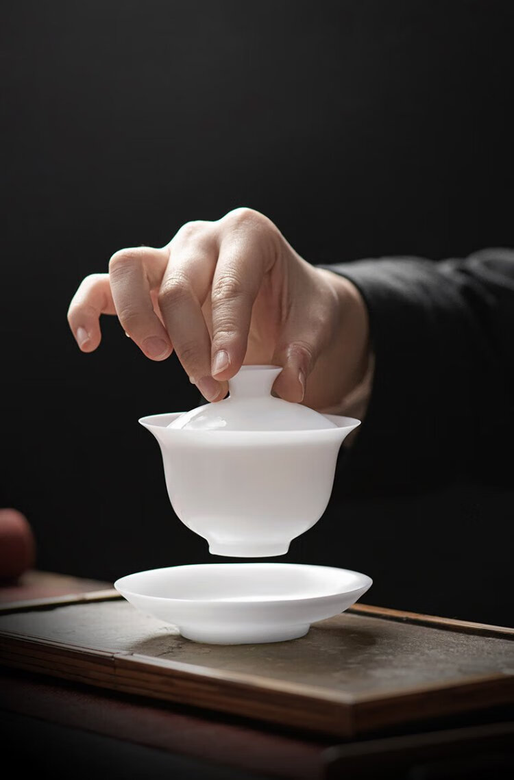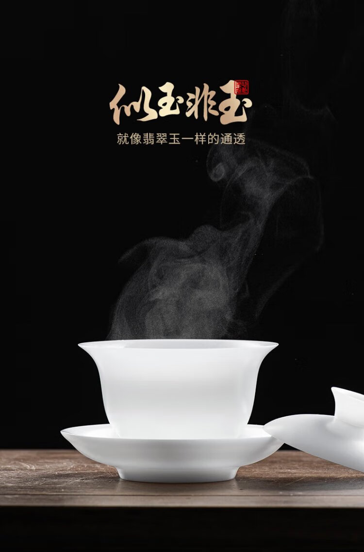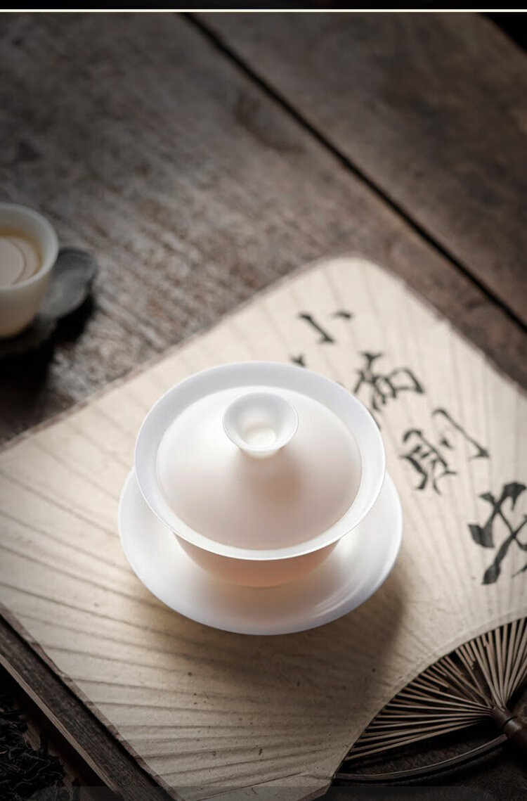 Teacher Shan Lihua's suet-fat jade tea cup, white porcelain tea bowl, single teacher's souvenir, thin tea-shaped tea bowl