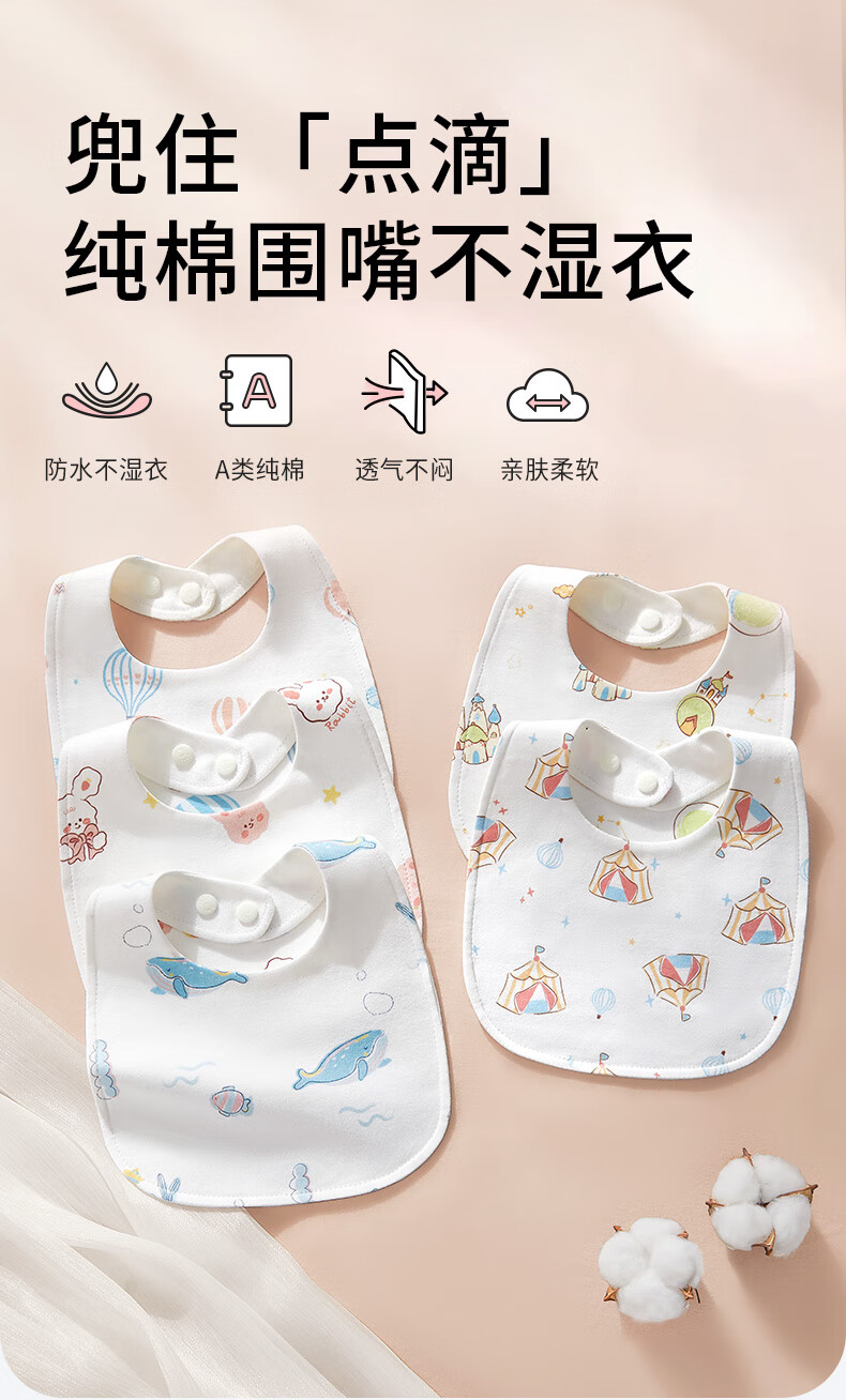 Kidsneed baby saliva towel bib pure cotton waterproof baby bib newborn anti-vomiting 3-layer pure cotton 6-pack