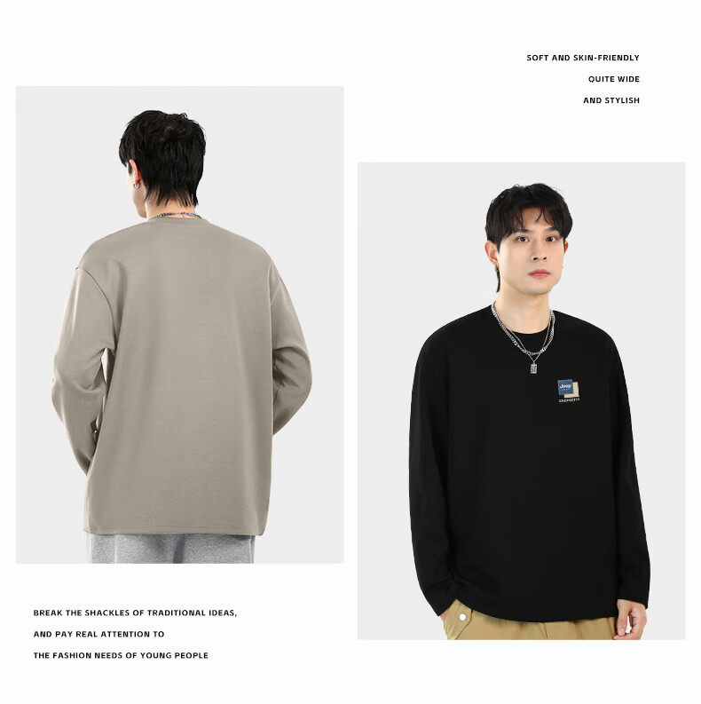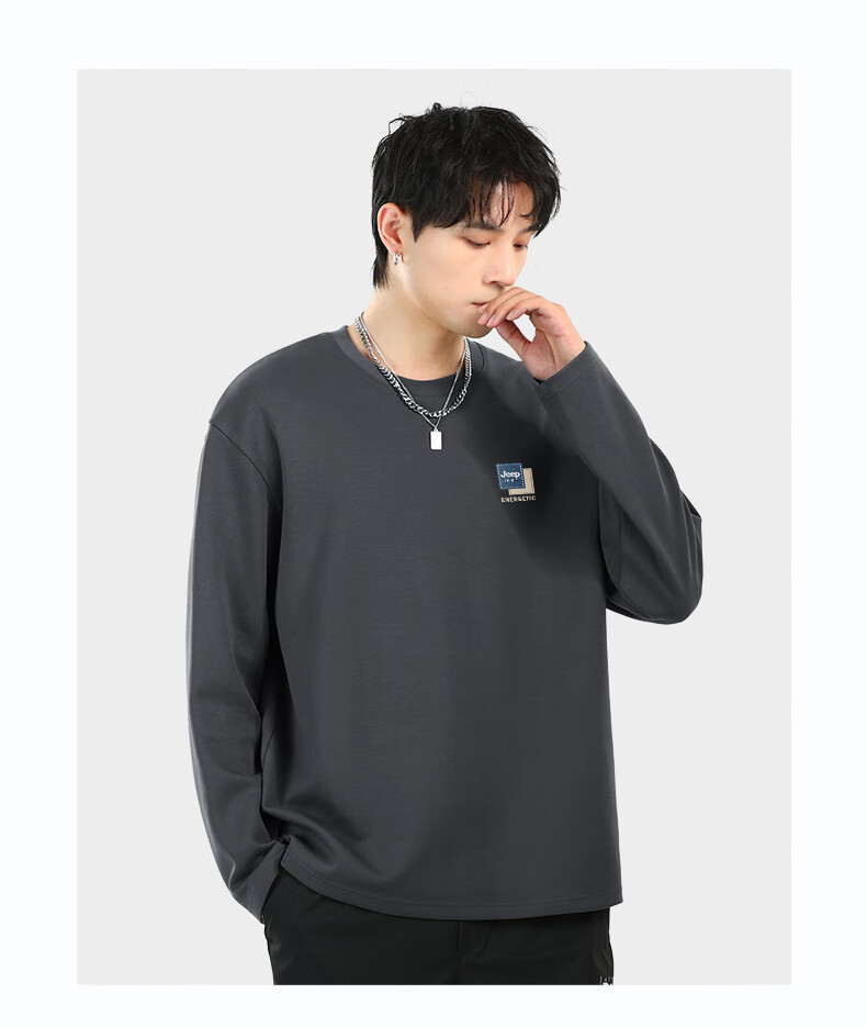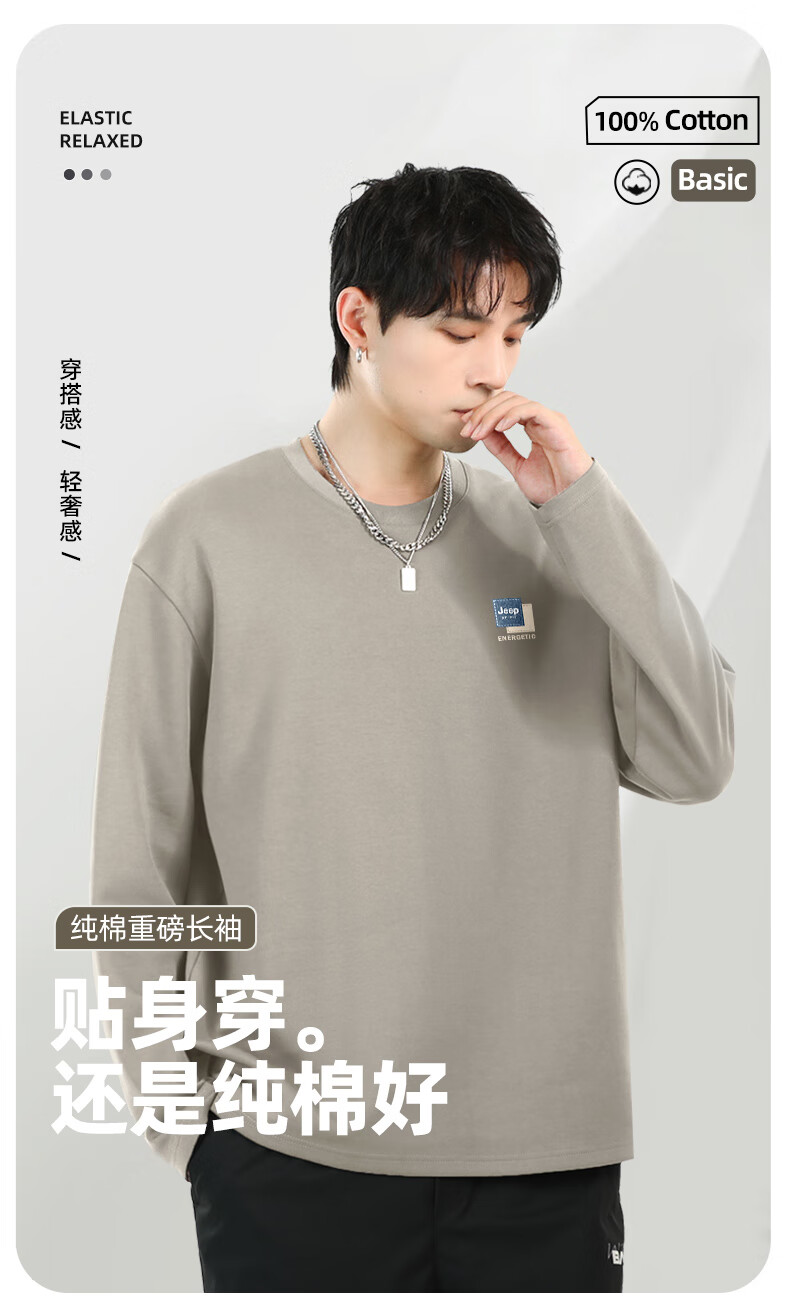 JEEP SPIRIT Jeep pure cotton long-sleeved men's t-shirt spring and autumn heavyweight inner wear men's loose large size round neck bottoming shirt for men