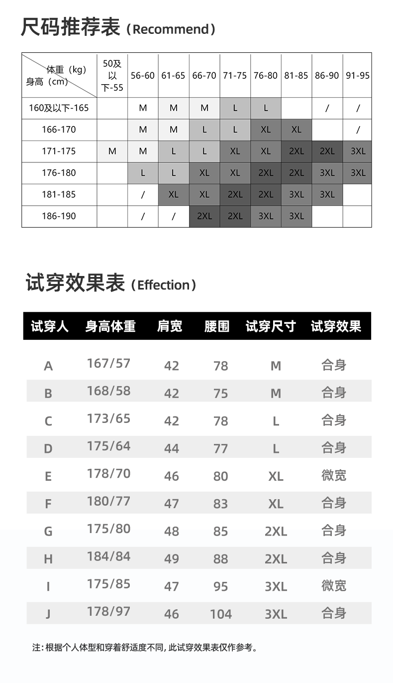 China (cm) 160-165/84-86 165-170 / 88-90 167-172 / 92-96 168-173 / 98-102 170-176 / 106-110