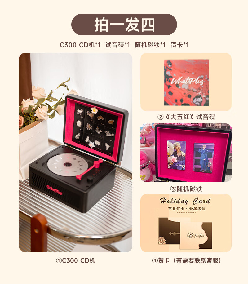 WHATPLUSC300 all-in-one CD player audiophile album player retro CD player record player shape bluetooth speaker bluetooth cd player gift black powder 2nd generation