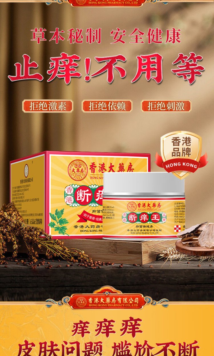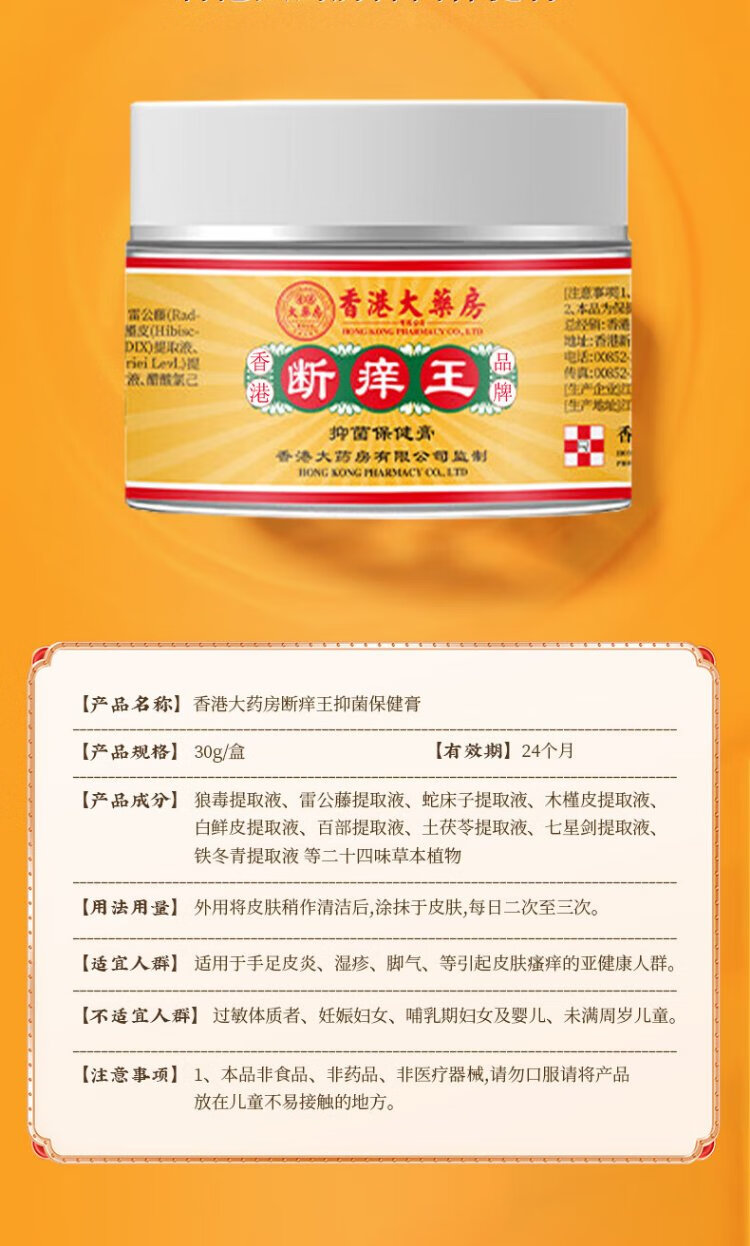 Hong Kong Pharmacy Co., Ltd. Itch-breaking King, Itch-Relieving King, Antibacterial Skin, Anal Itching, Moisturizing Scrotum, Body Itching Wolfsbane Ointment, Rash Roots for the Elderly