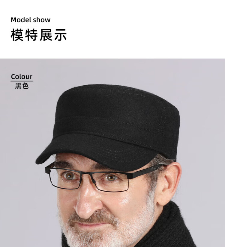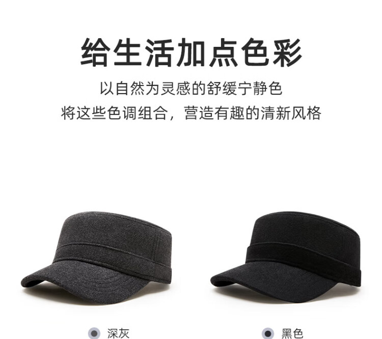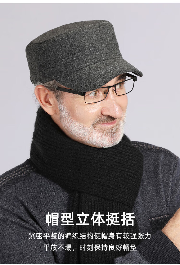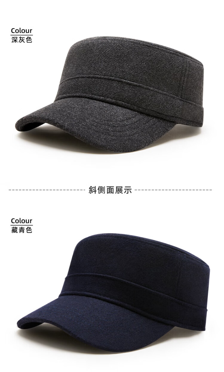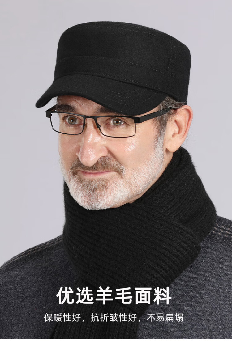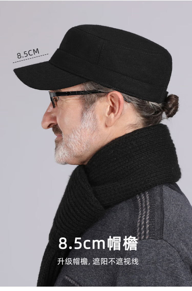 Romon Hat Men's Autumn and Winter Middle-aged and Elderly Grandpa Wool Baseball Cap Warm Peaked Cap Flat Top Old Man Hat