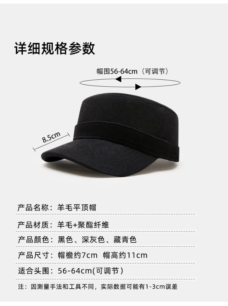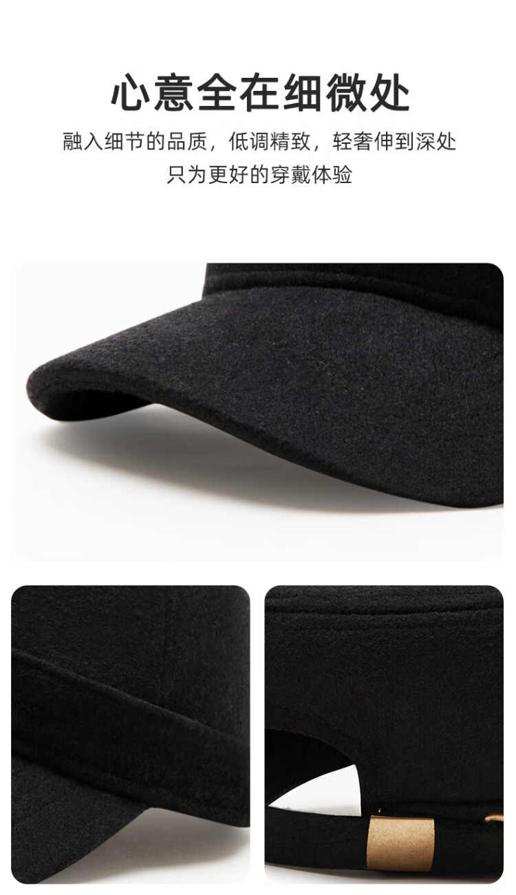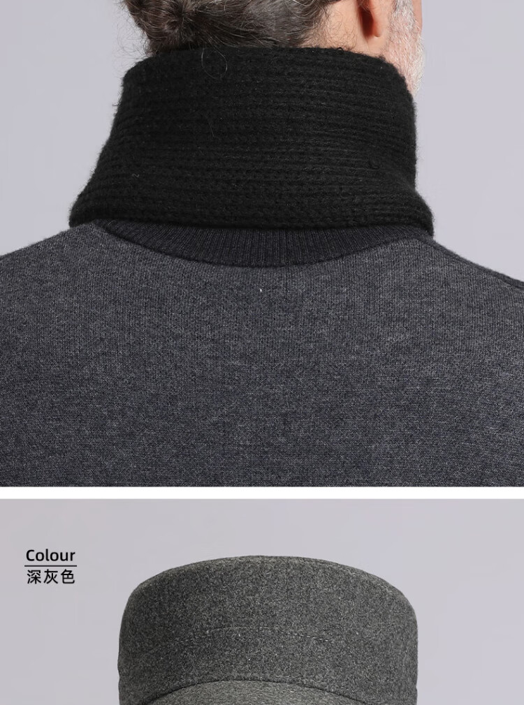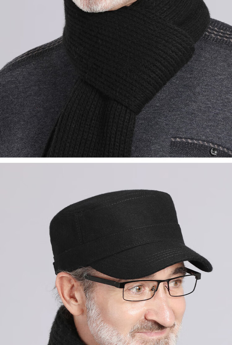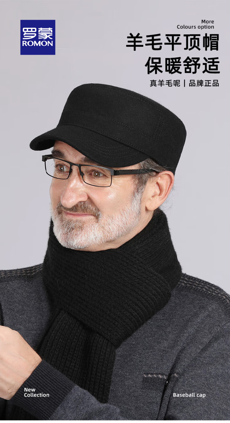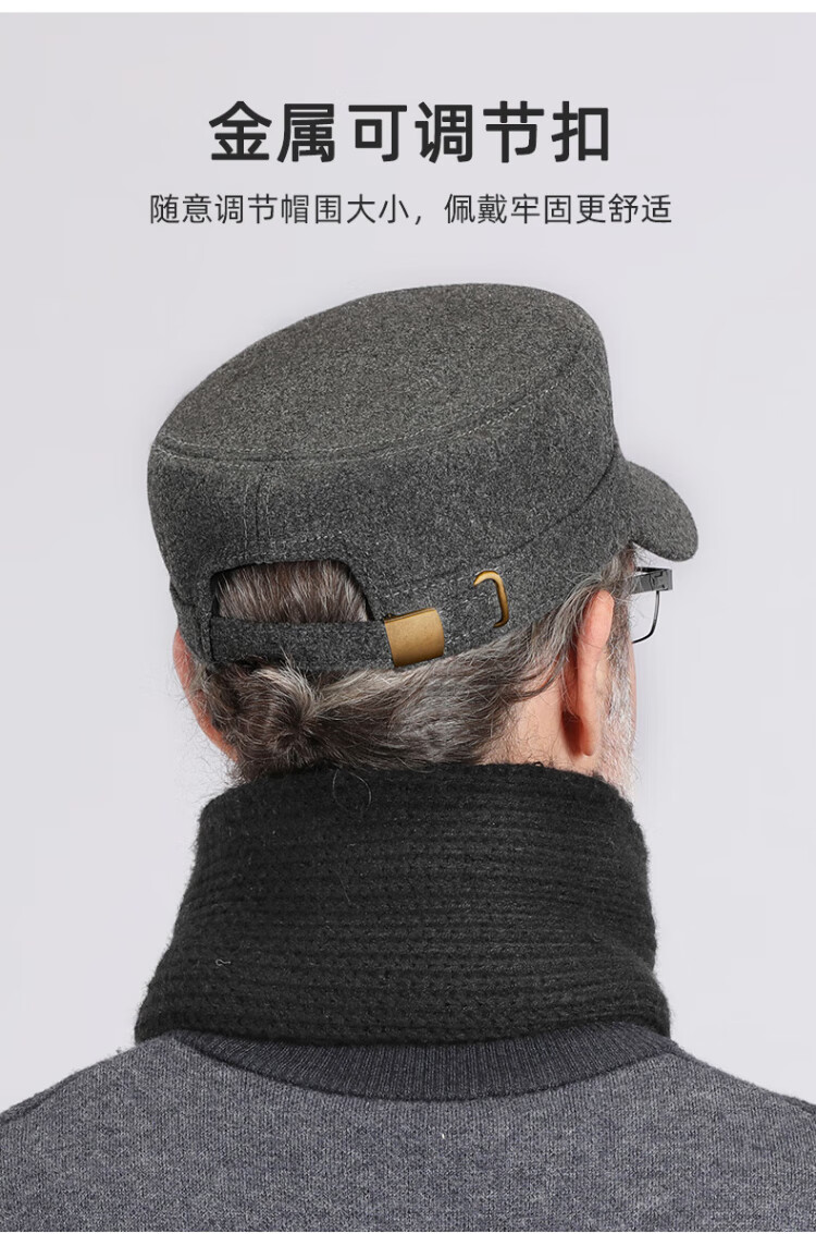 Romon Hat Men's Autumn and Winter Middle-aged and Elderly Grandpa Wool Baseball Cap Warm Peaked Cap Flat Top Old Man Hat