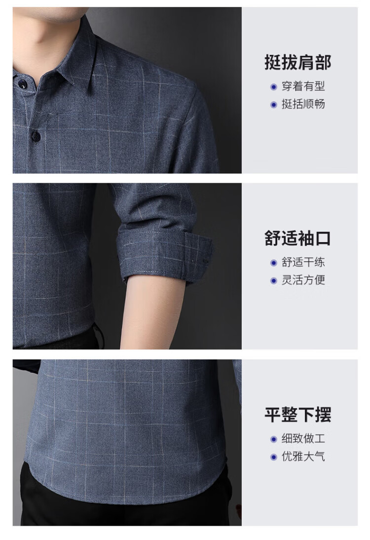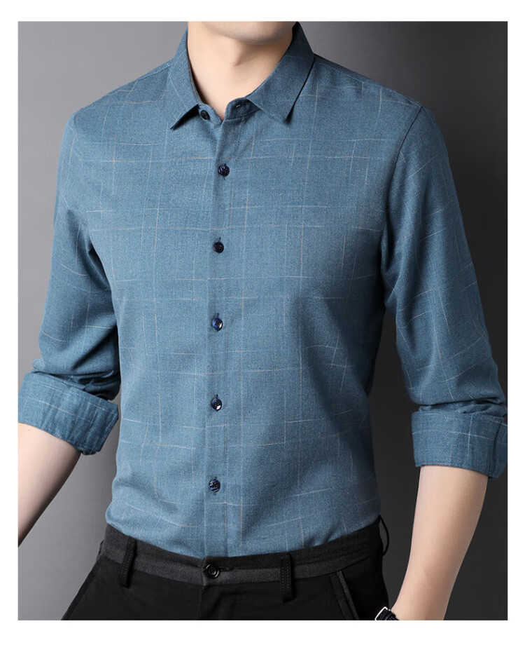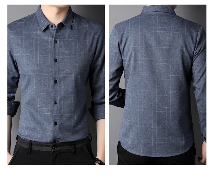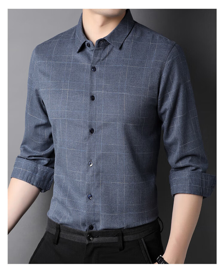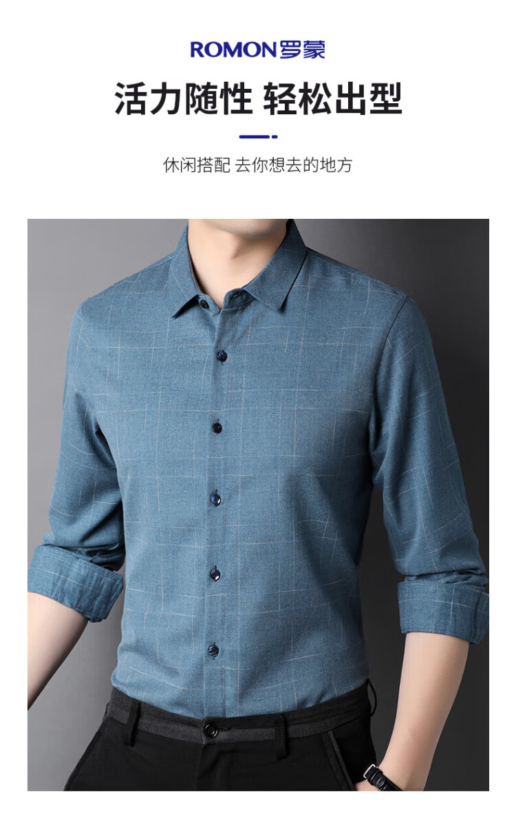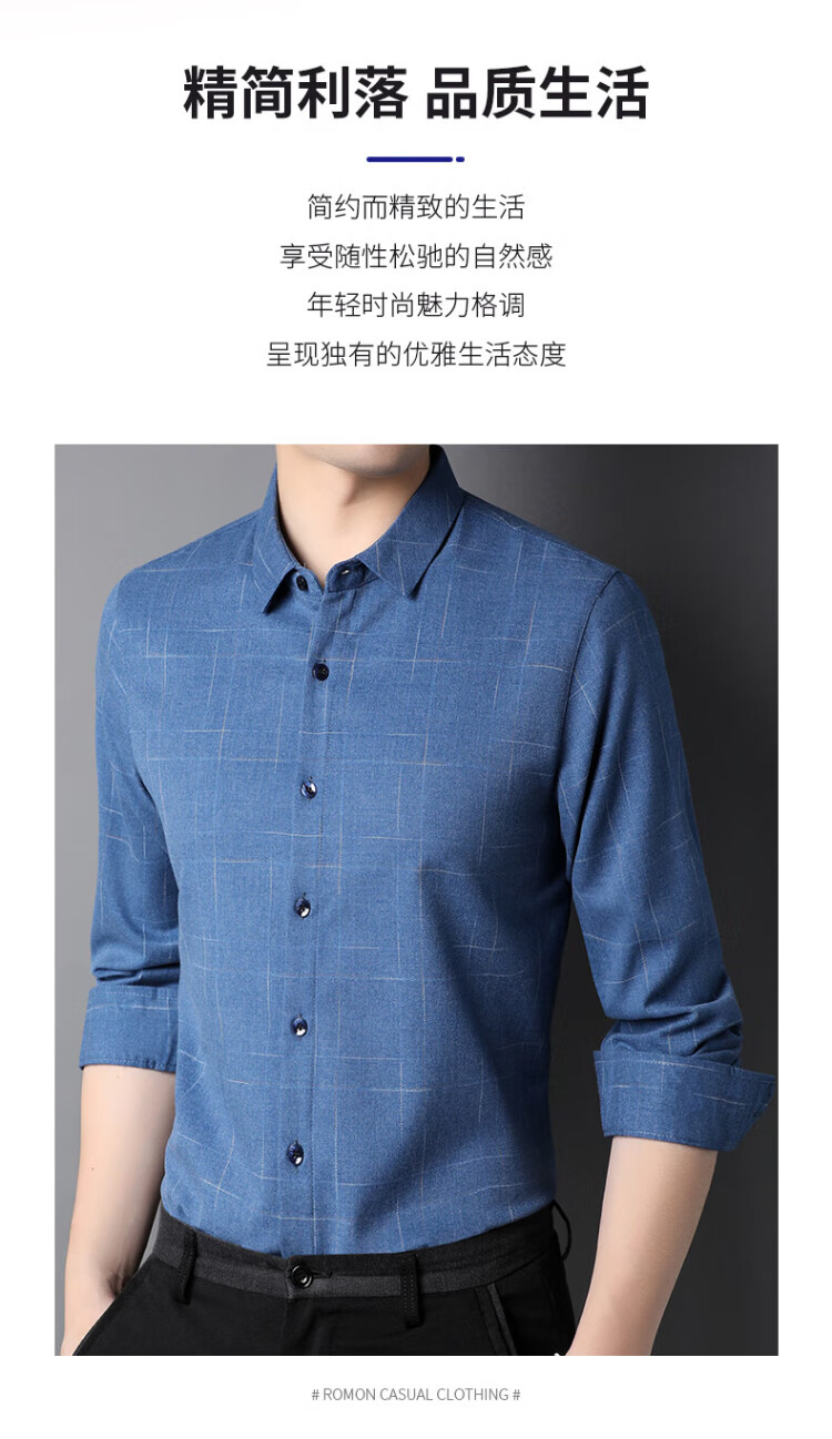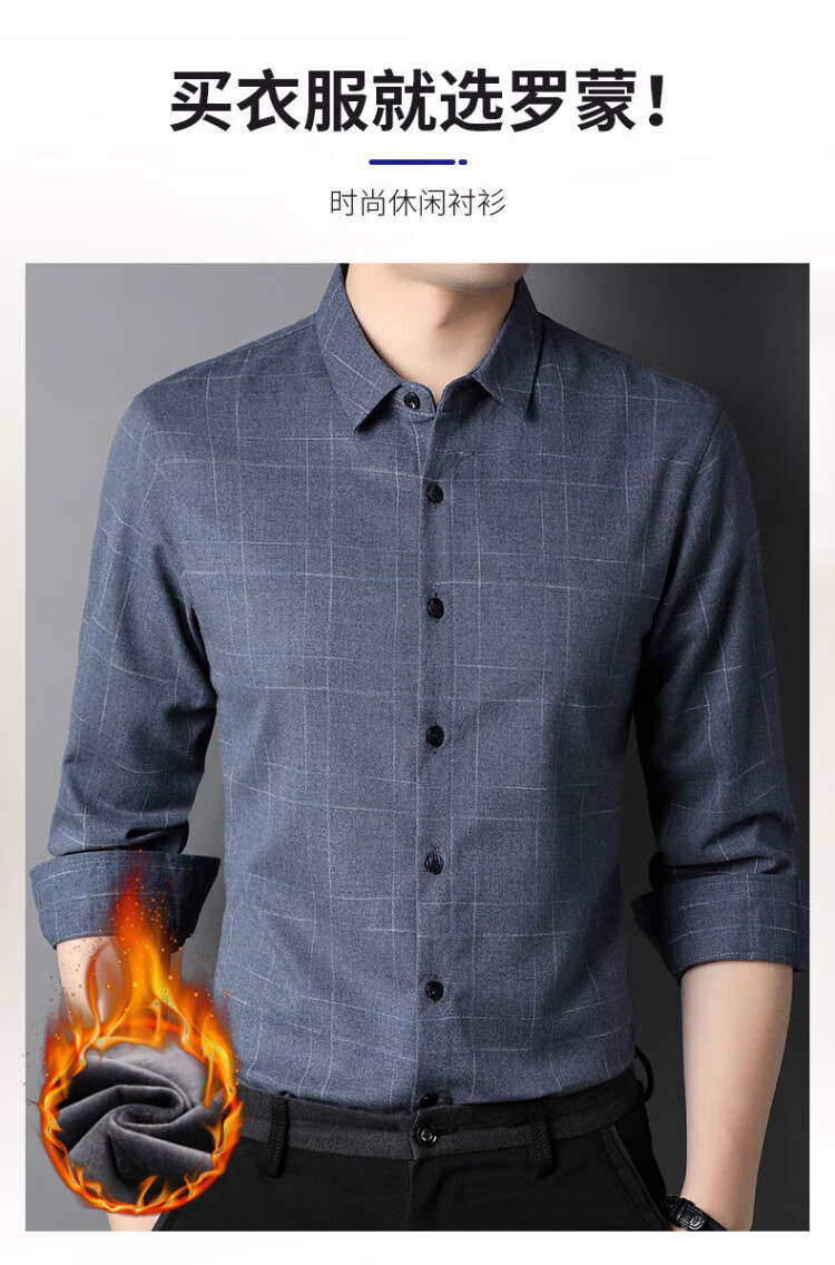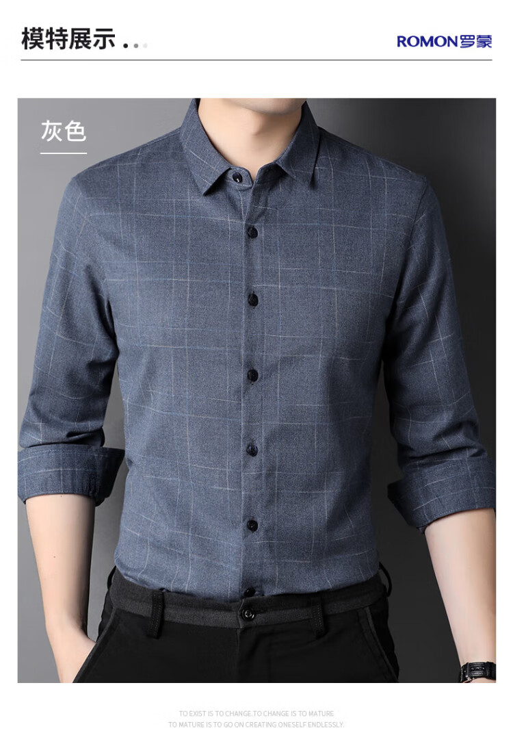 ROMON long-sleeved shirt men's autumn and winter business shirt men's striped casual gentleman jacket men's gray 3XL