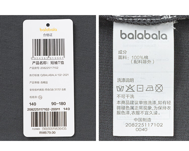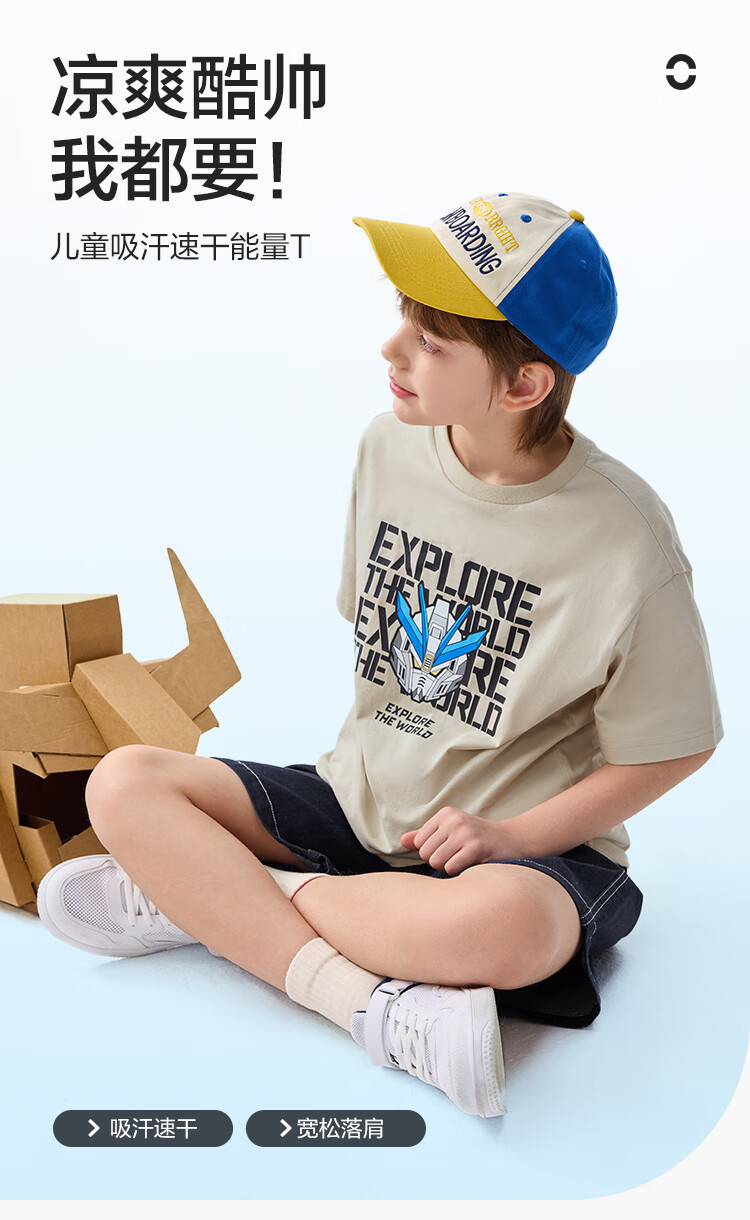 Balabala children's short-sleeved T-shirt boys' baby tops 2025 summer children's clothing quick-drying parent-child bottoming shirt 208225117102