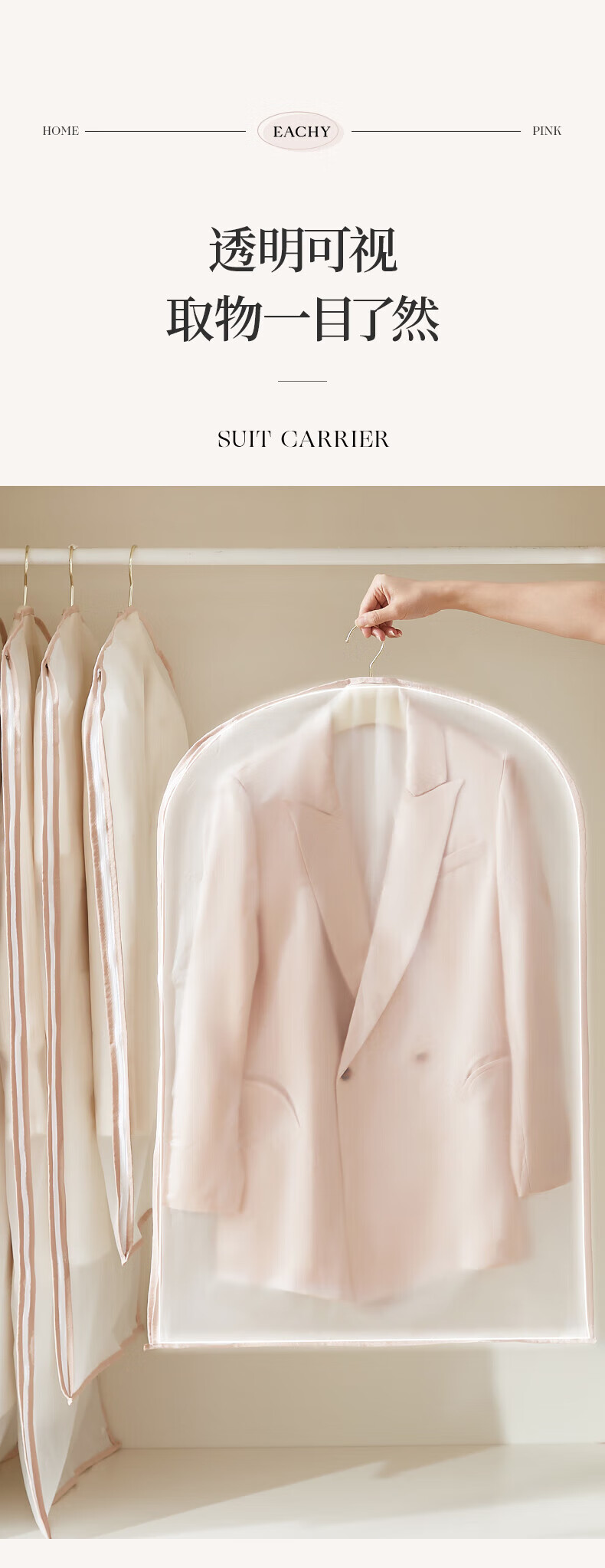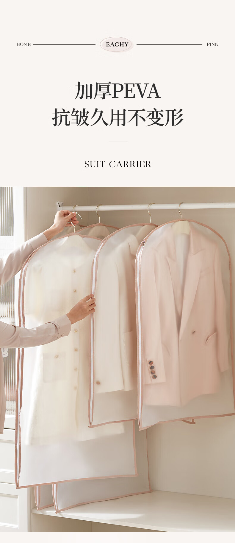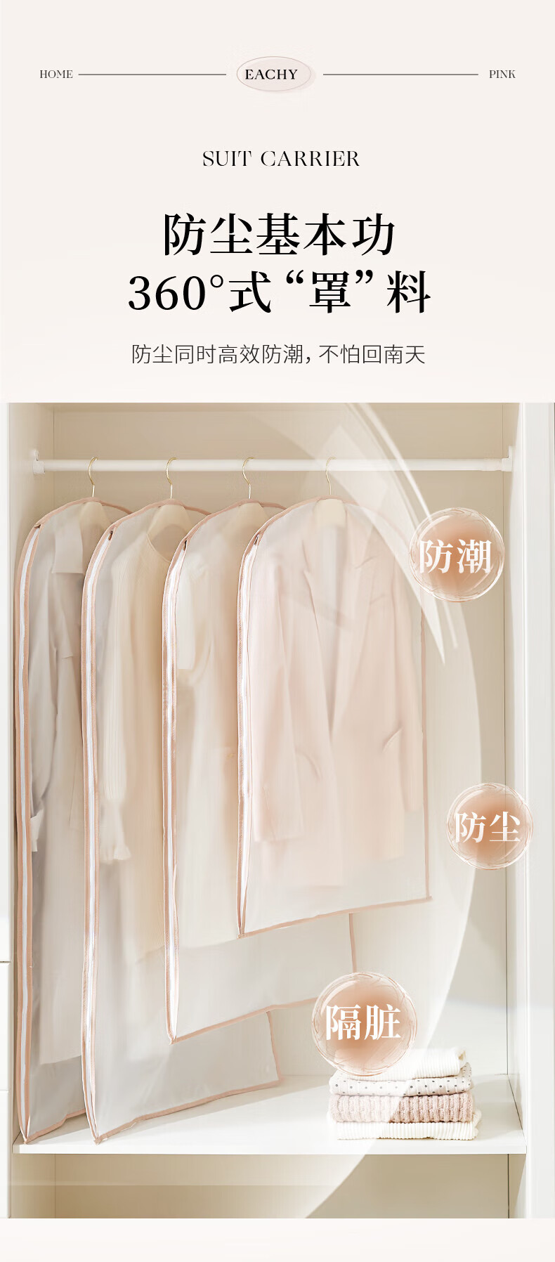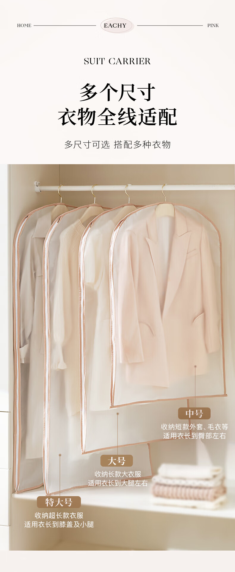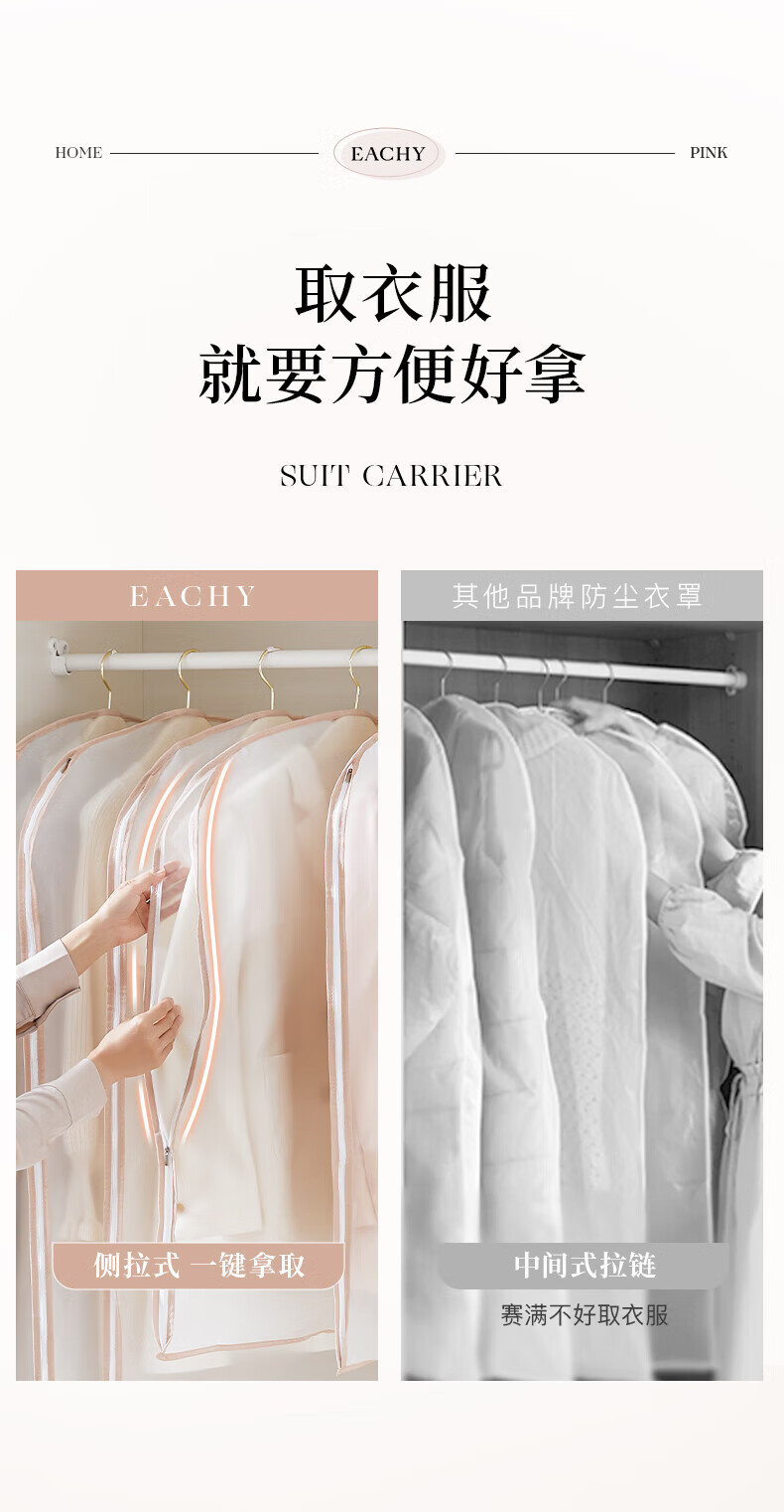 EACHY clothing dust cover thickened suit coat dust cover down jacket clothing dust bag hanging clothes bag - pink large 5 pieces