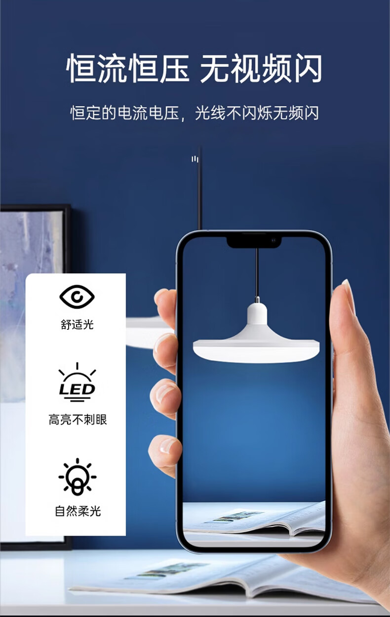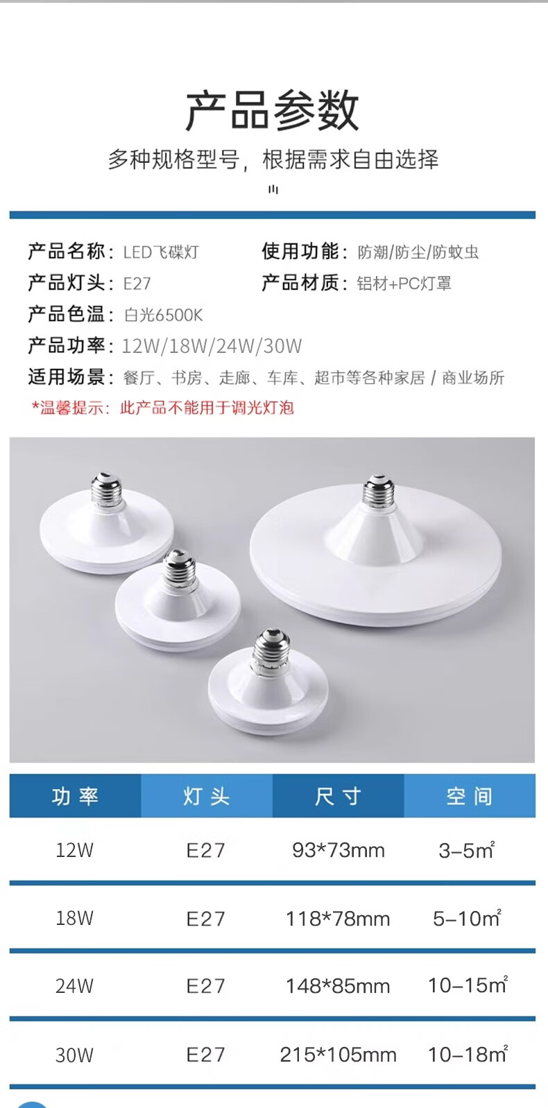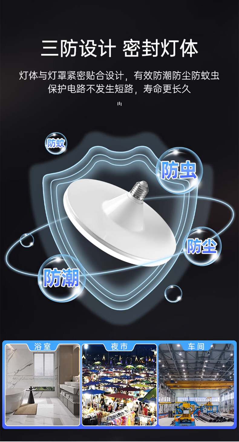 Jinggong LED three-proof flying saucer lamp E27 large screw mouth energy-saving high-brightness light source high-power property factory commercial lighting 30W white light