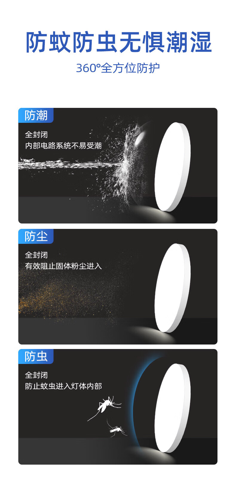 Jinggong LED three-proof ceiling light, moisture-proof, dust-proof, insect-proof, stairway, corridor, corridor light, ultra-thin smart light