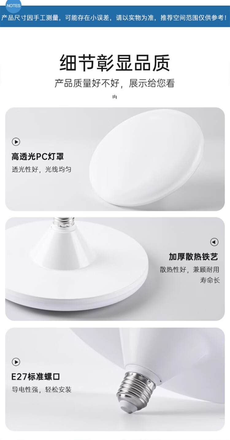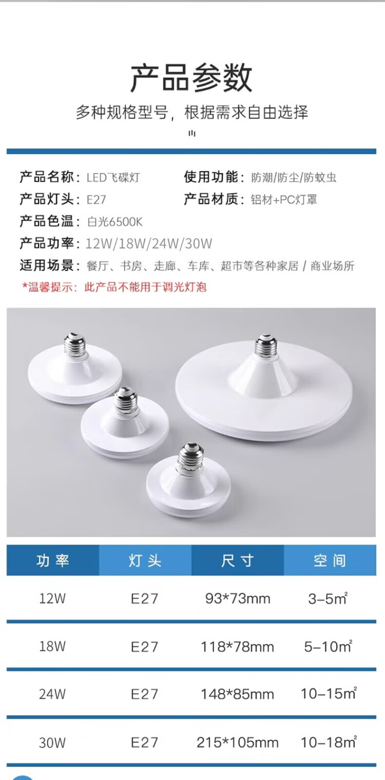 Jinggong LED three-proof flying saucer lamp E27 large screw mouth energy-saving high-brightness light source high-power property factory commercial lighting 18W white light