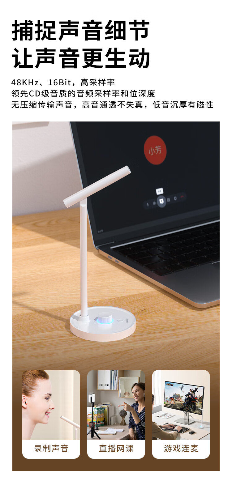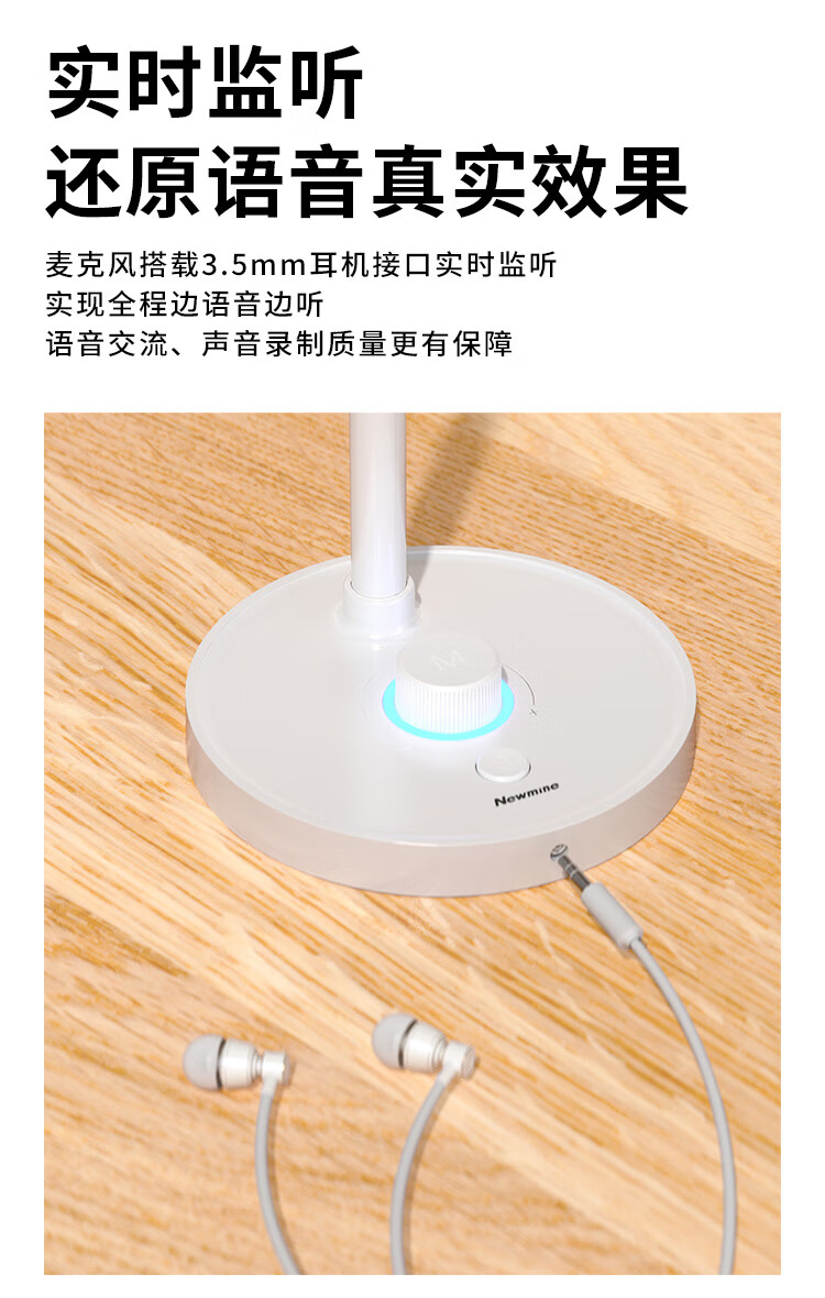Newman ZM06 computer microphone, USB gaming desktop noise reduction microphone, computer desktop notebook, online class conference, voice live recording, condenser microphone, white