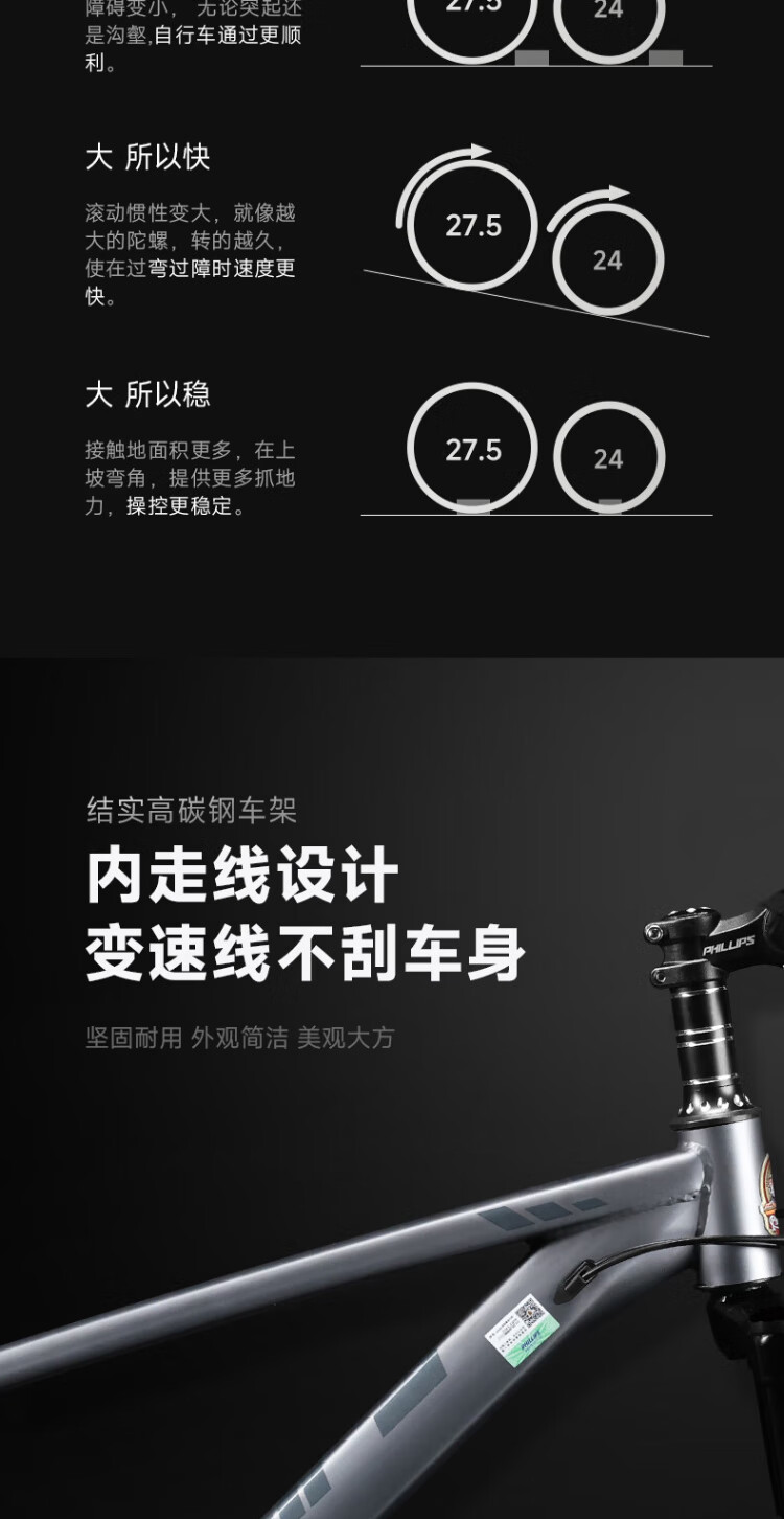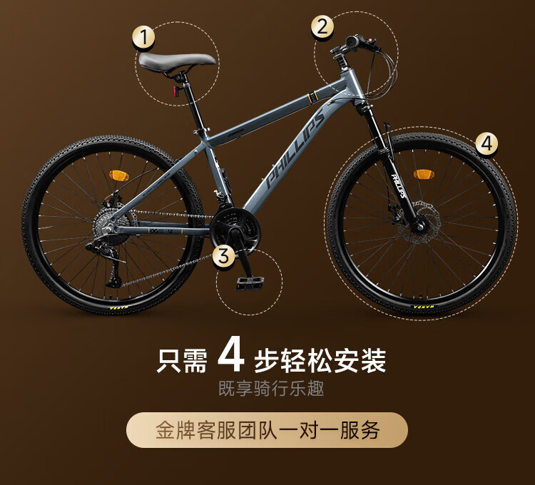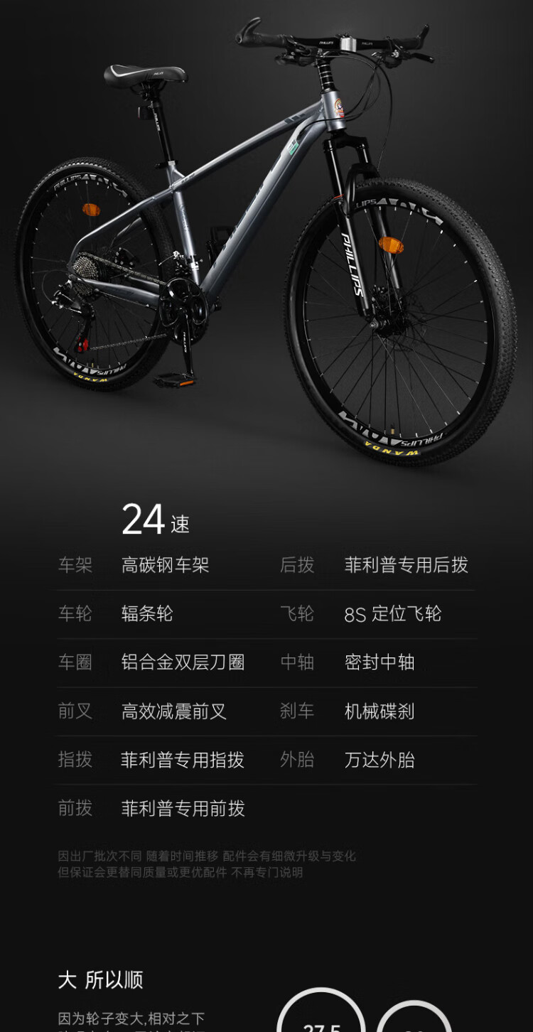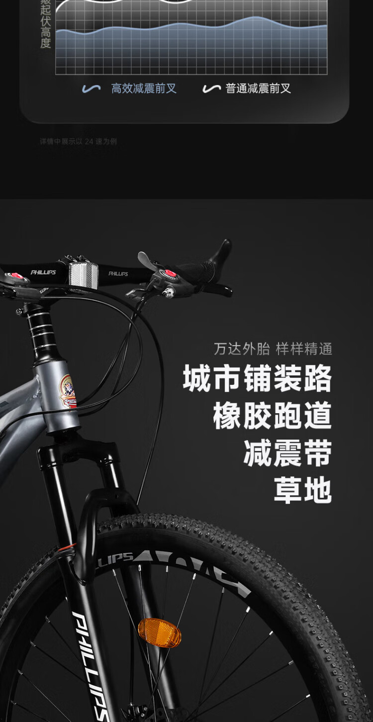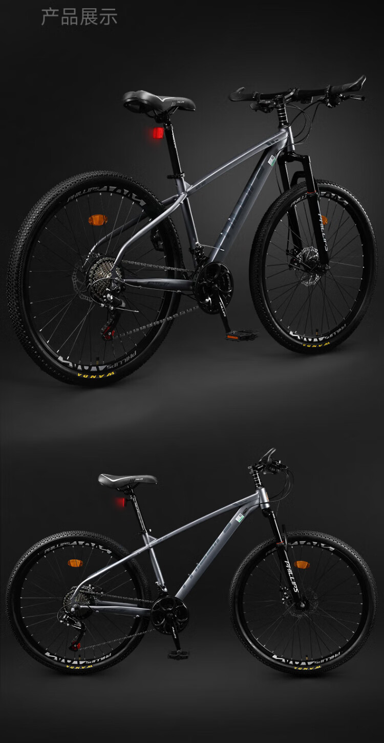 PHILLIPS mountain bike youth bicycle adult male and female student variable speed road bicycle bicycle gray 24 speed 27.5 inch