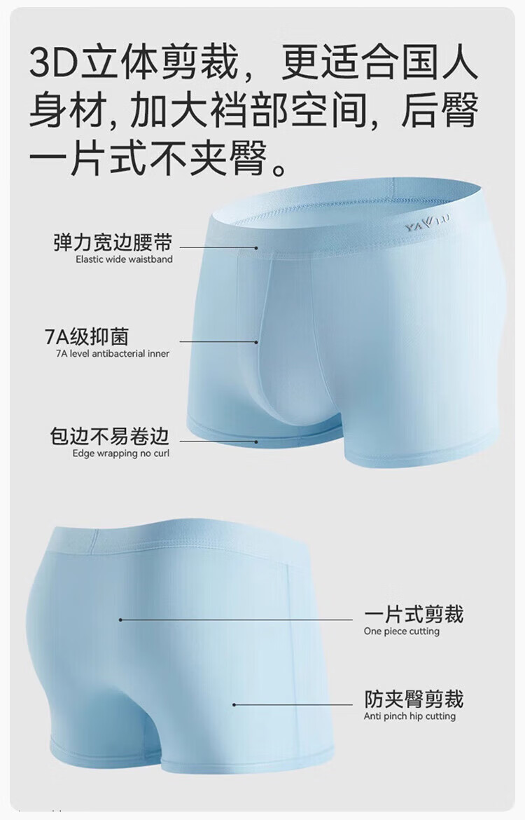 Yalu men's underwear men's summer ice silk seamless antibacterial large size four-corner men's boxer briefs young boys shorts