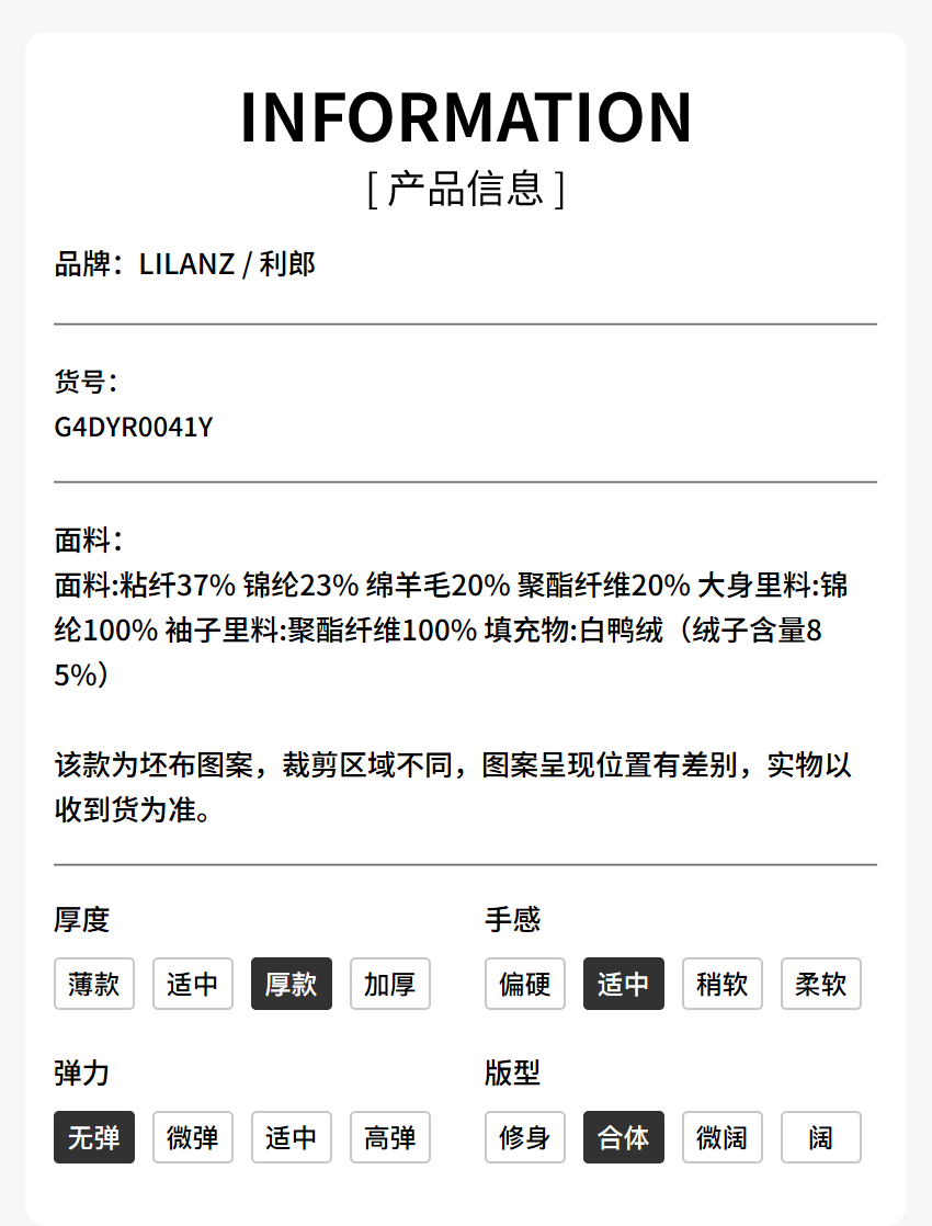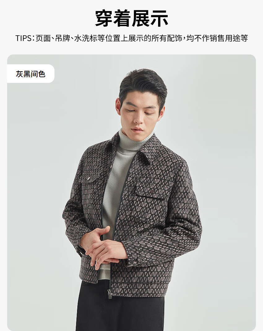 Lilang down woolen coat men's short winter men's woolen jacket gray and black 175/92A