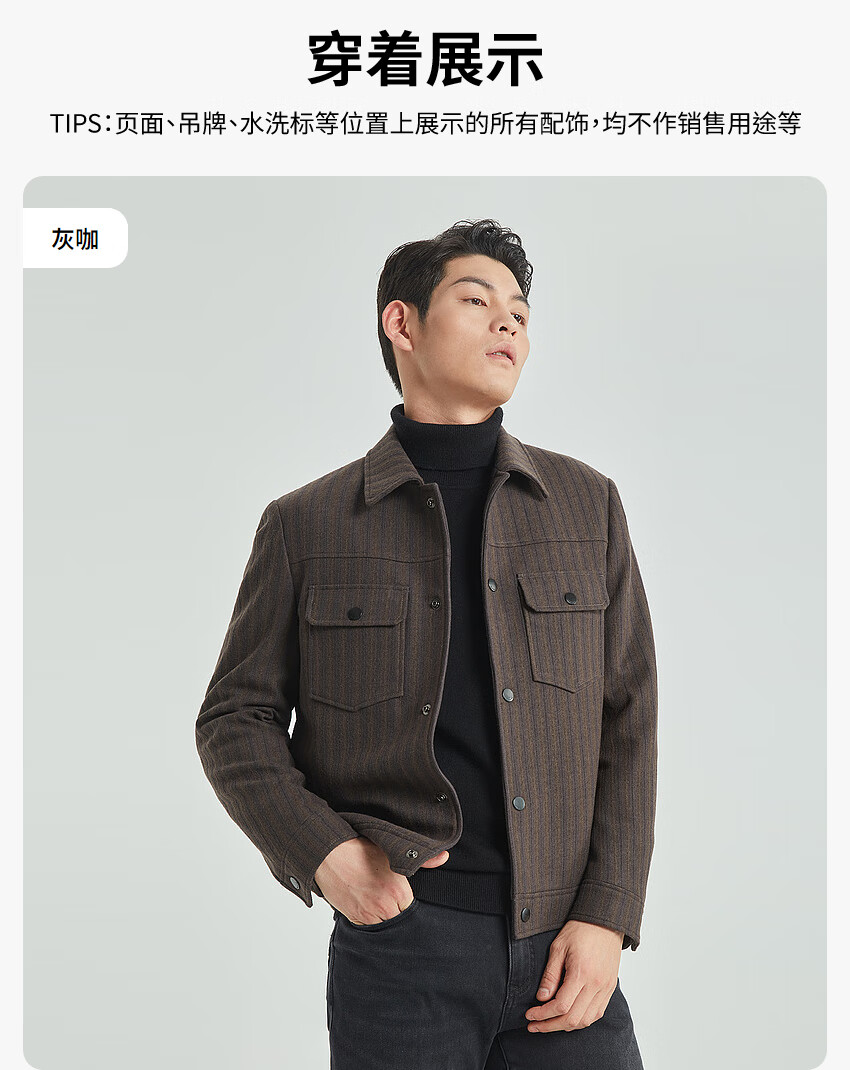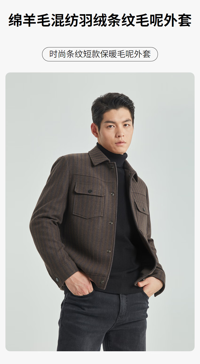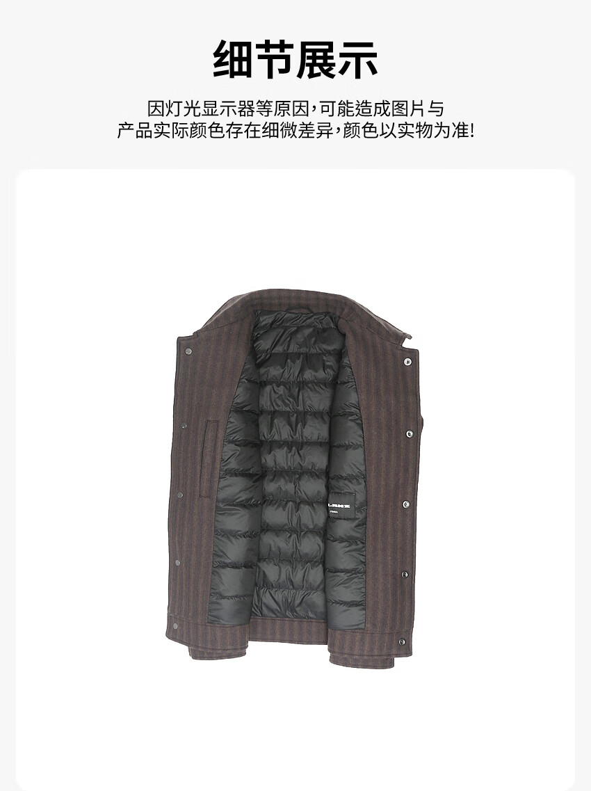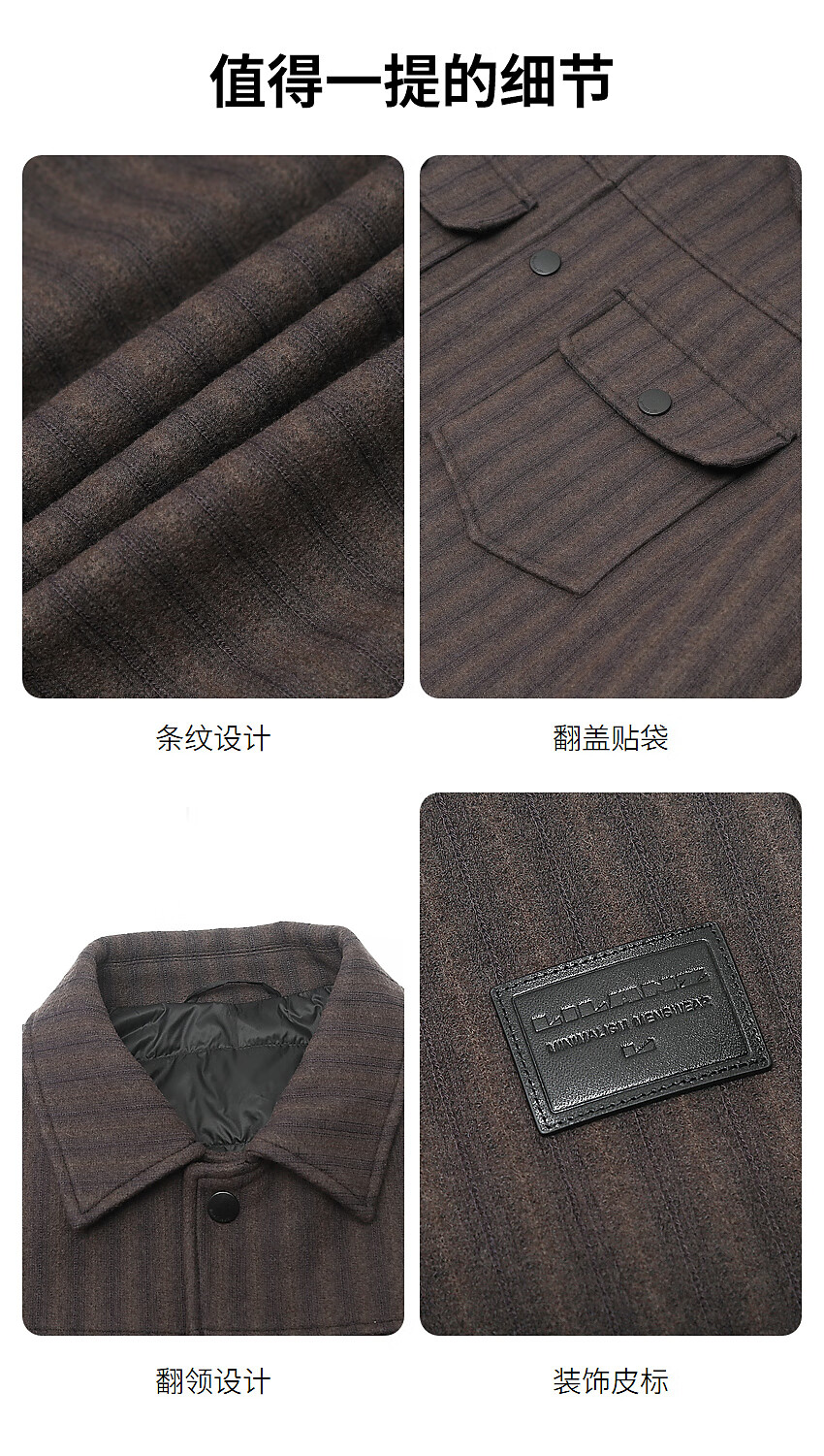 Lilang down woolen coat men's short lapel winter casual men's woolen jacket gray coffee 180/96A