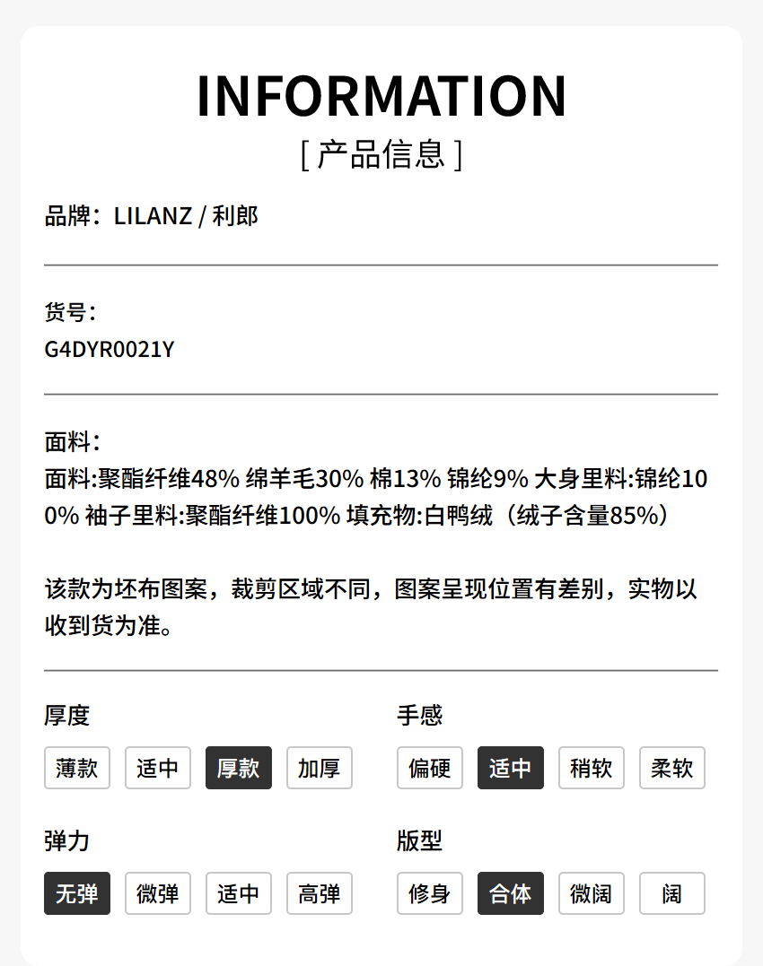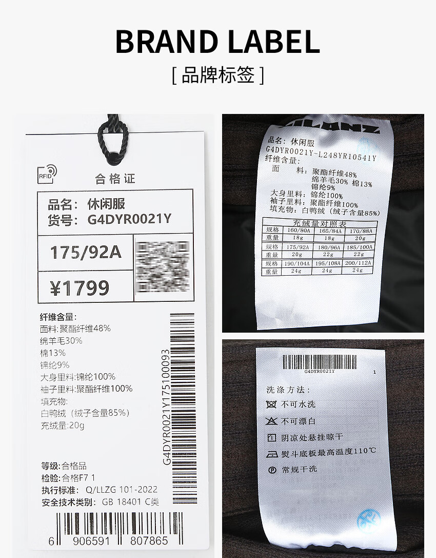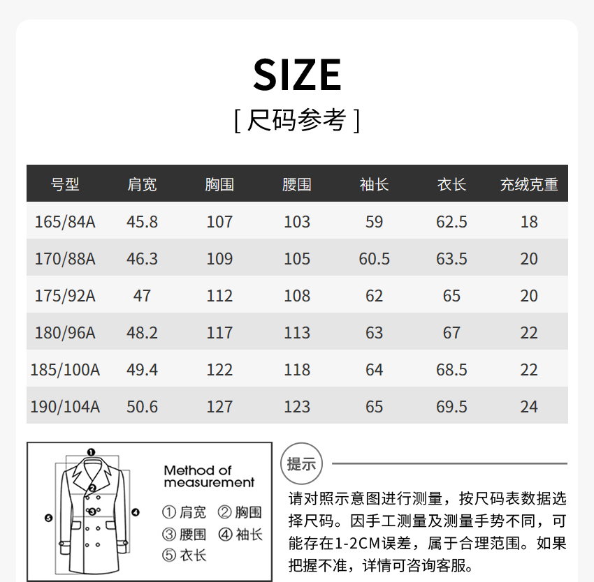 China (cm) 165 / 88-90 170 / 96-98 175 / 108-110 180 / 118-122 185 / 126-130
