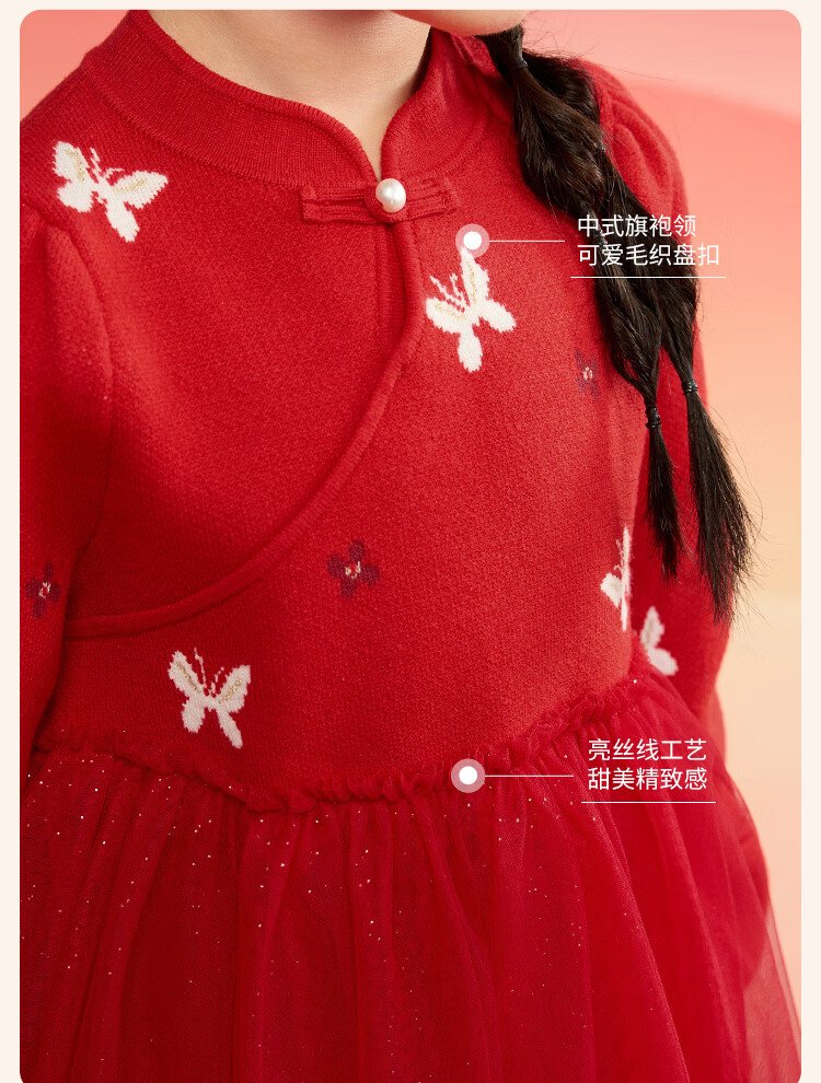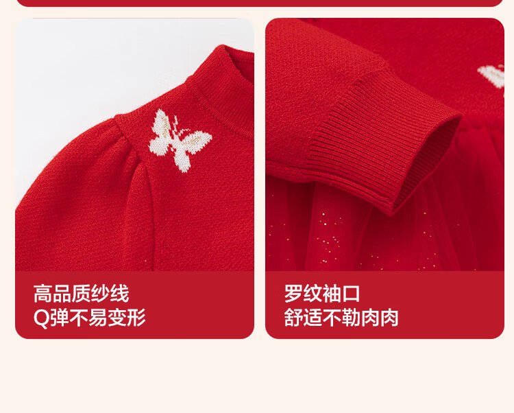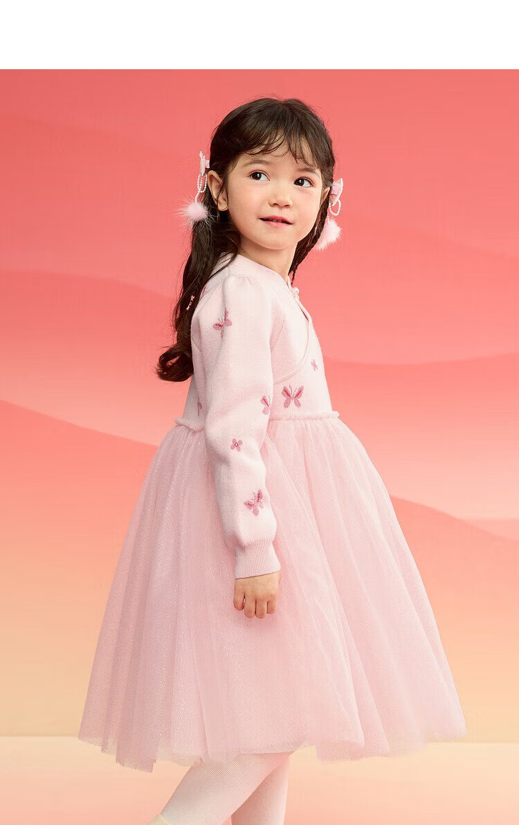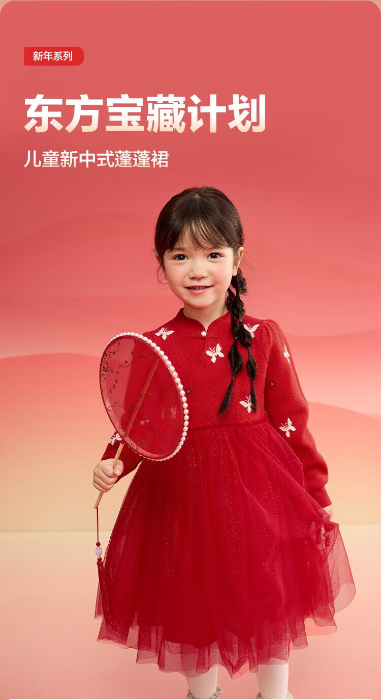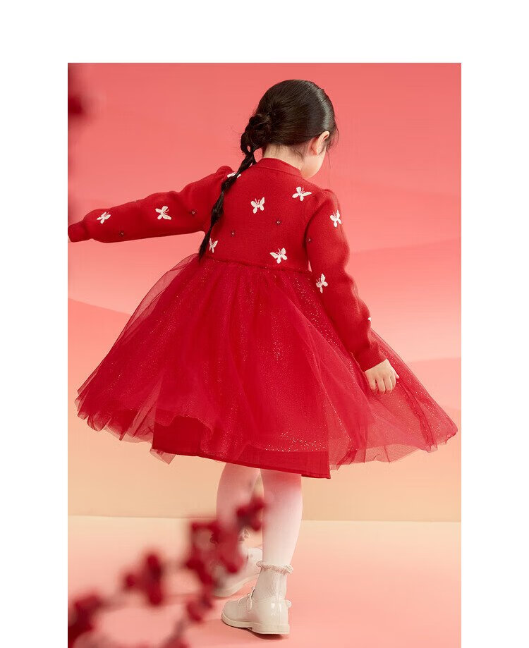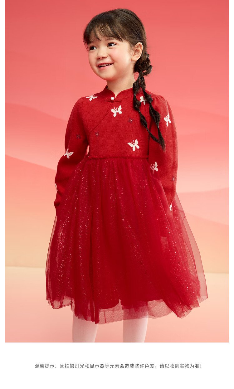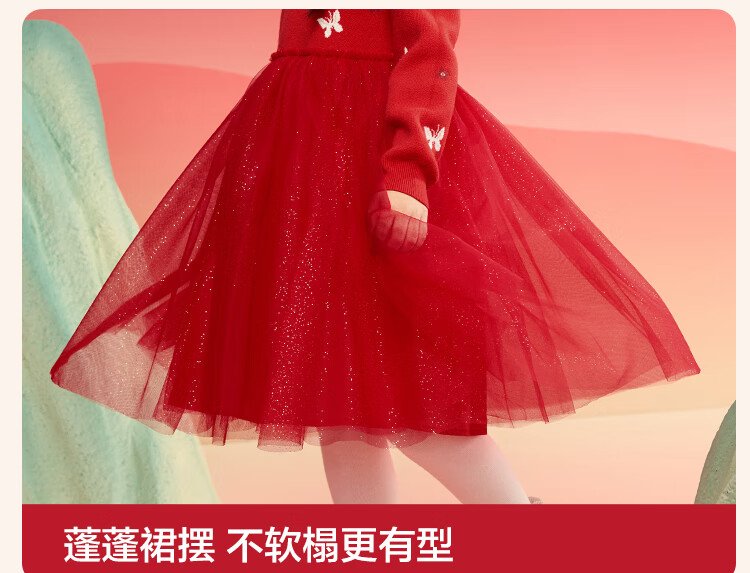 Balabala children's clothing girls dress children's skirt knitted mesh 2025 spring princess dress new year 209125111001