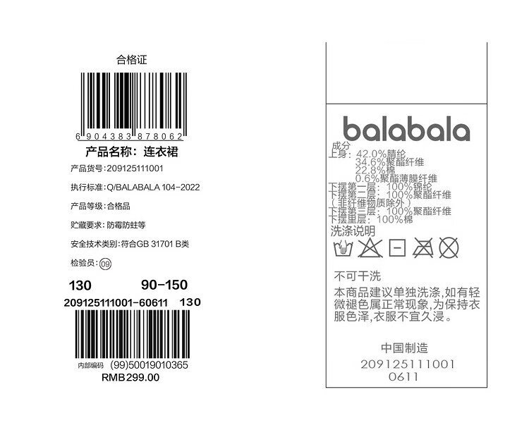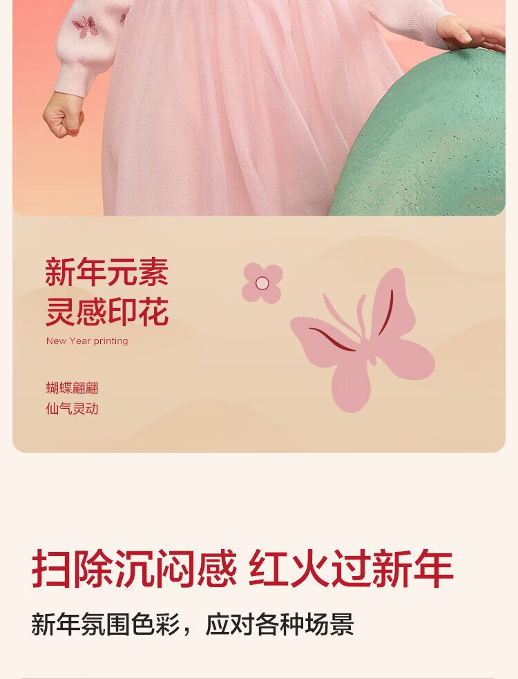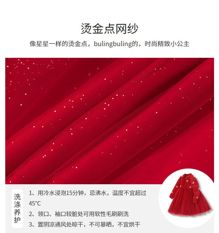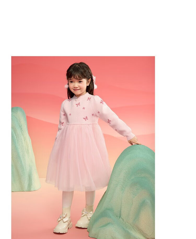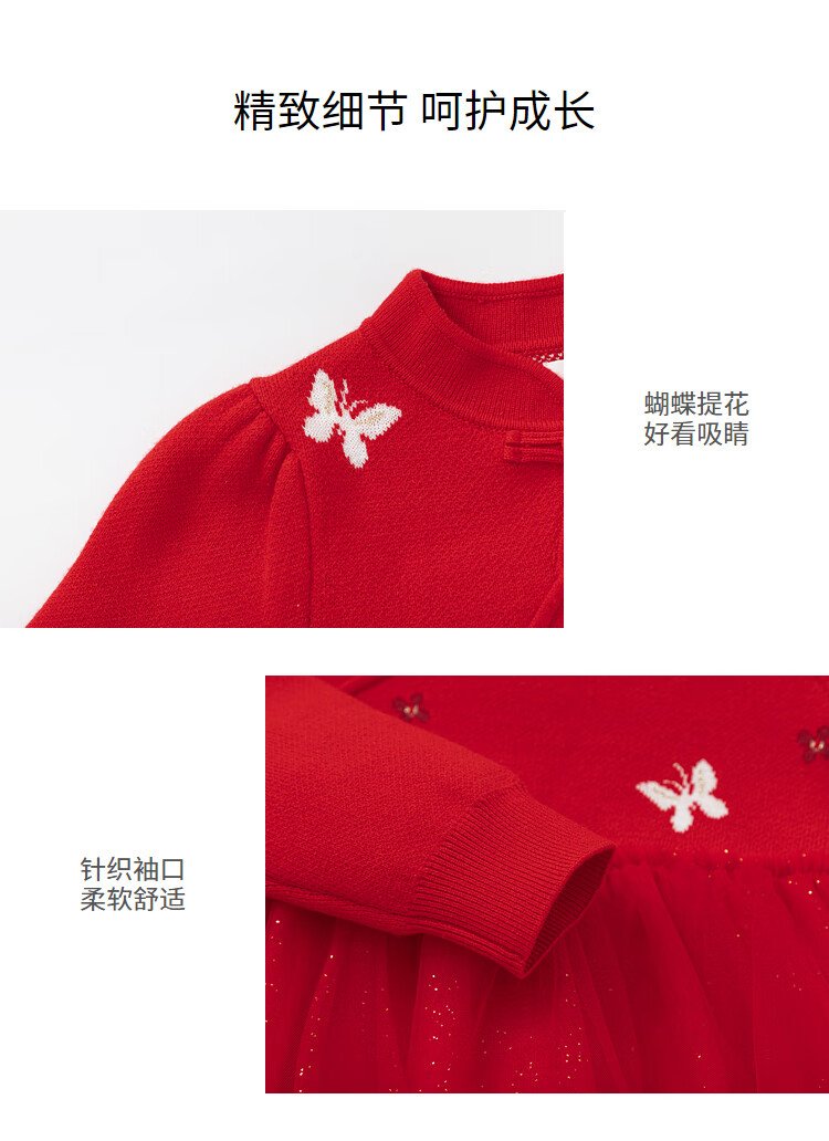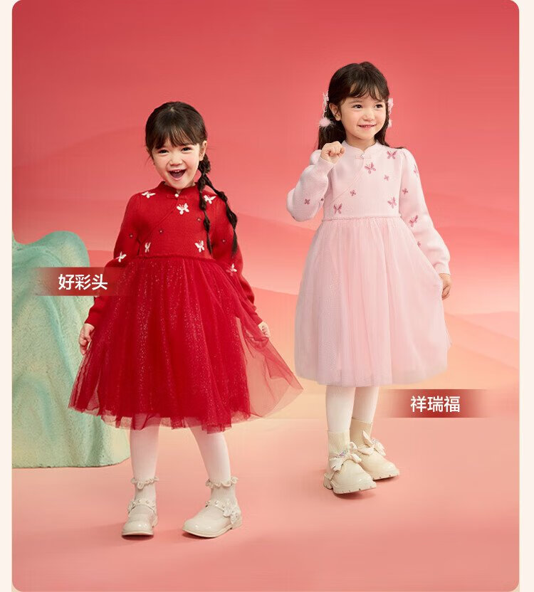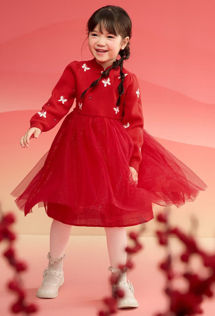 Balabala children's clothing girls dress children's skirt knitted mesh 2025 spring princess dress new year 209125111001