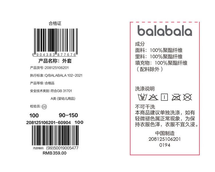 Balabala Boys' Cotton Clothes Girls' Cotton Jackets Baby Cotton Clothes Winter Clothes 2025 New Year's Clothes Plush Jackets 208125106201
