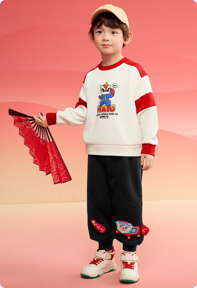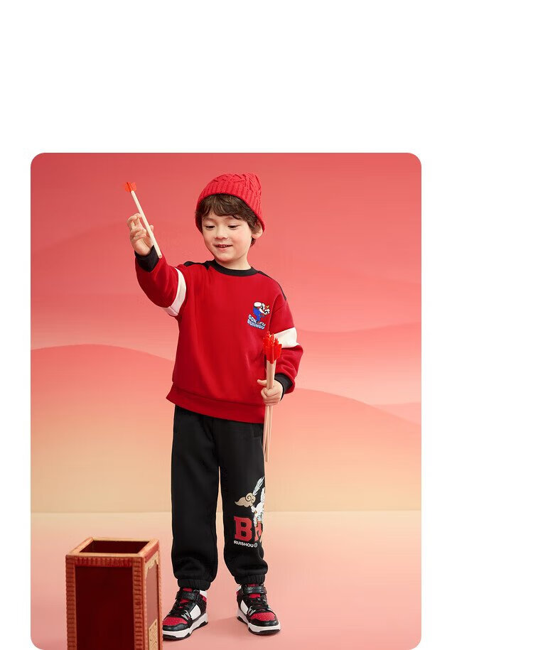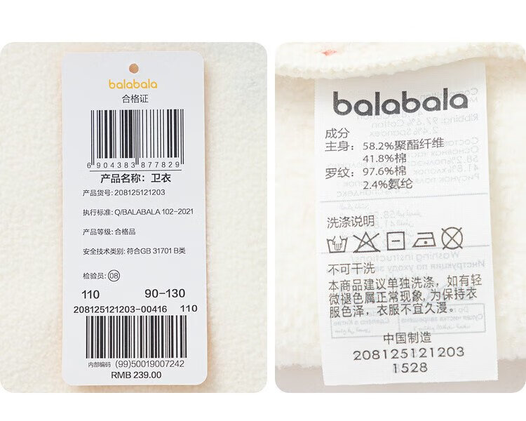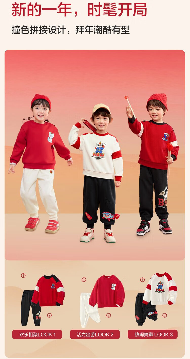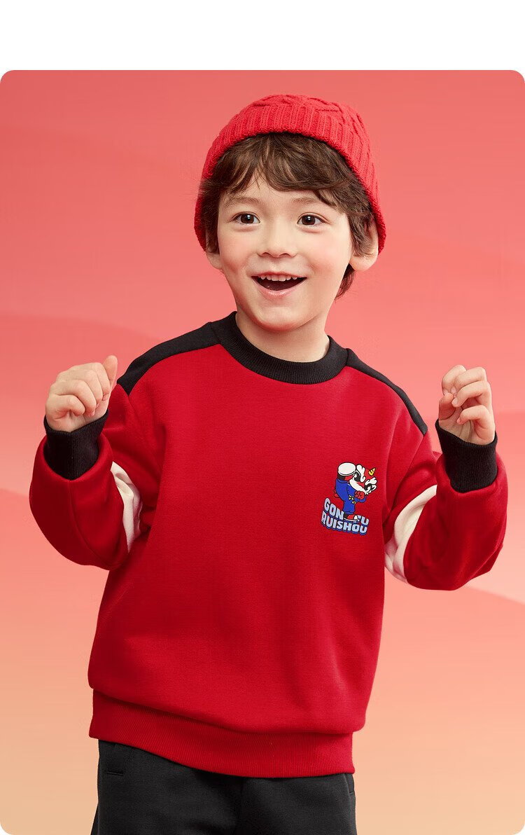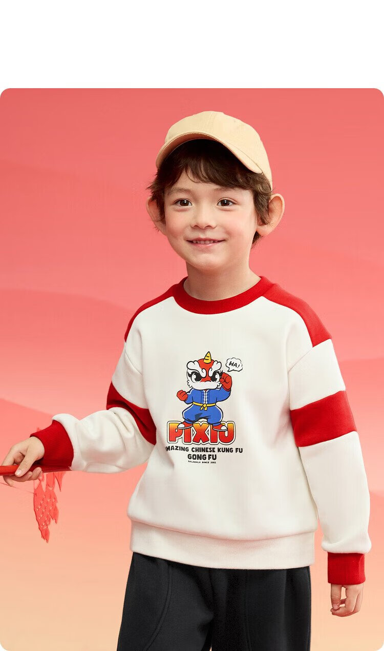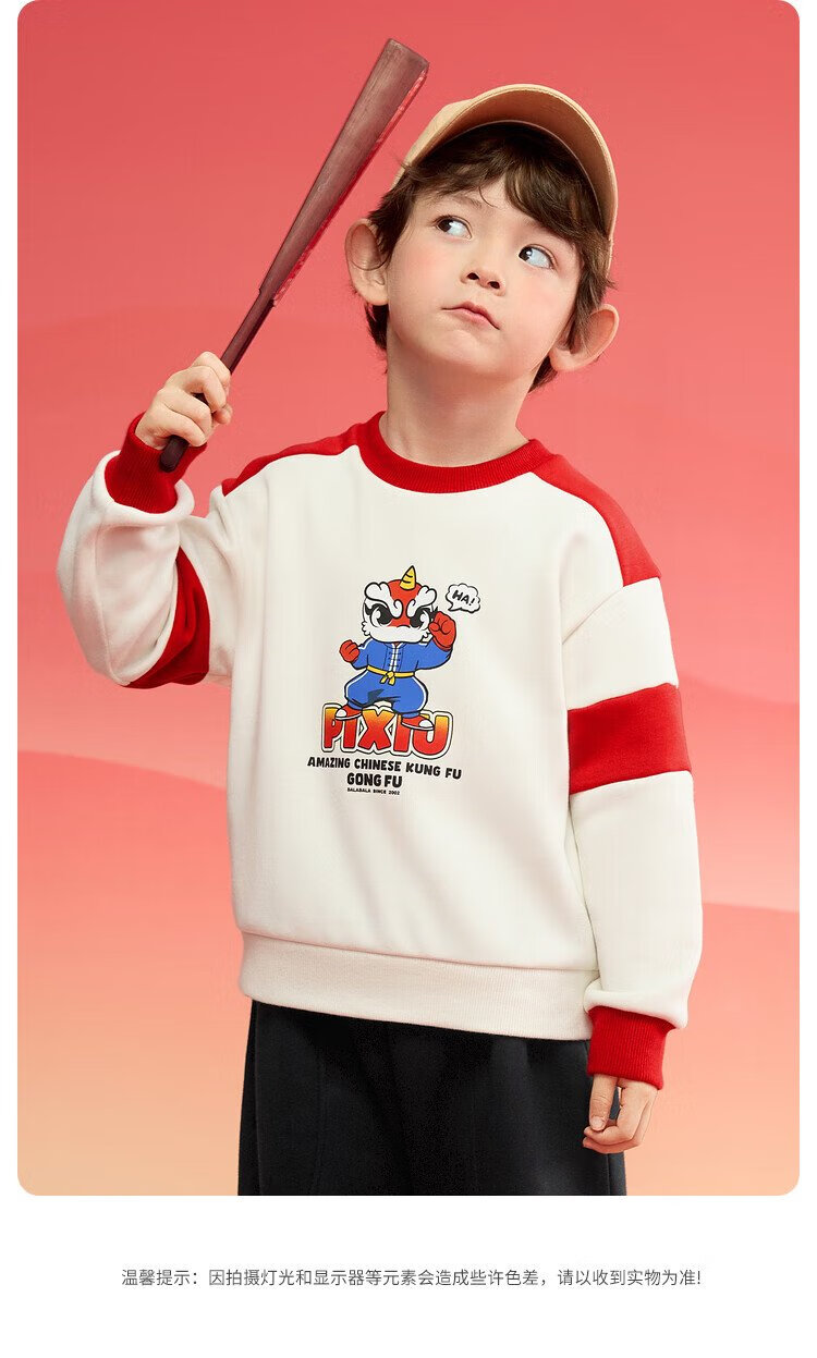 Balabala children's clothing children's sweatshirt girls and boys 2025 spring and autumn loose velvet top color matching trend 208125121203