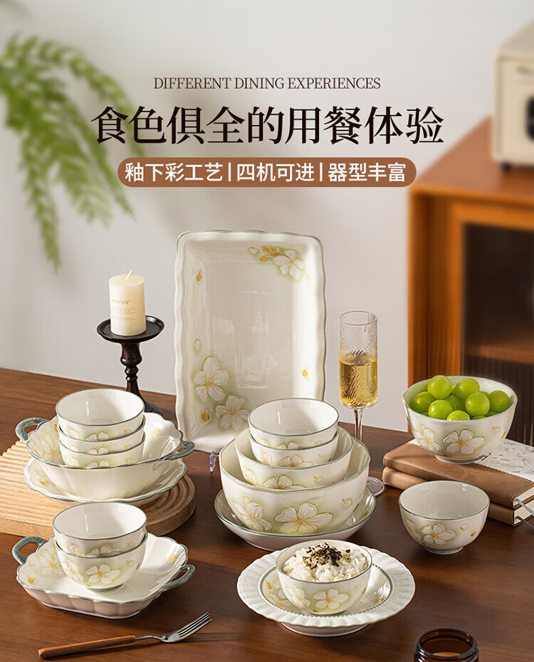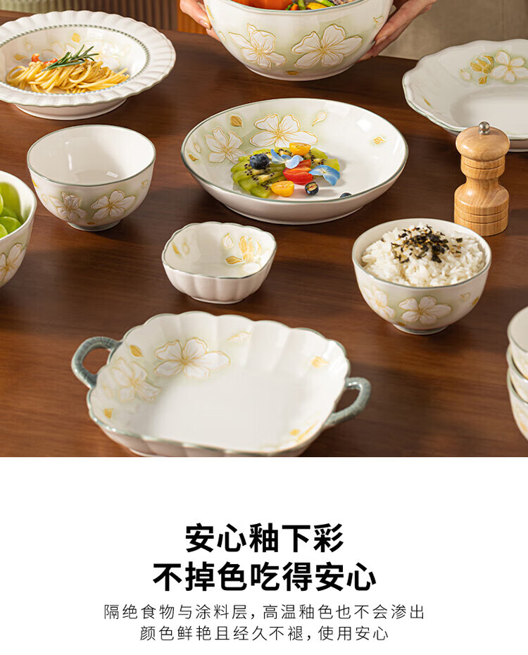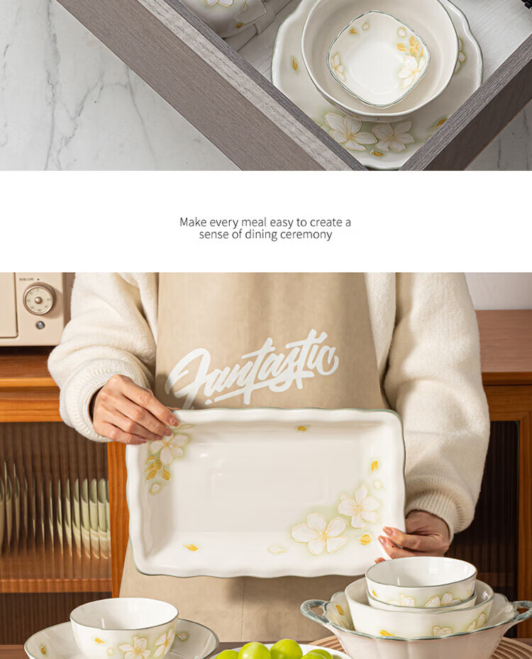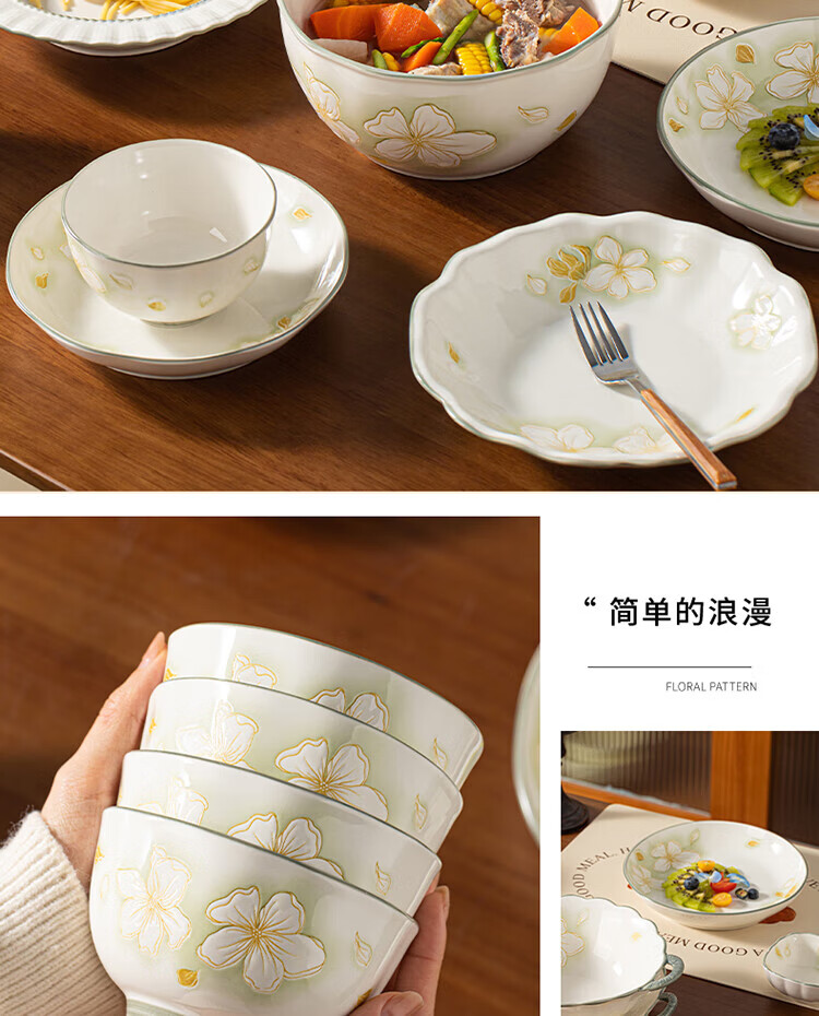 Persson ceramic tableware bowls and plates set home underglaze color bowls, plates, chopsticks and tableware set housewarming gift gold leaf 28-piece set