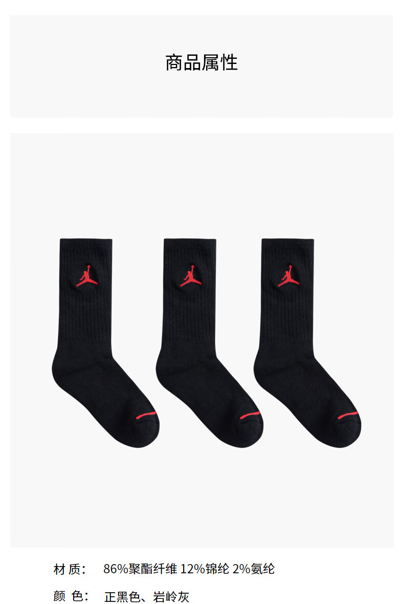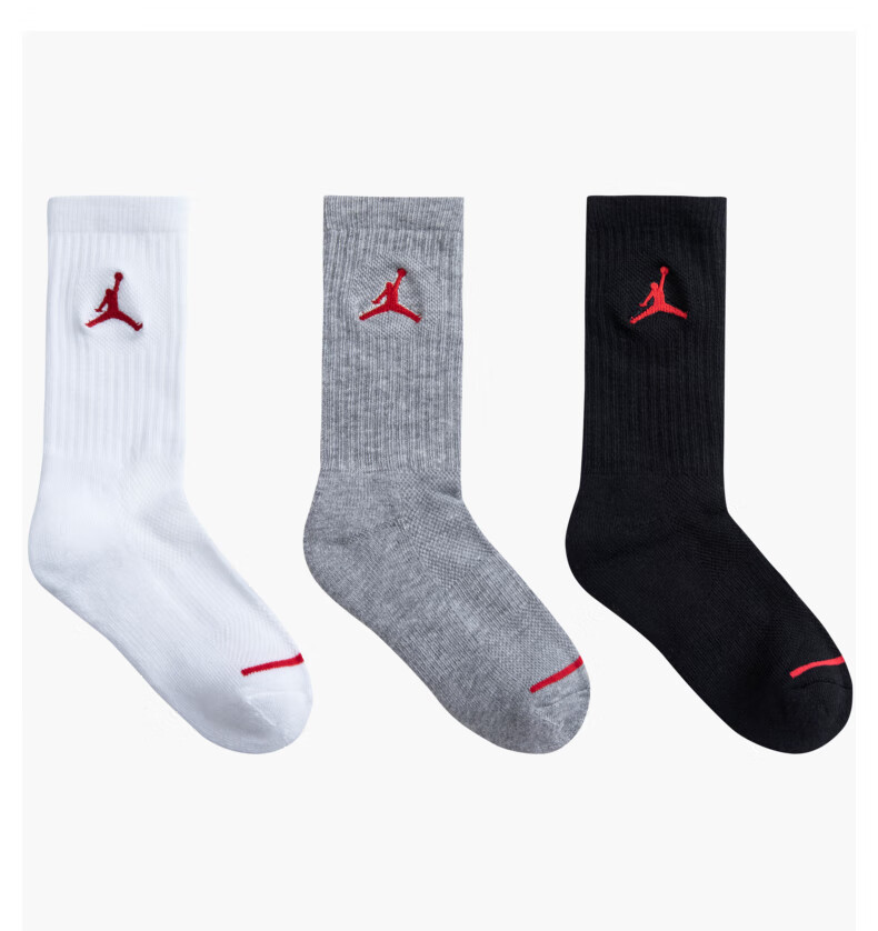 Jordan Nike AJ children's socks 3 pairs of men's and women's mid-length socks 2025 new youth sports socks Yanling Gray