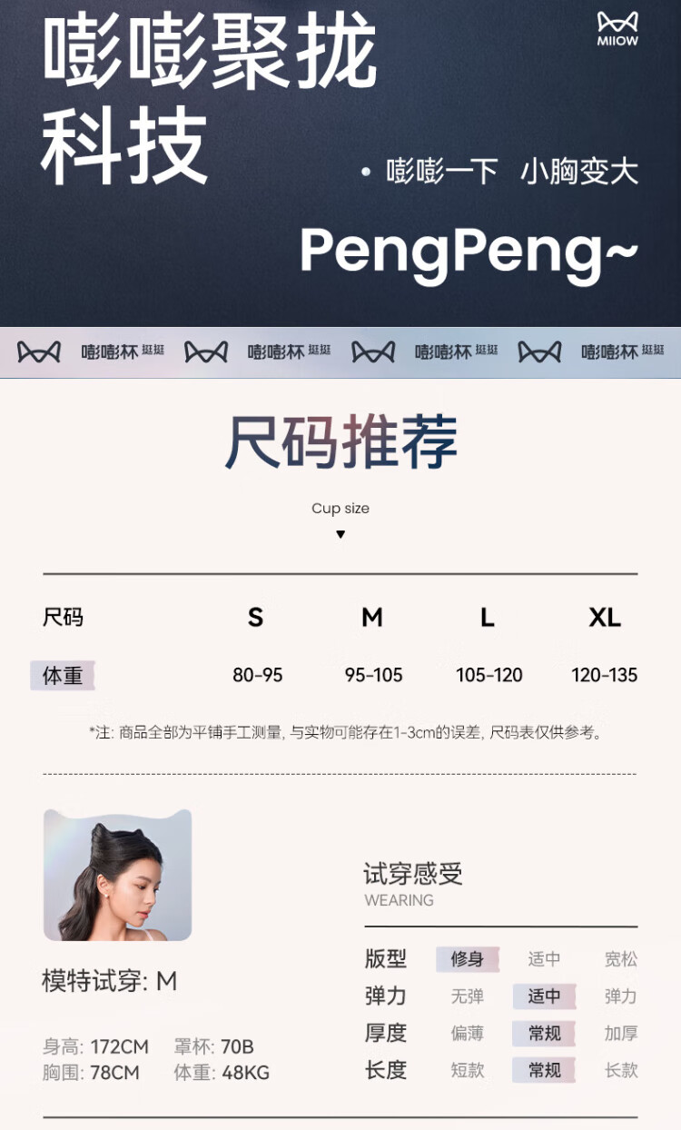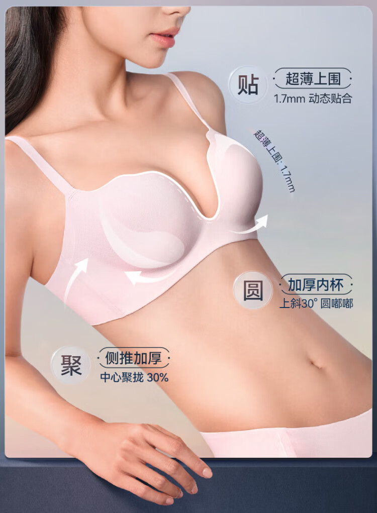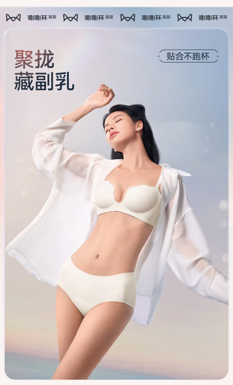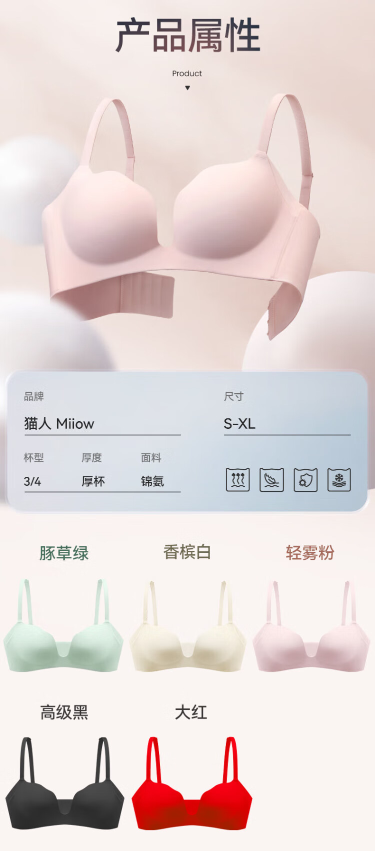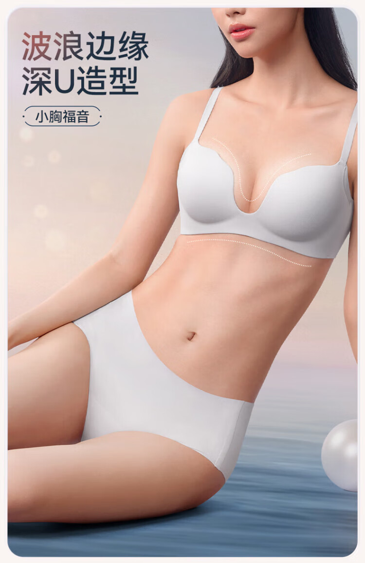 Cat Man (MiiOW) Qi Wei's same style, bang bang, firm cup bra, women's small breasts push up to look bigger, no wires, sexy deep U style bra