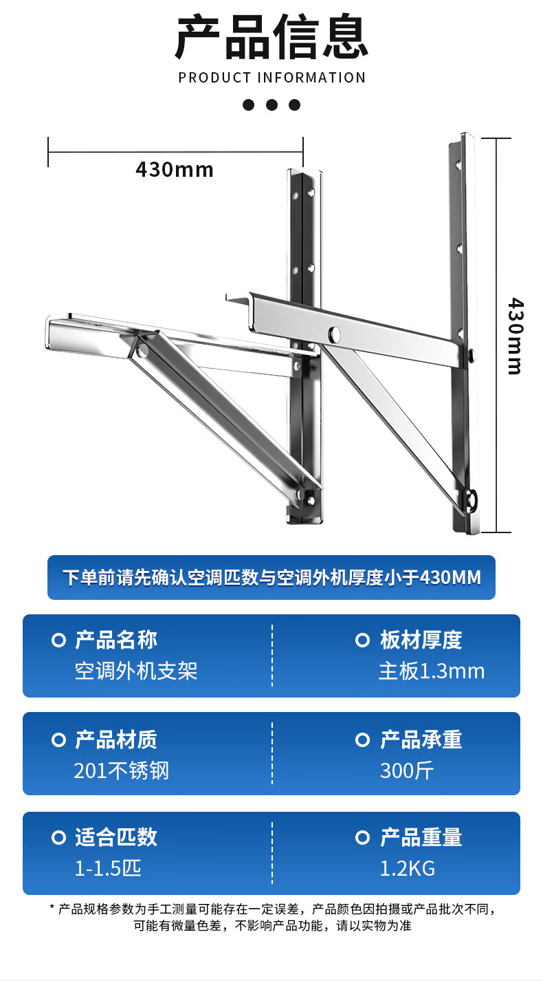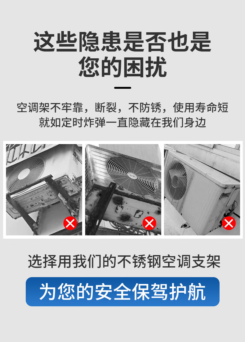 PURPAVWINNER stainless steel air conditioner outdoor unit bracket is suitable for Midea Haier Oaks Hualing TCL Hisense Gree Xiaomi hanging air conditioner bracket 1P-1.5 HP heating and cooling air conditioner hanging rack
