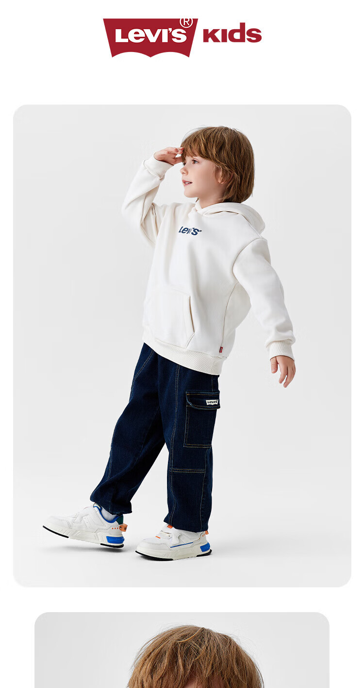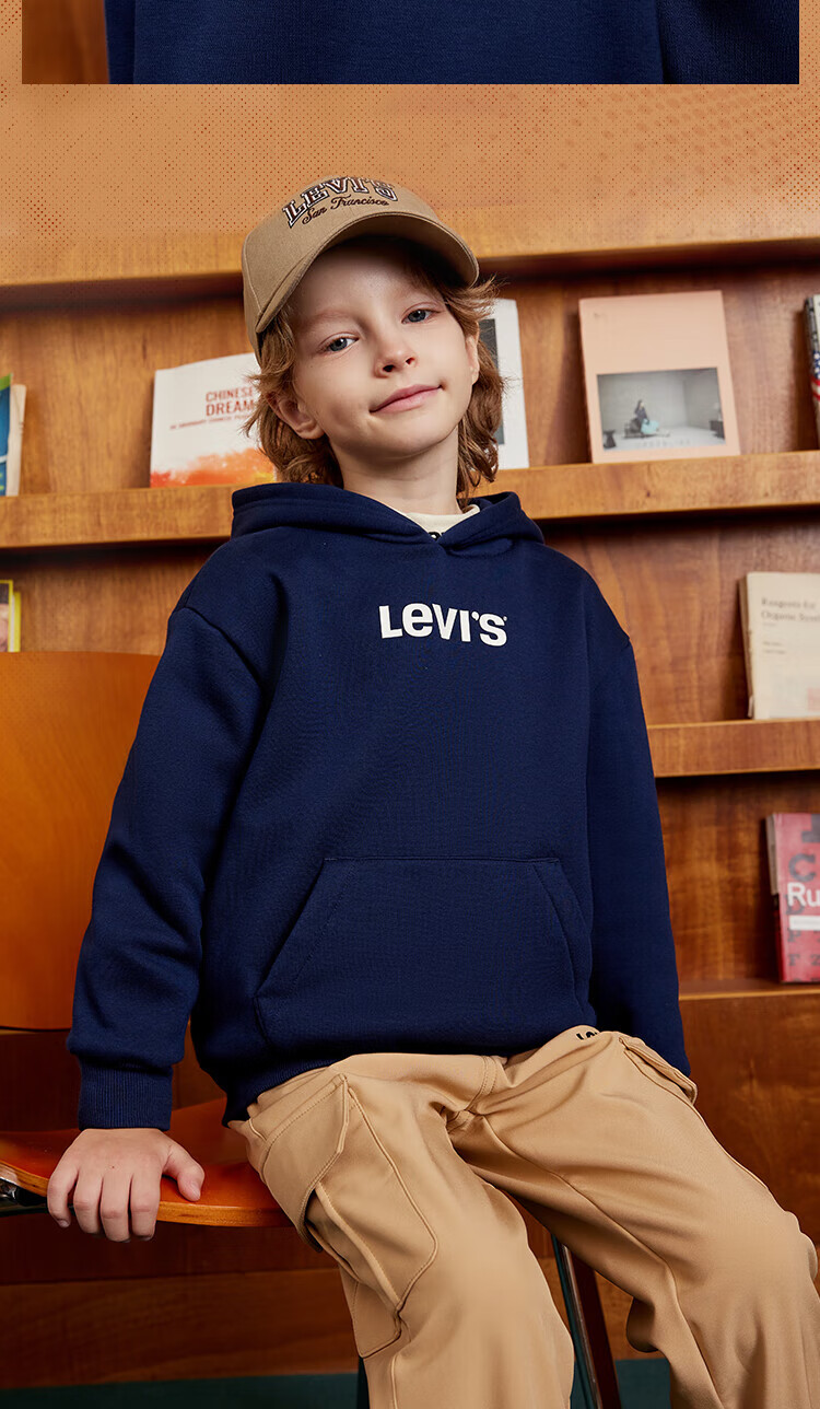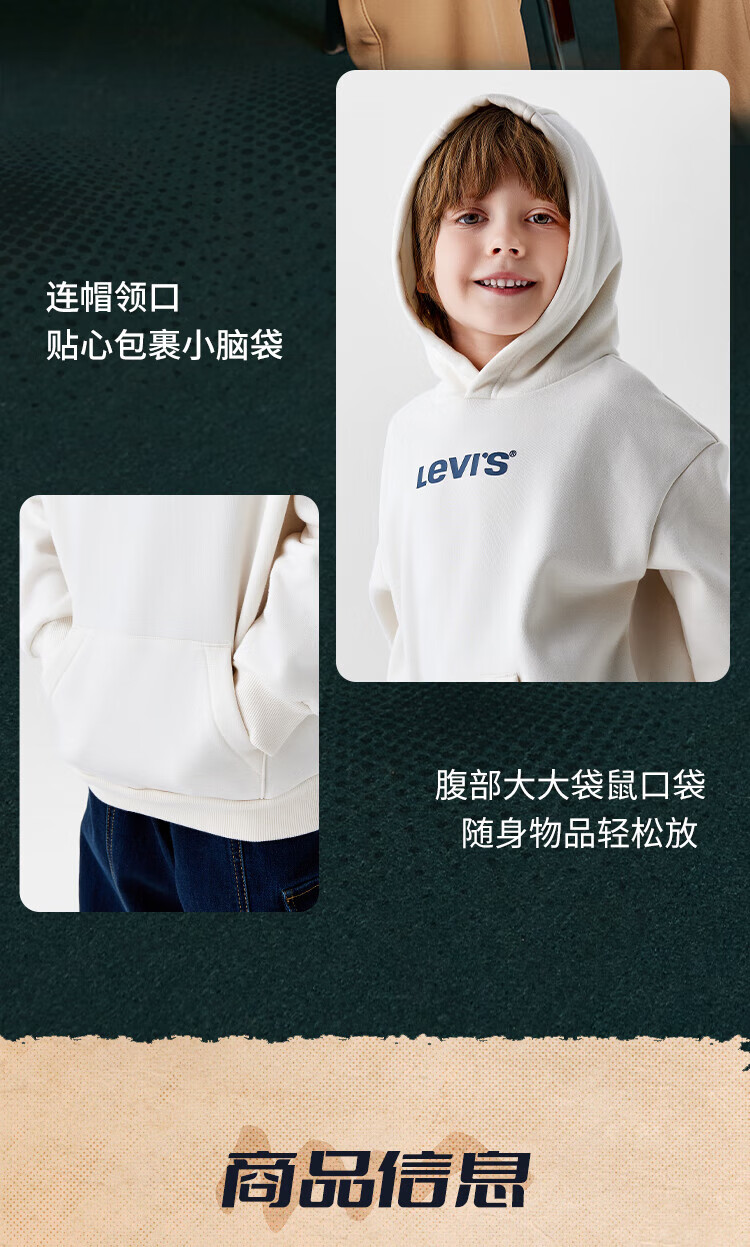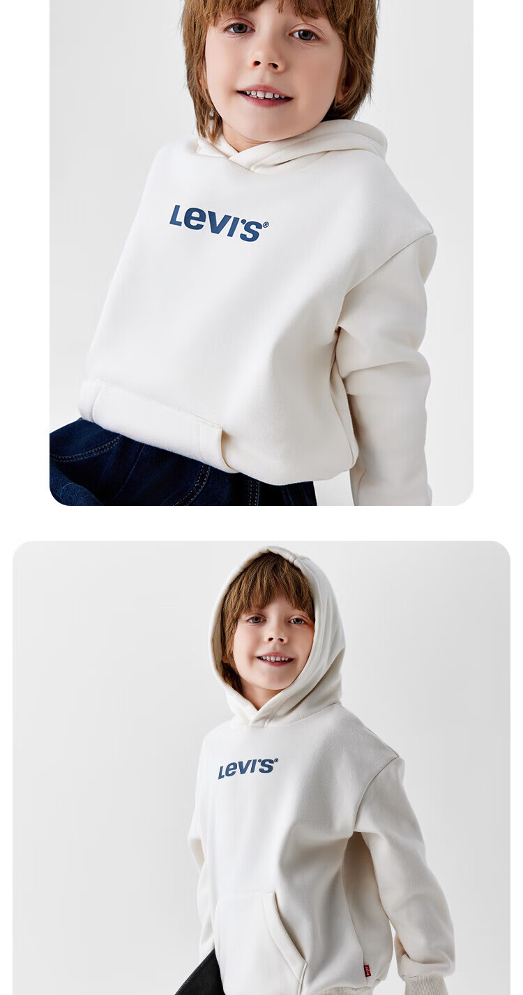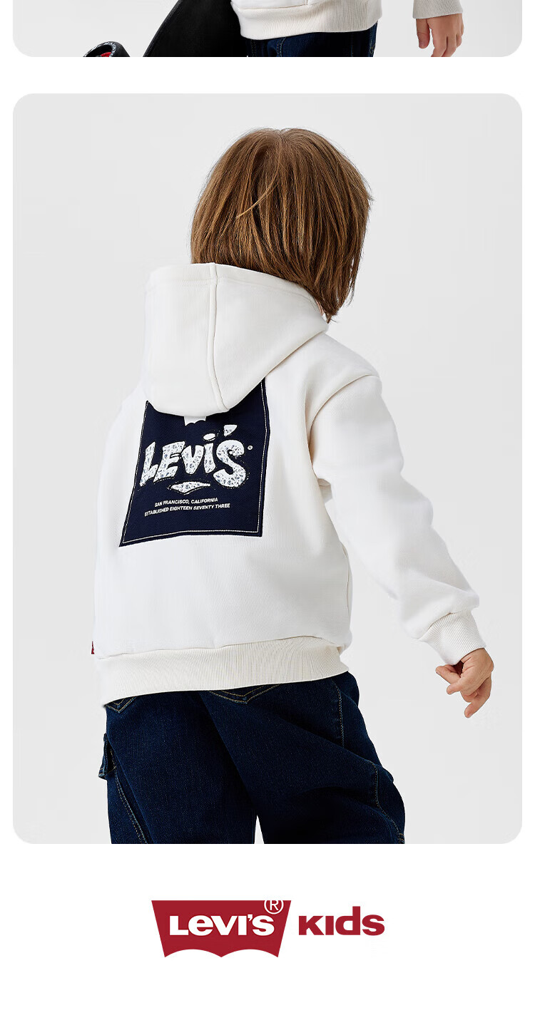 Levi's Levi's children's clothing boys' hooded sweatshirt winter new children's fleece top candy white 150/72