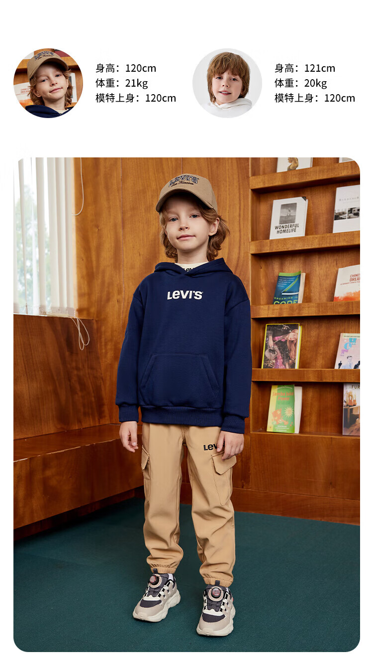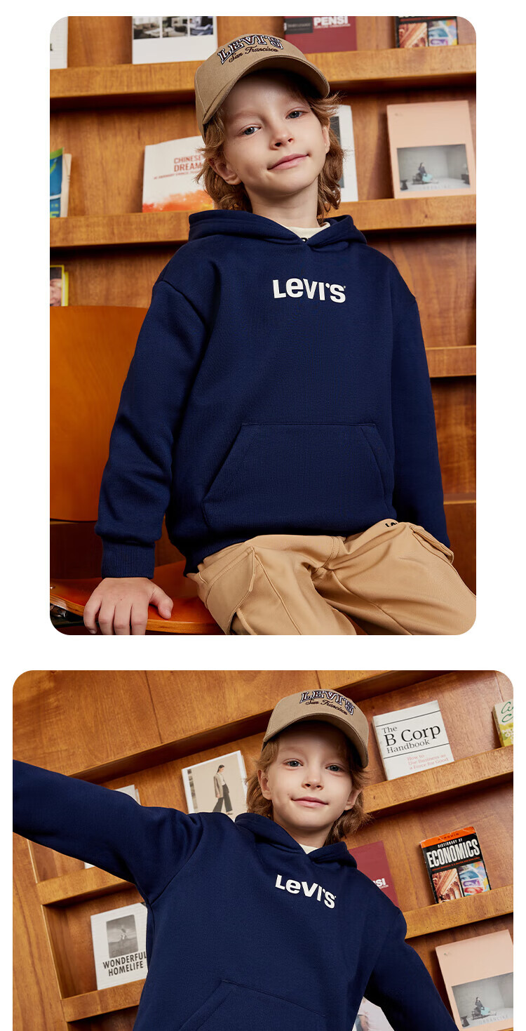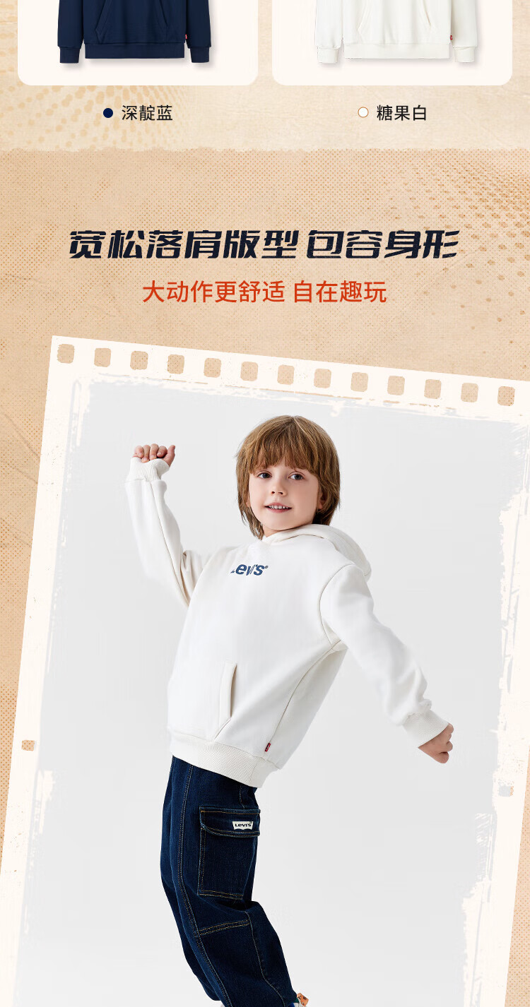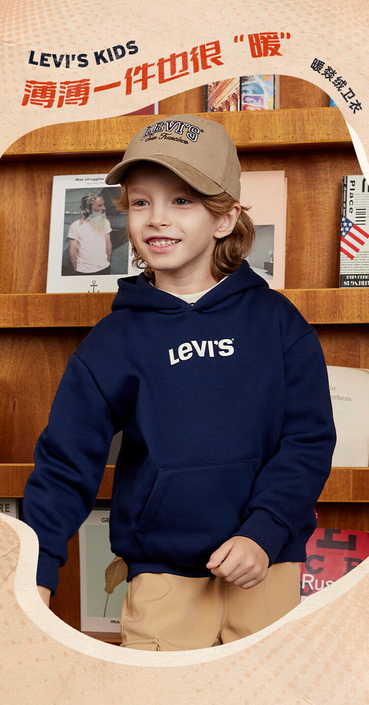 Levi's Levi's children's clothing boys' hooded sweatshirt winter new children's fleece top candy white 150/72