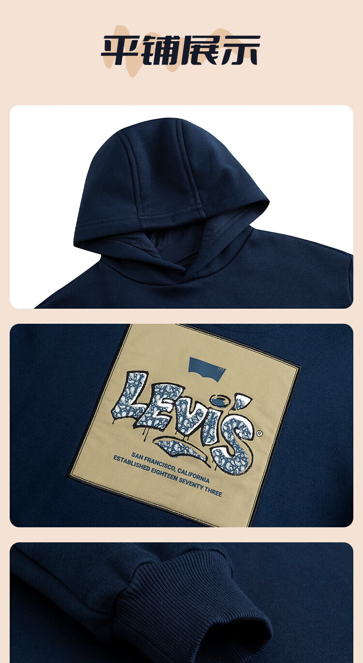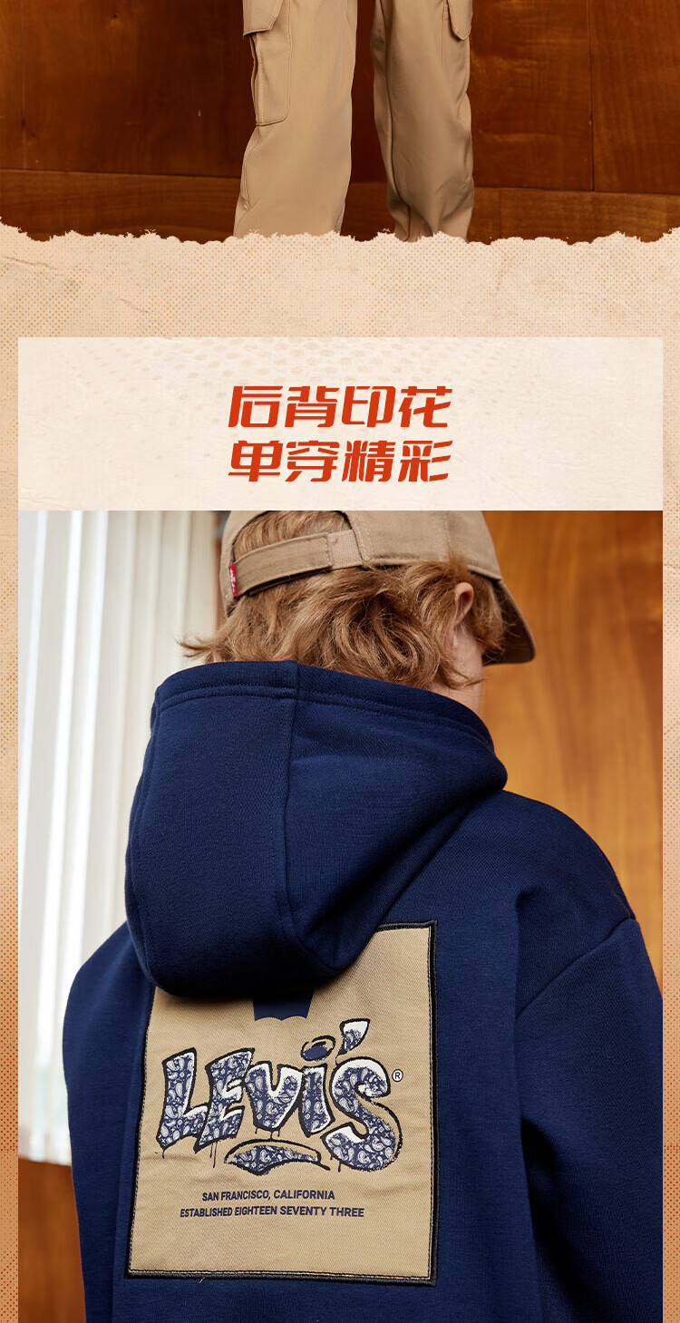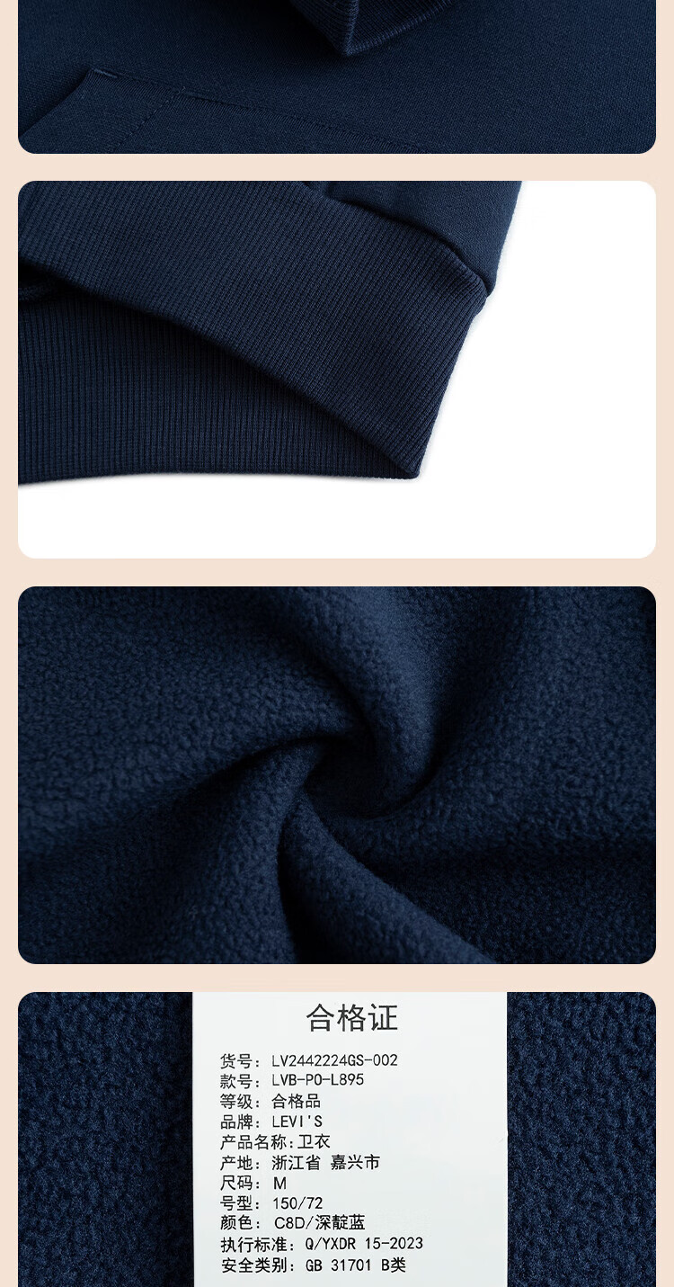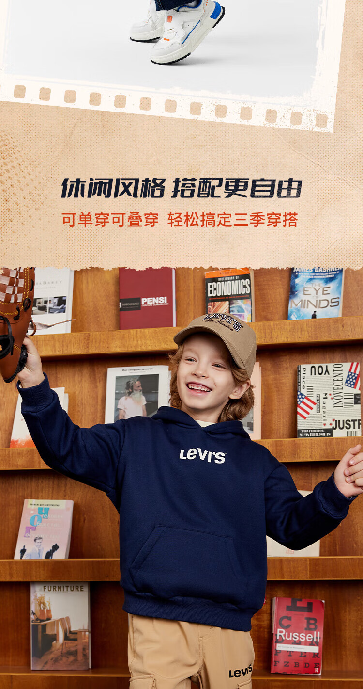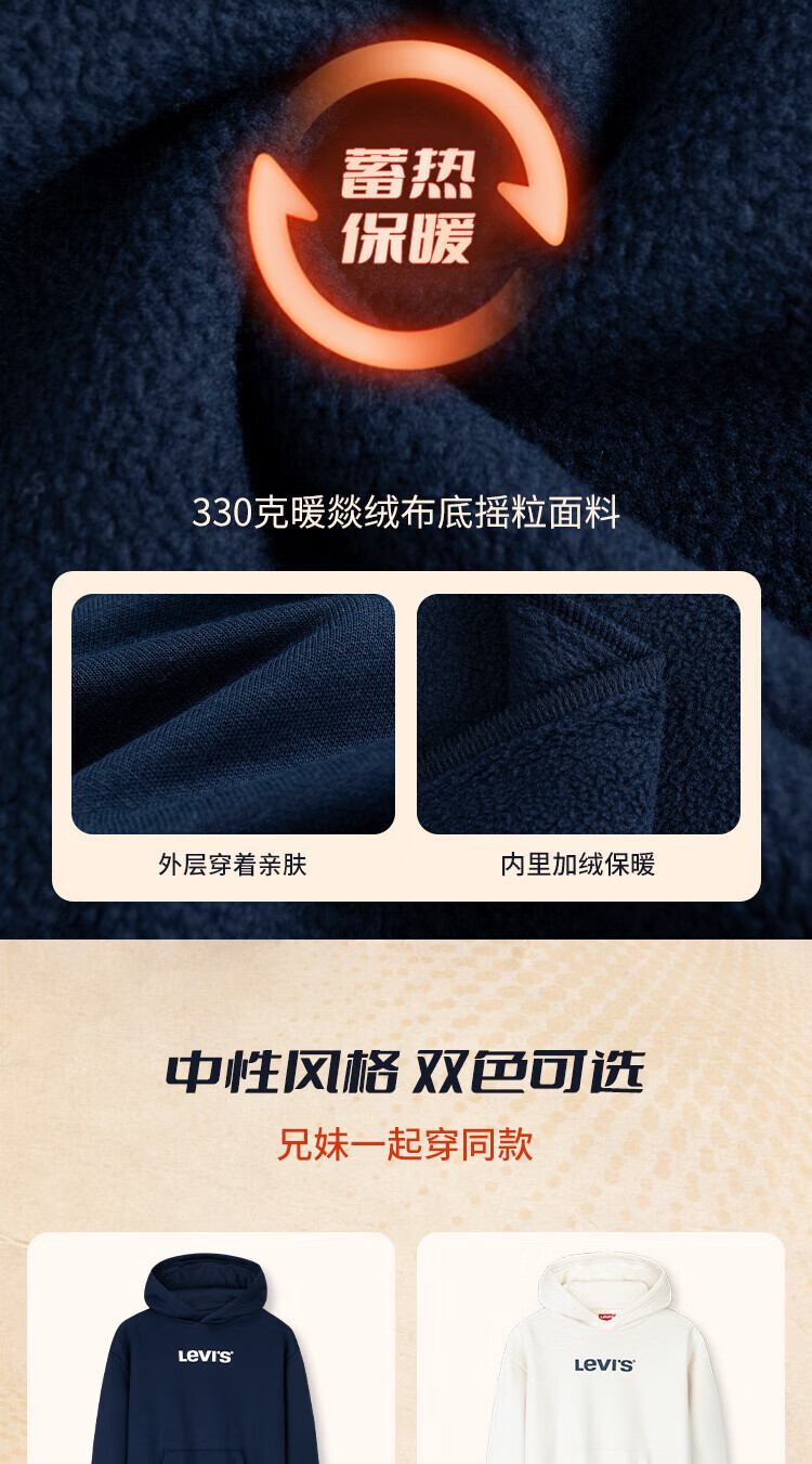 Levi's Levi's children's clothing boys' hooded sweatshirt winter new children's fleece top candy white 150/72