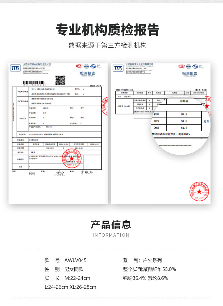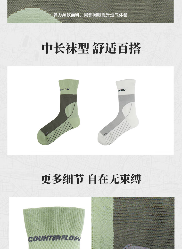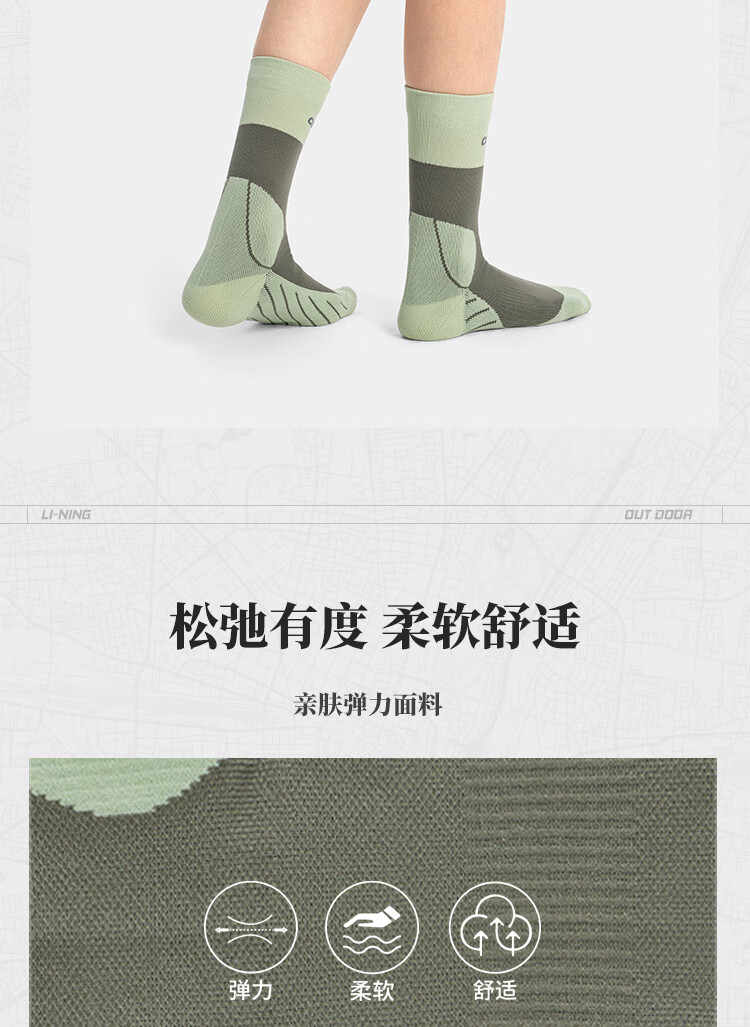 Li Ning Outdoor CF Traceable Socks Men's and Women's 25 Autumn and Winter Mid-length Socks (No returns or exchanges after opening) AWLV045