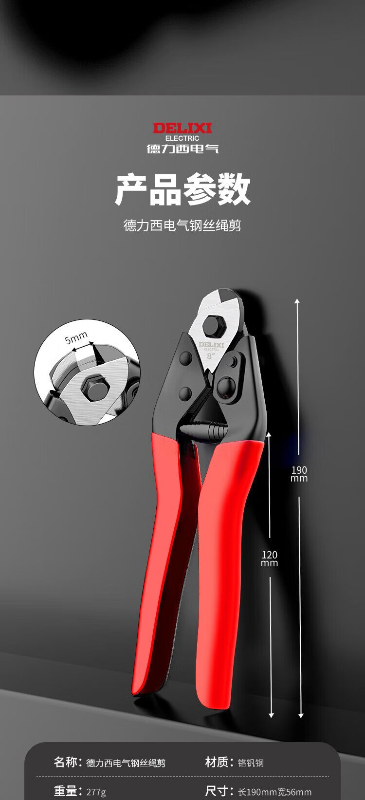 DELIXI ELECTRIC wire rope scissors multifunctional wire cutters steel wire industrial grade scissors iron wire wire scissors forged wire rope scissors