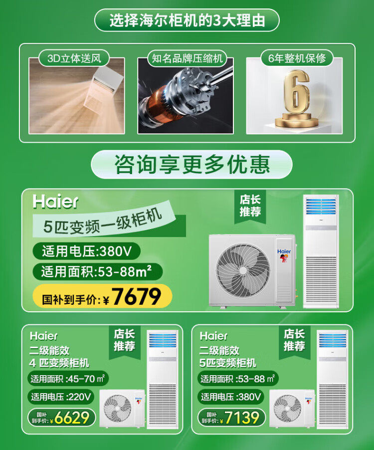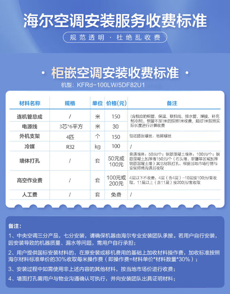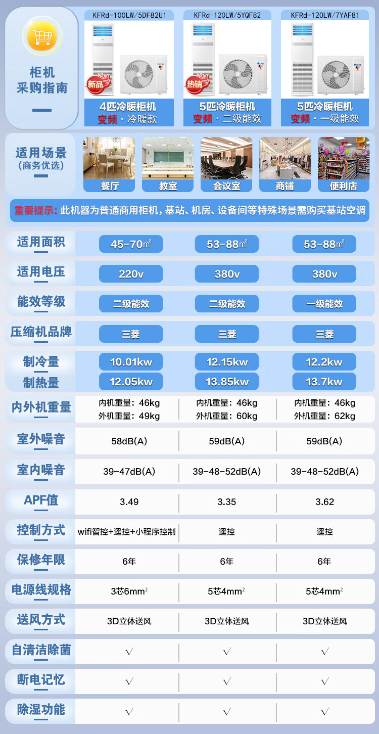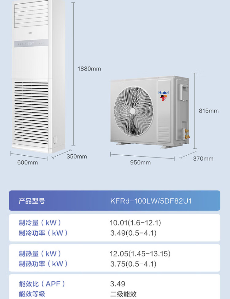 Haier central air conditioning 4 HP vertical cabinet machine secondary energy efficiency 4P cooling and heating 220V large living room office KFRd-100LW/5DF82U1 package 4 meters copper pipe national subsidy