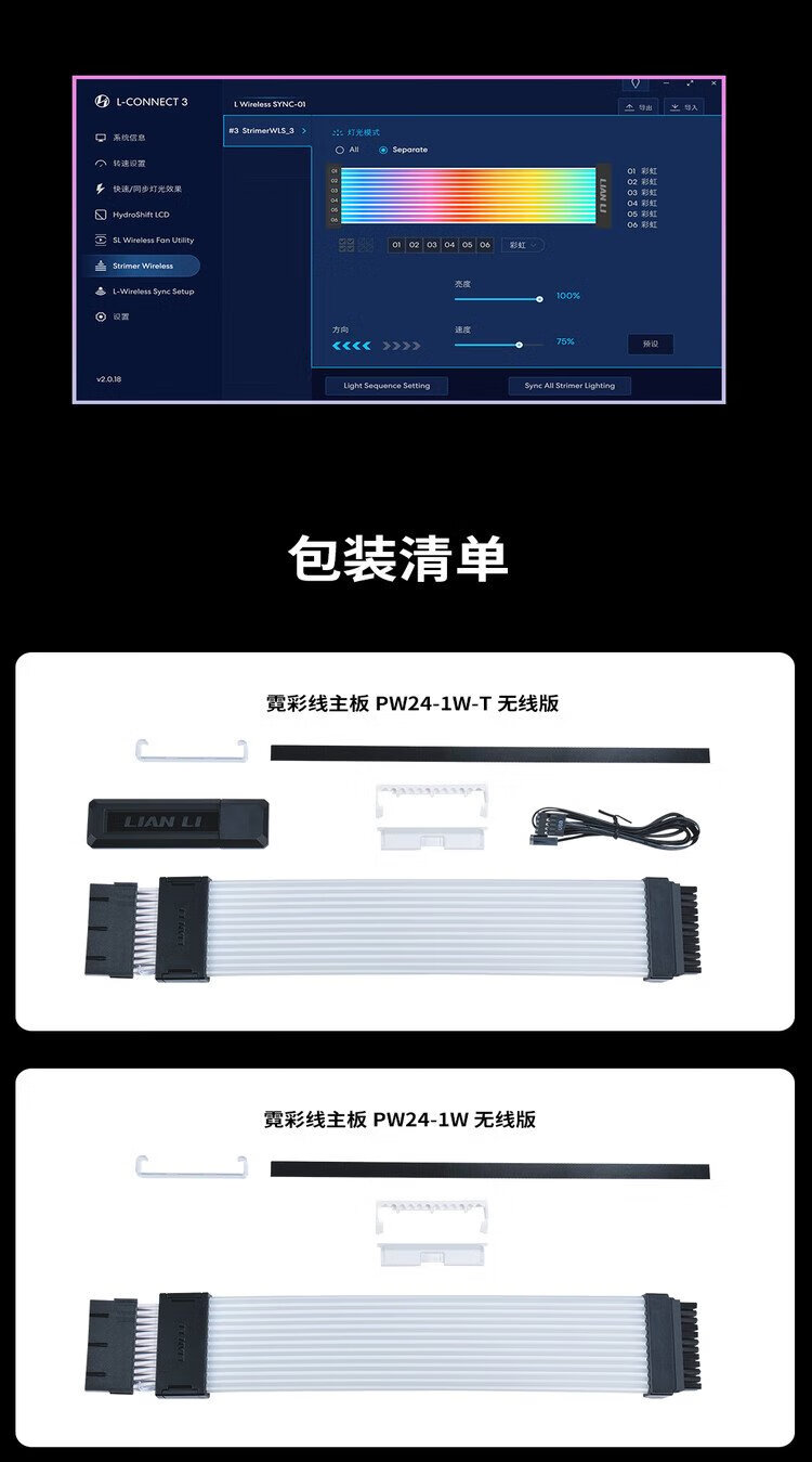 LIANLI Lianli Strimer Yicai Neon Color Line Fourth Generation Wireless Version Motherboard 24-pin Includes Transmitter Power Extension Cable RGB Cable