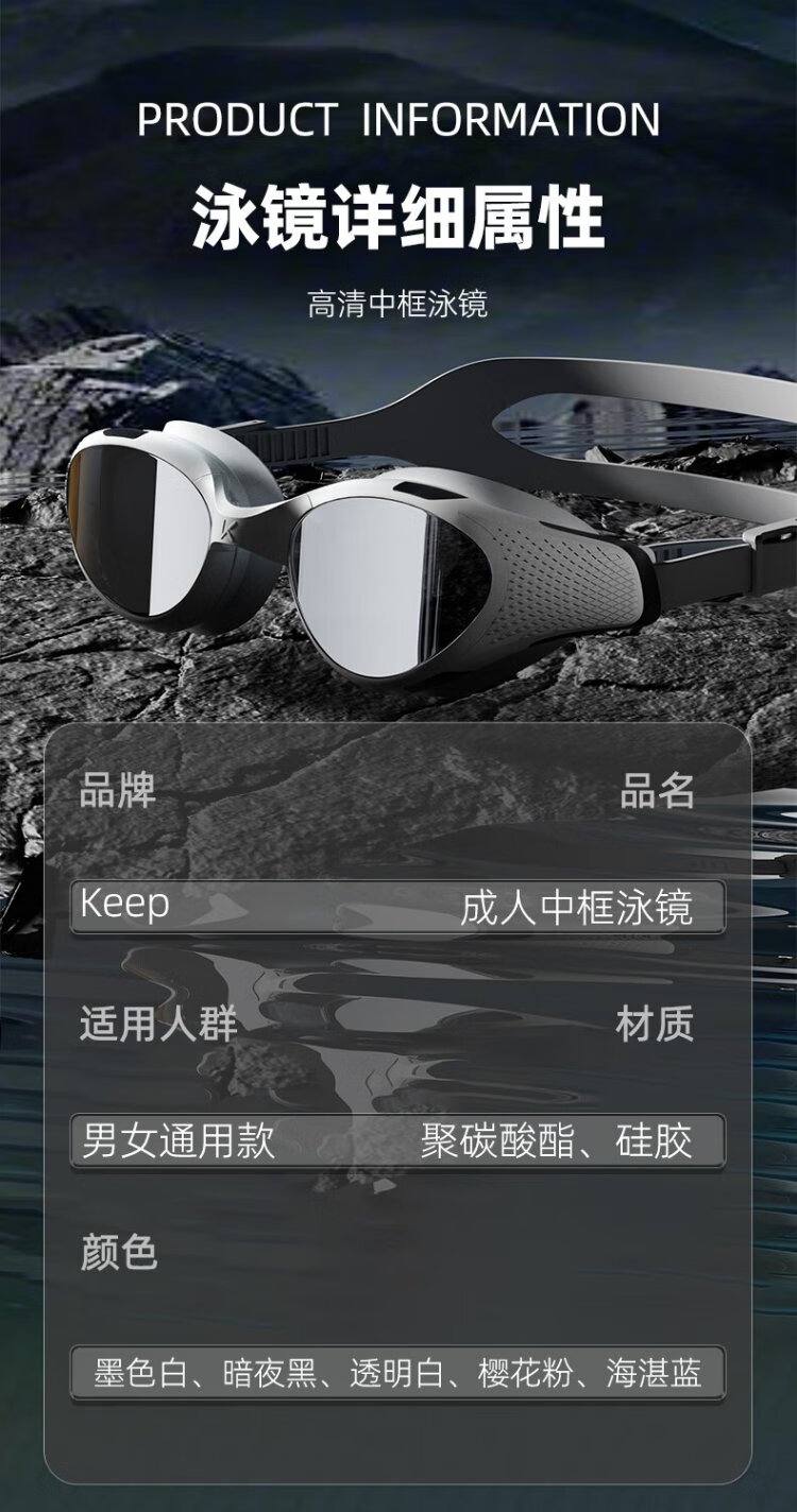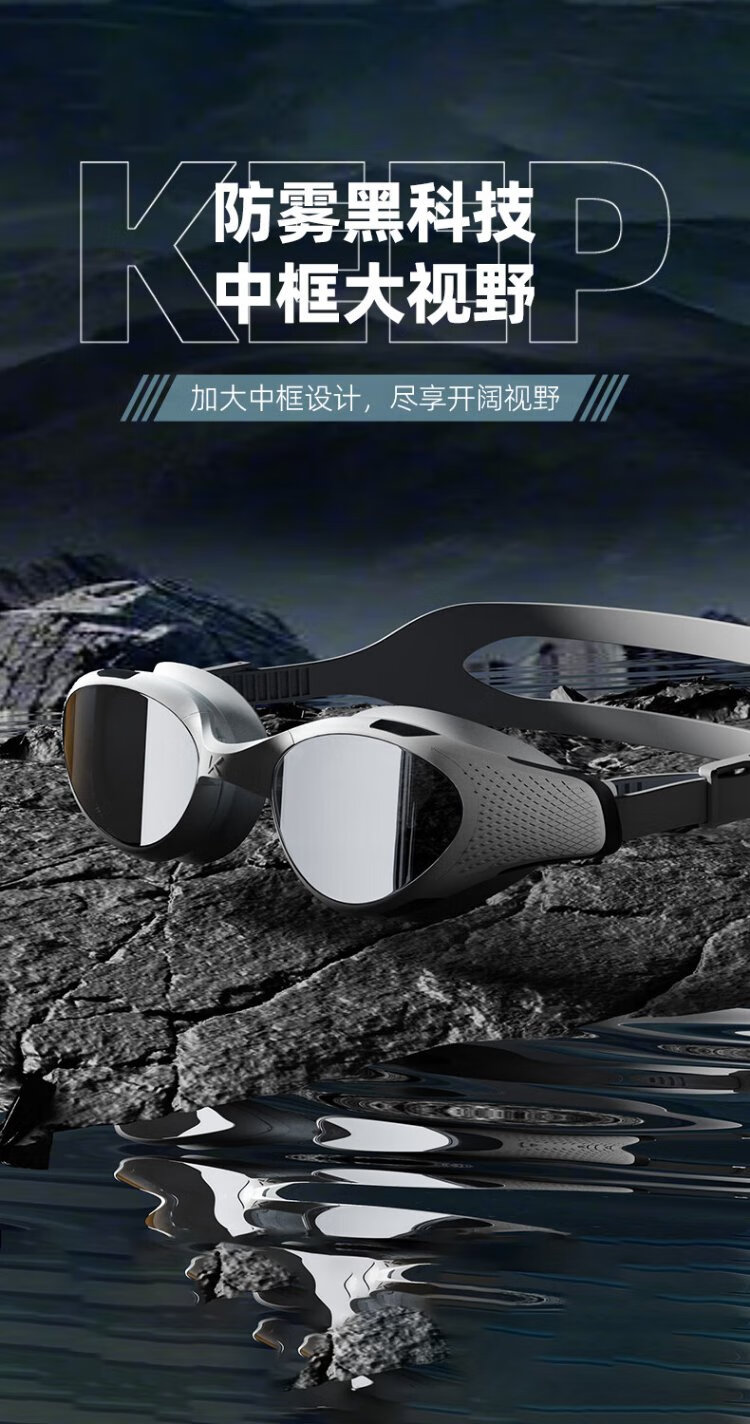 Keep swimming goggles waterproof and anti-fog for men and women HD swimming goggles flat swimming goggles swimming equipment black and white