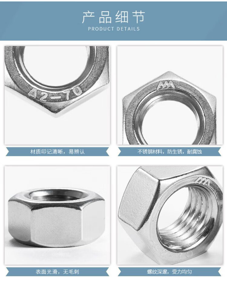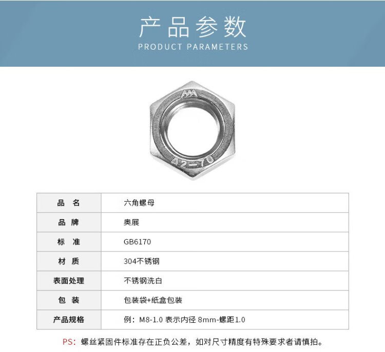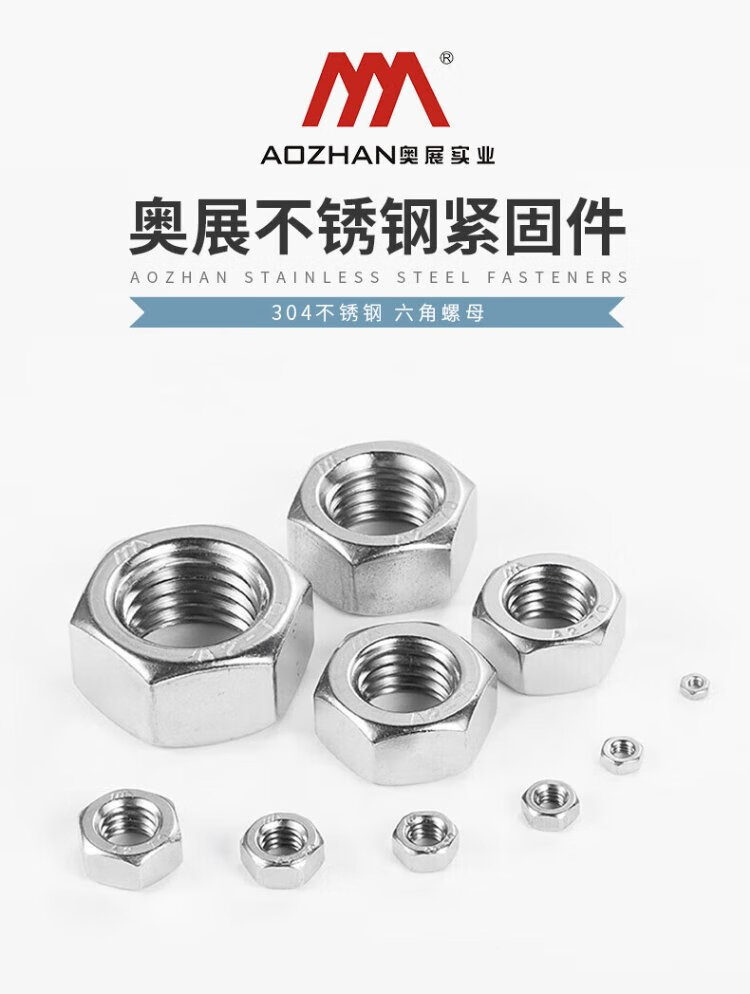 AOZHAN Industrial (AOZHAN) 304 stainless steel hexagonal nut M4-0.7 GB6170-2000 50 pieces