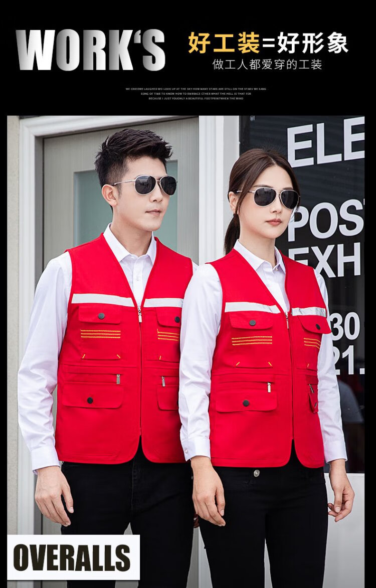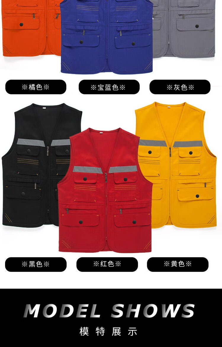 Longwei United Reflective Vest Multi-Pocket Photography Vest Decoration Construction Labor Insurance Engineering Clothing Takeaway Driving Workwear Vest Waistband Supports Customized Logo