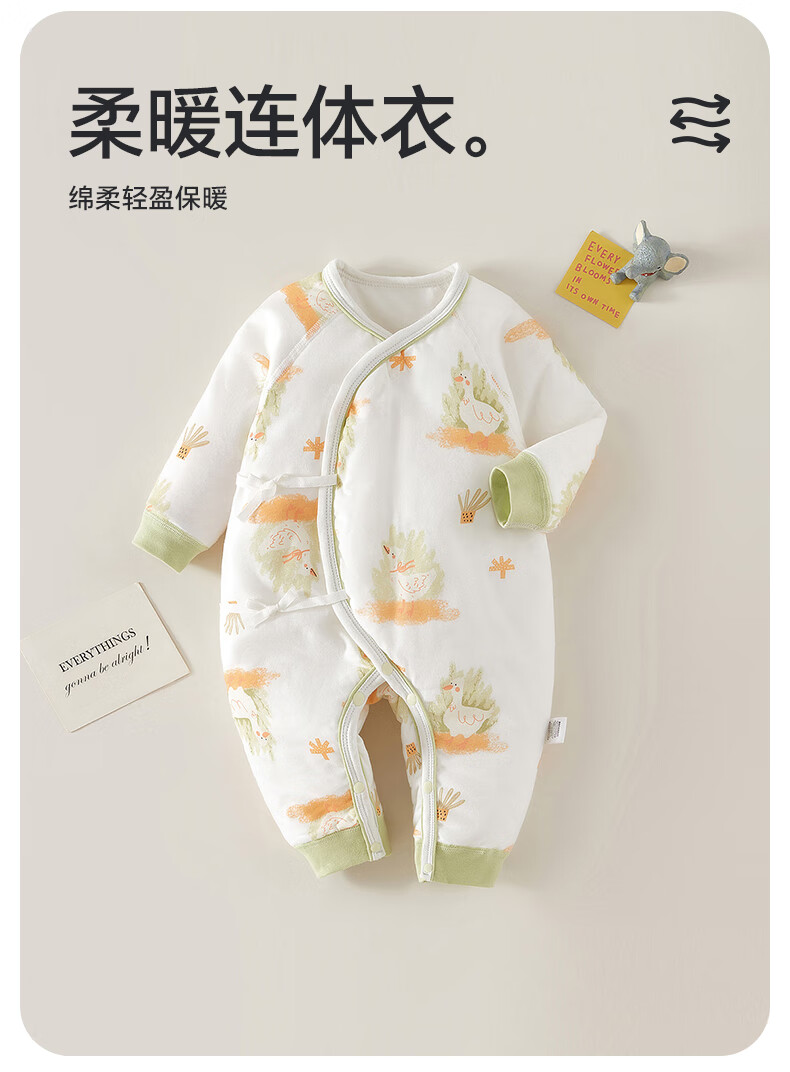 Babyprints Newborn Jumpsuit Autumn and Winter Cotton Warm Baby Clothes Thickened Baby Romper Pink Goose 52