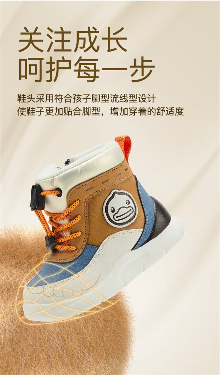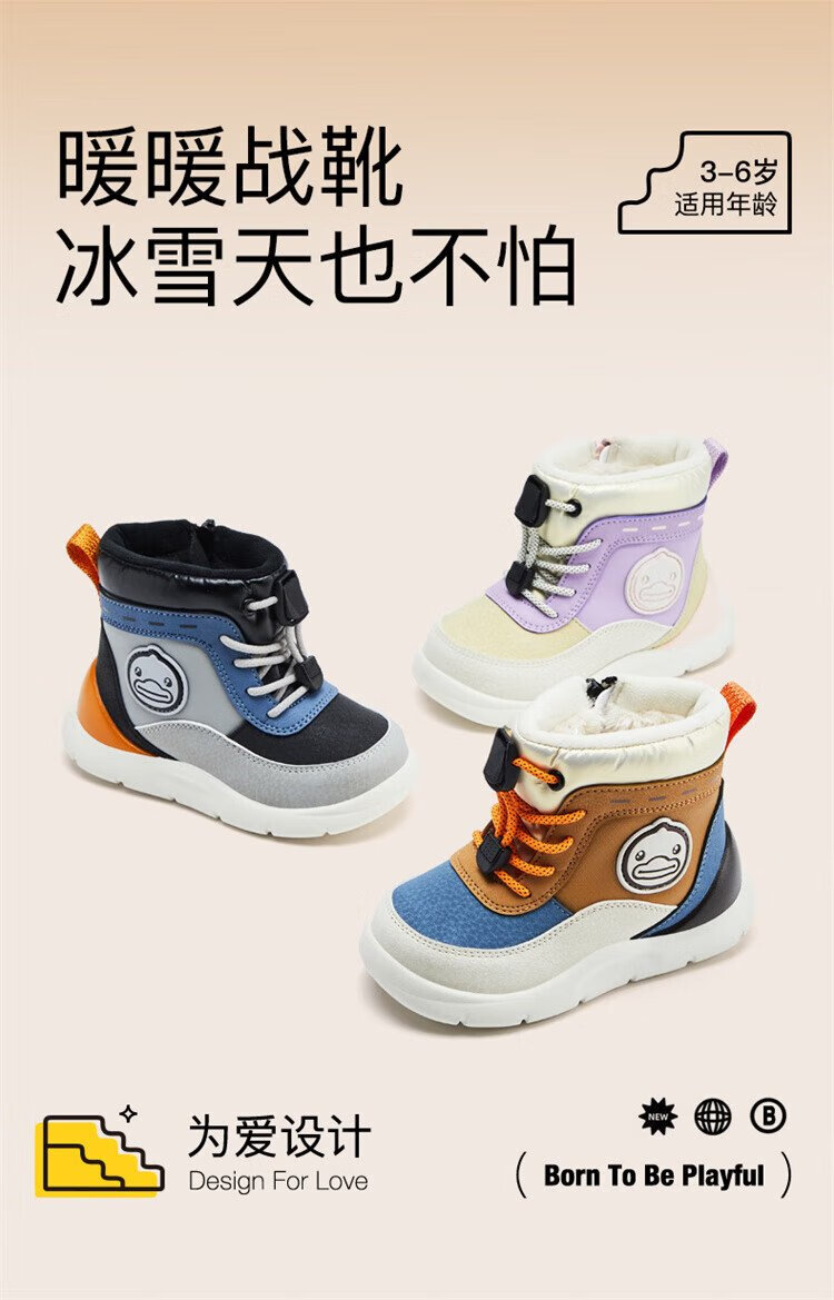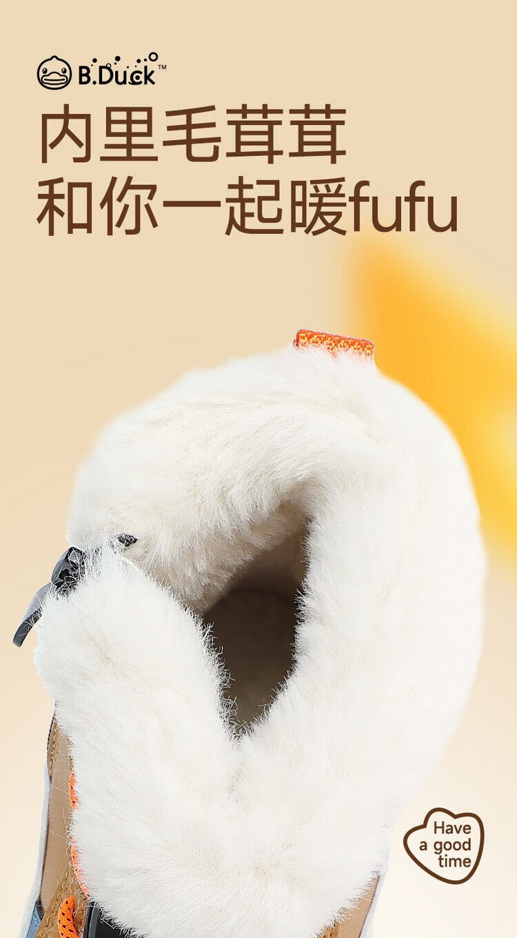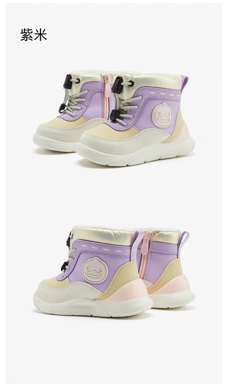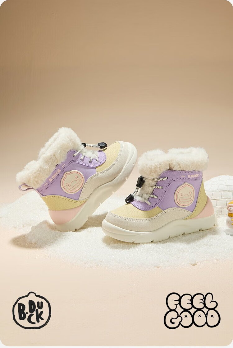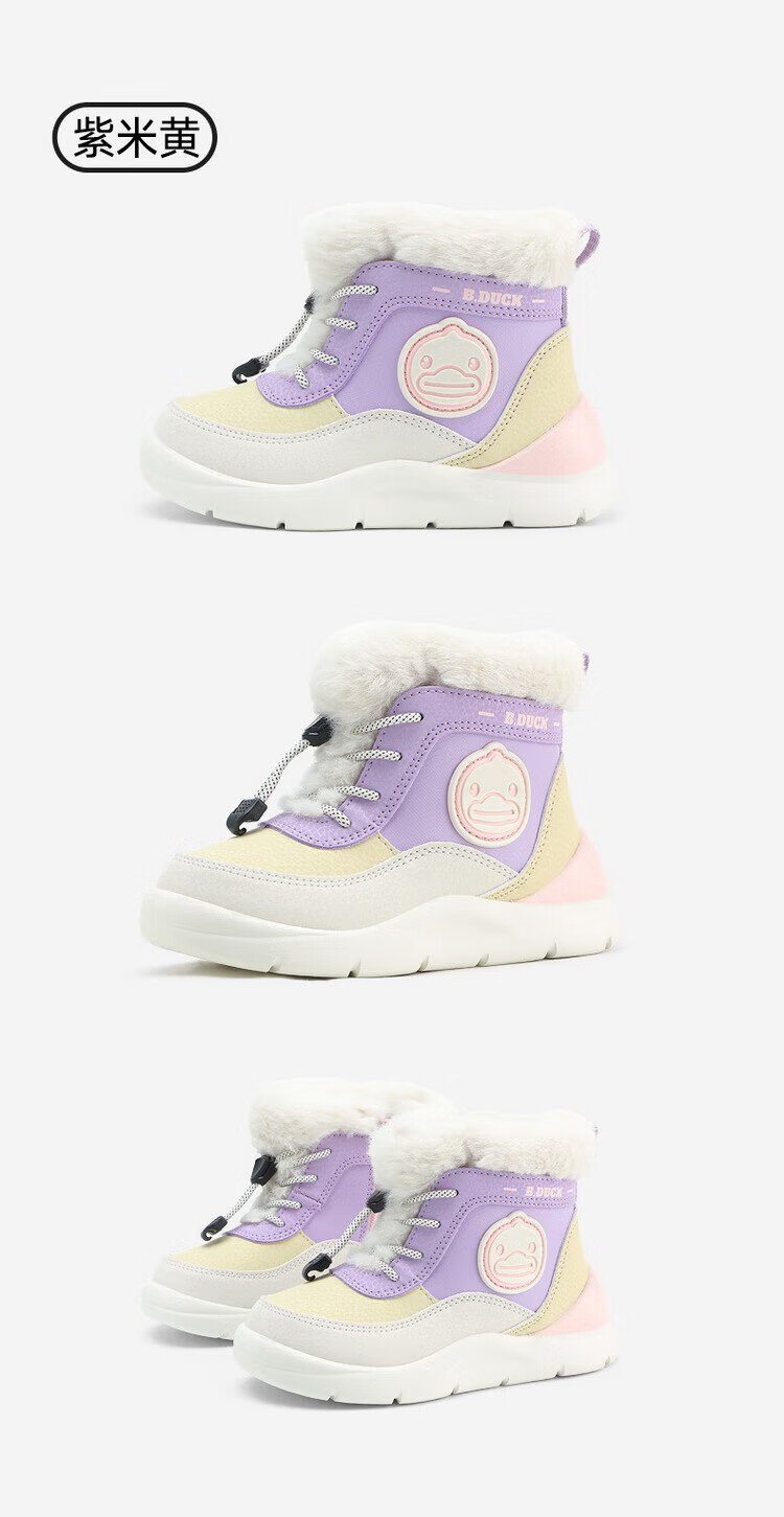 B.Duck little yellow duck children's shoes children's large cotton boots winter plush comfortable and warm snow boots for boys and girls 6873 purple beige 26