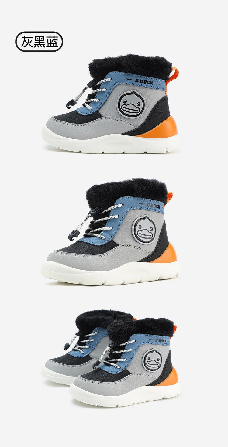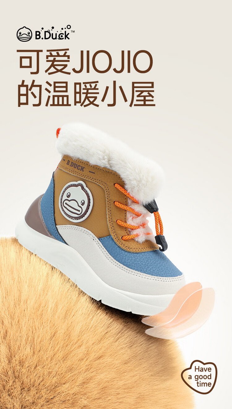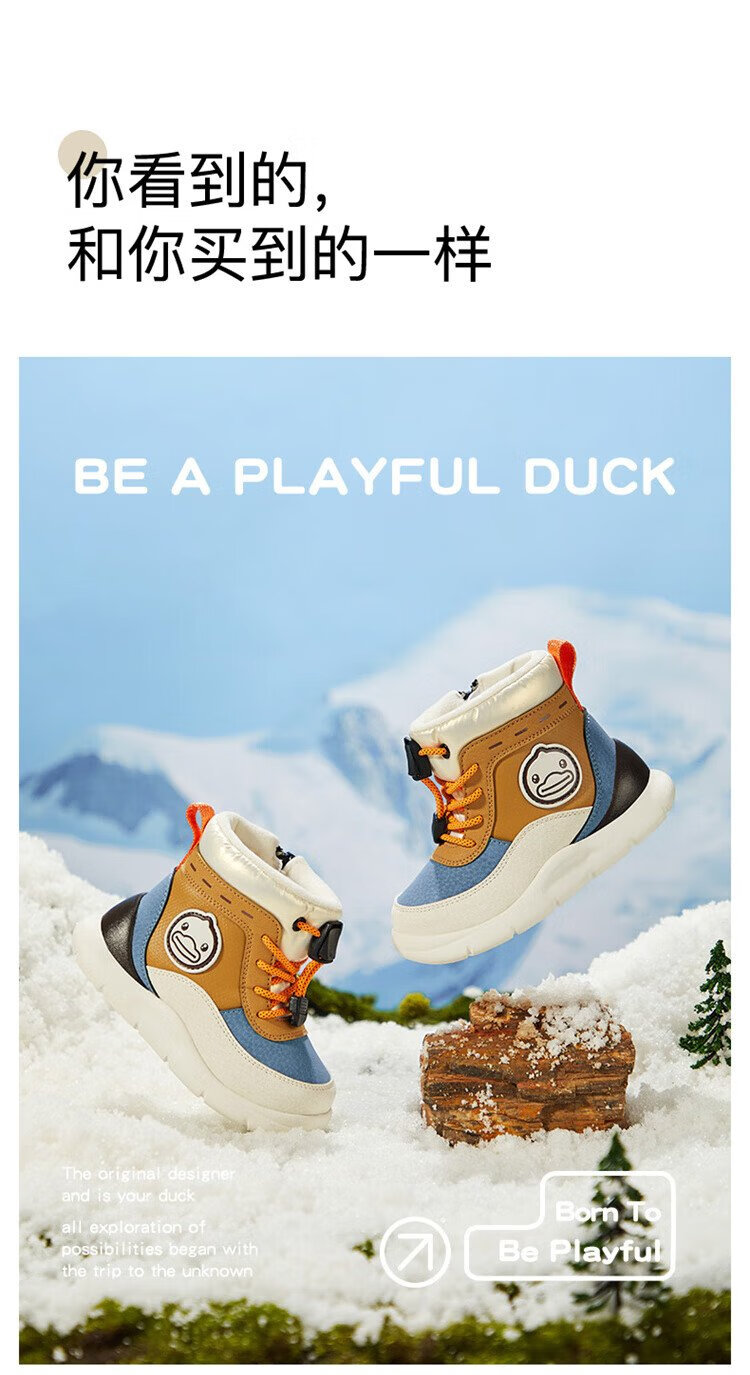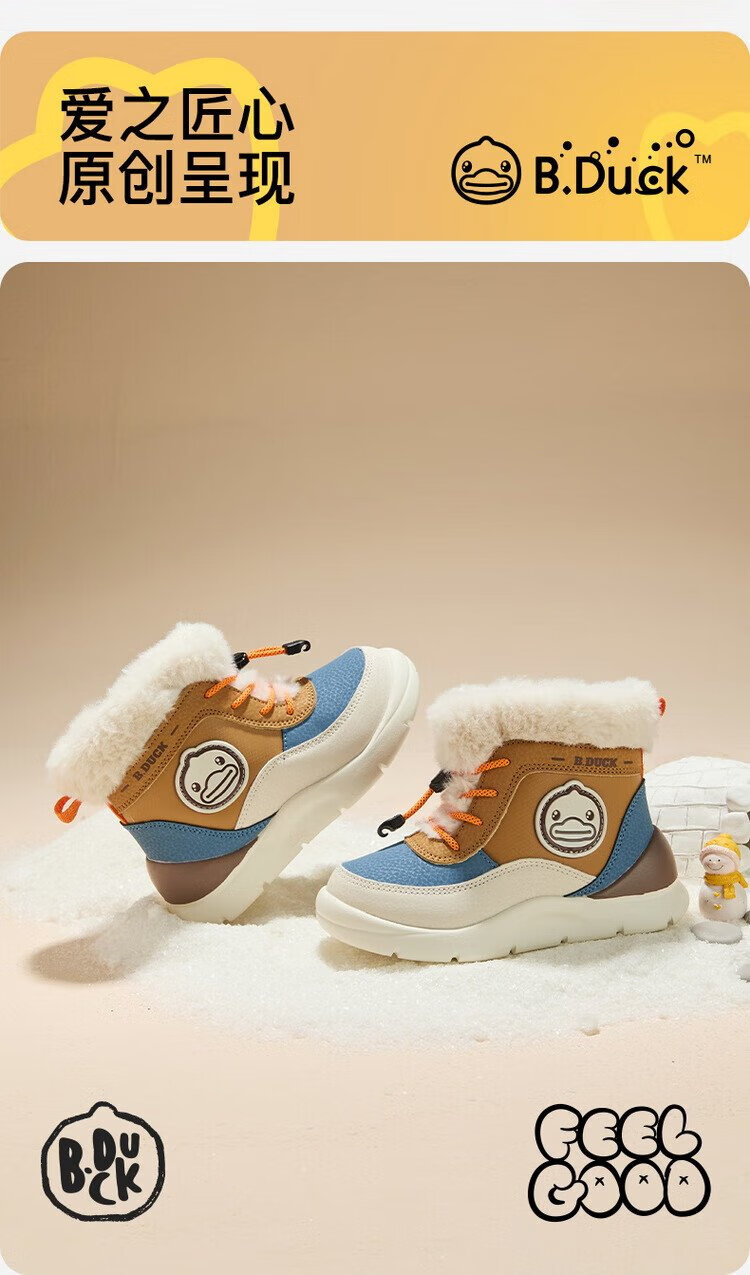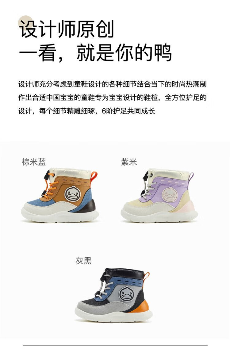 B.Duck little yellow duck children's shoes children's large cotton boots winter plush comfortable and warm snow boots for boys and girls 6873 purple beige 26
