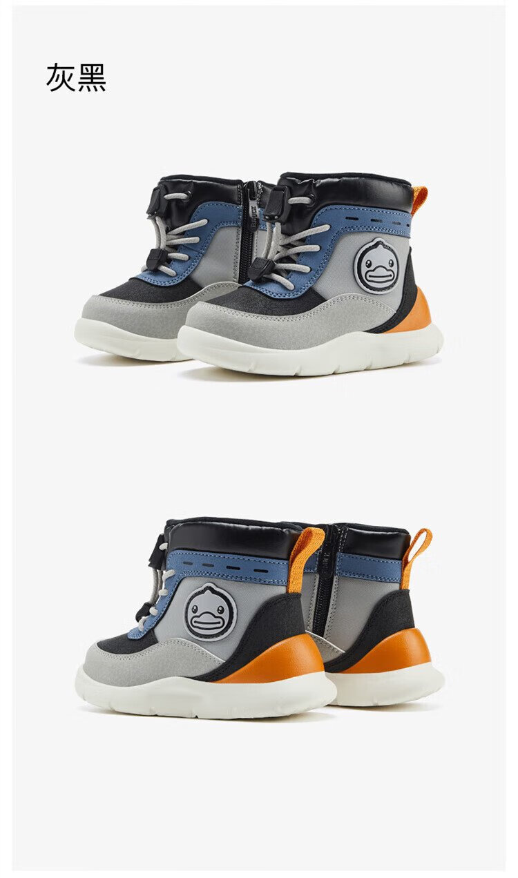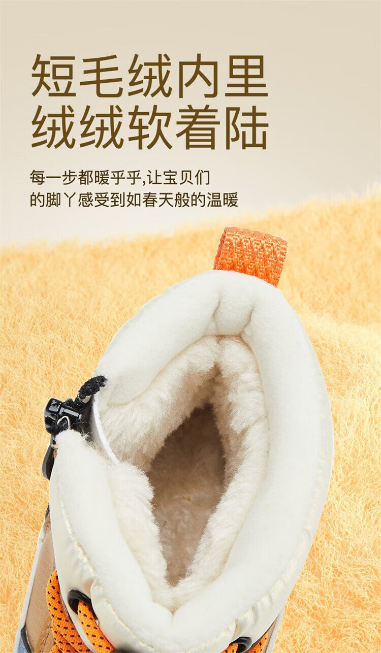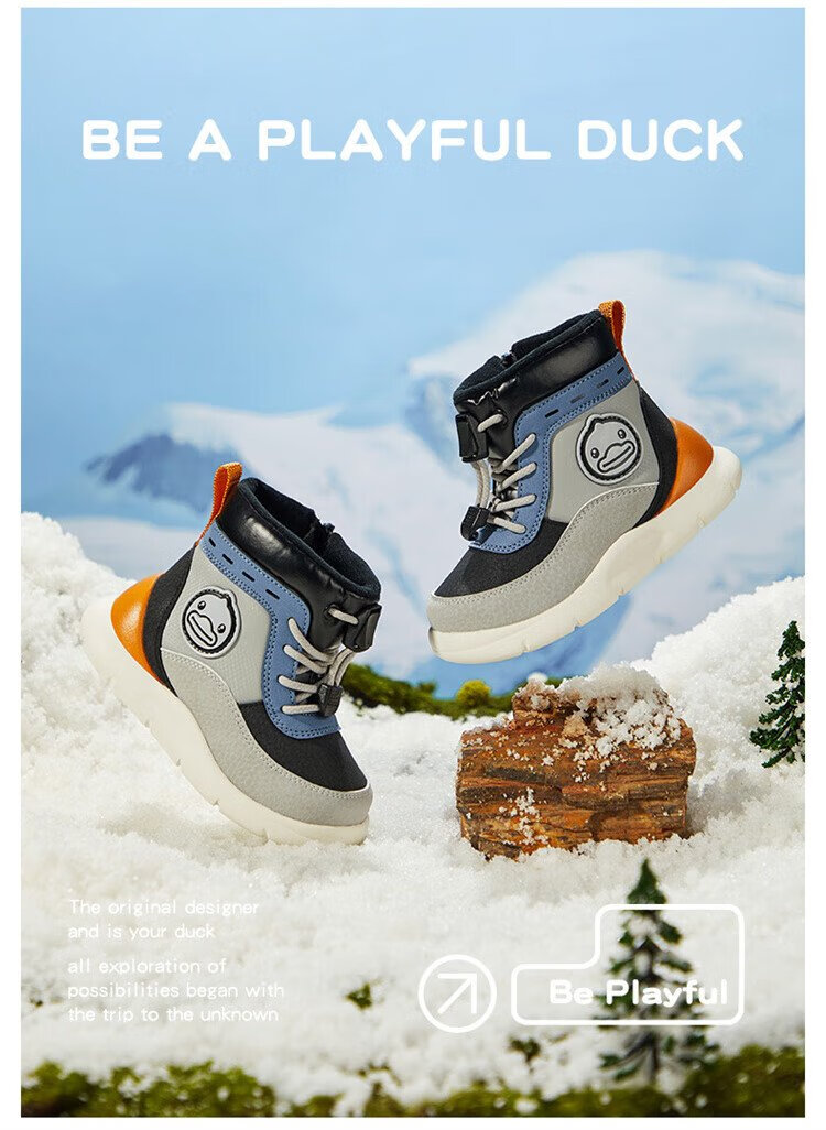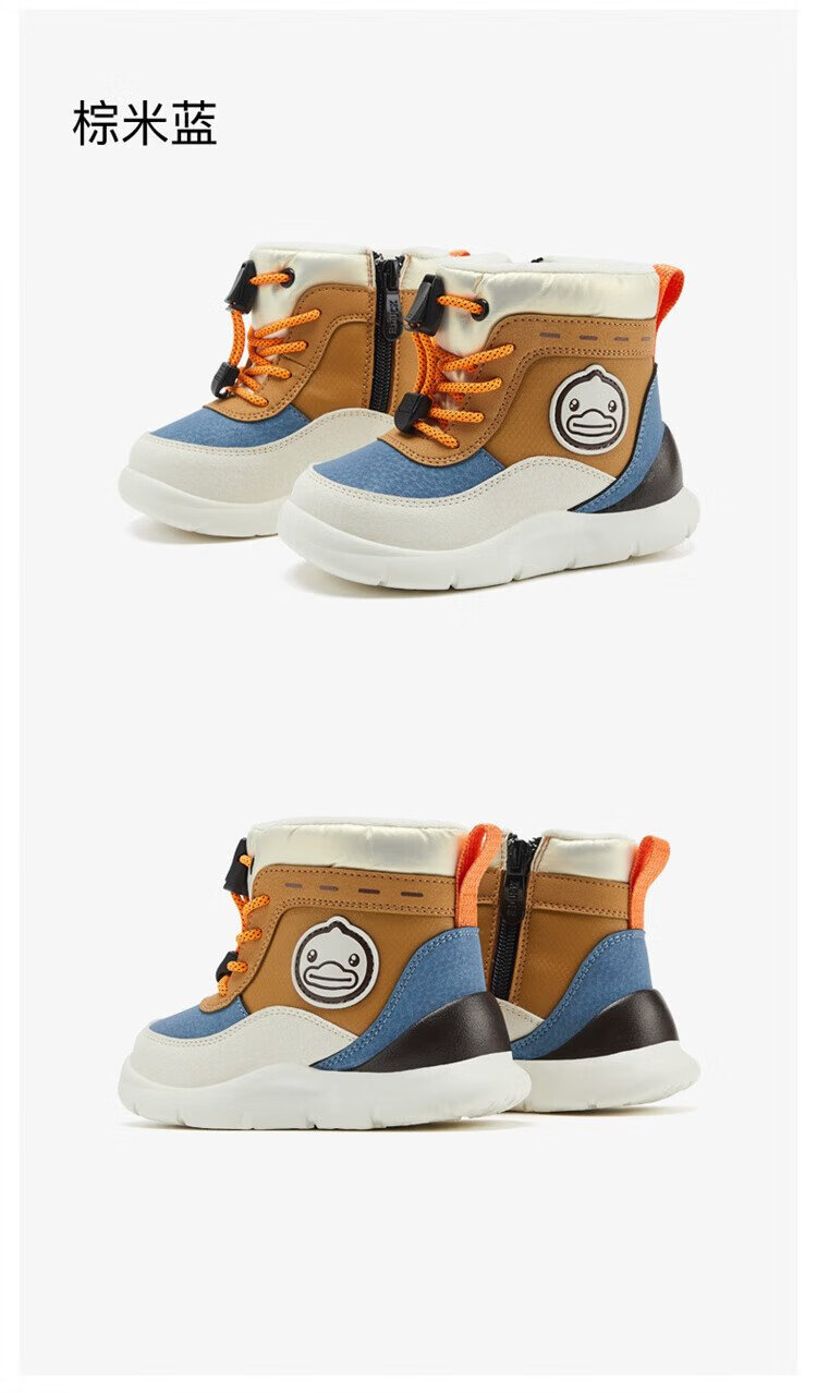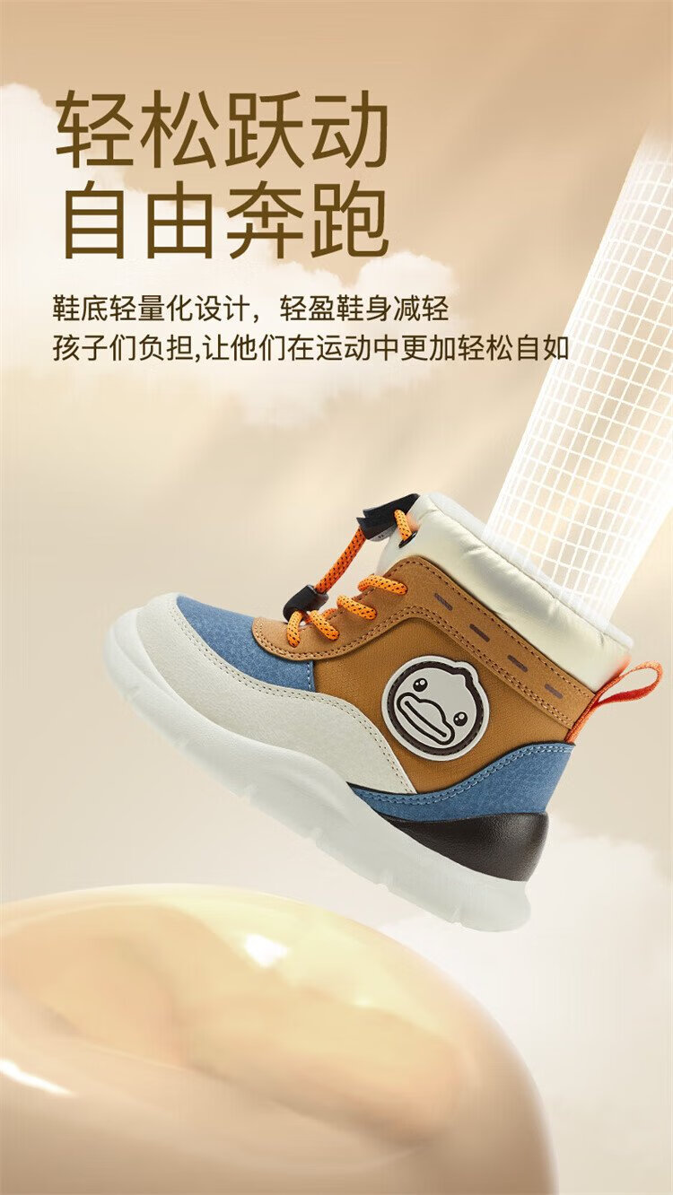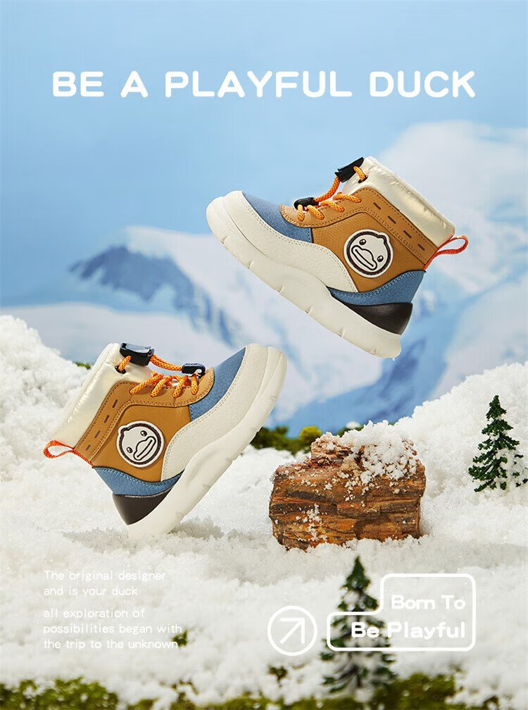 B.Duck little yellow duck children's shoes children's large cotton boots winter plush comfortable and warm snow boots for boys and girls 6873 purple beige 26