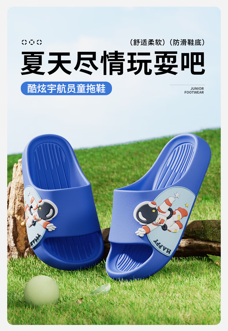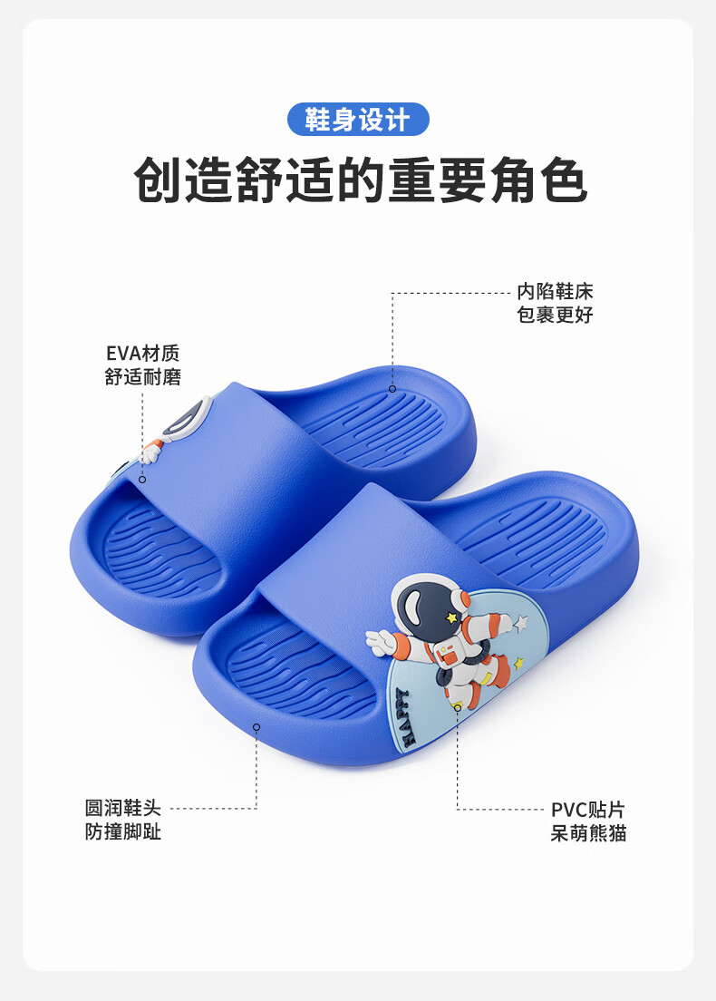 Pig Daddy Children's Slippers Boys' Summer Home Indoor Bathroom Anti-Slip 2025 New Medium and Large Children's Baby Sandals Blue 18