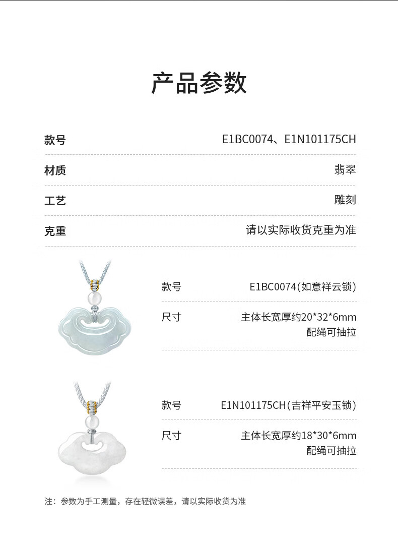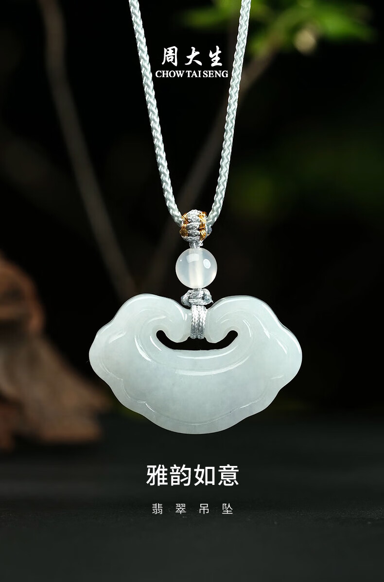 Zhou Taisheng Jadeite Ruyi Safe Lock Pendant Couple Necklace as a Birthday Gift for His Girlfriend